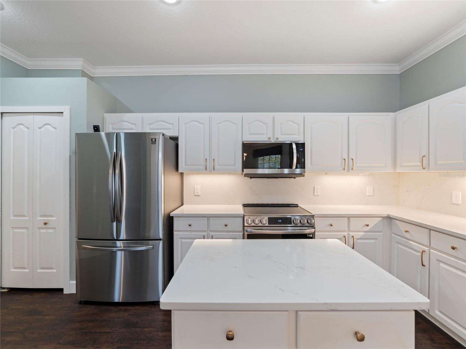 Entre no luxo com esta villa lindamente atualizada no altamente procurado o fechamento fechado de Audubon de West Meadows, localizado em New Tampa. Esta vila meticulosamente atualizada de 2 quartos e 2 banheiros possui uma garagem de 2 carros, uma sala de bônus-escritório/den para versatilidade adicional, layout do plano dividido e um design de conceito aberto convidativo com 1990 pés quadrados de espaço de estar. As you enter, you'll immediately notice the attention to detail, from the crown molding and 5" baseboards to the luxury vinyl plank flooring that flows seamlessly throughout the home. Enjoy the convenience of a spacious screened lanai with serene conservation views, perfect for relaxing or entertaining. Savor your morning coffee in the charming breakfast nook, bathed in natural light. Off the kitchen, you'll find the conveniently located 2nd bedroom and bathroom, perfect for guests or family Membros. As atualizações recentes incluem novas bancadas de cozinha de quartzo, com backsplash de altura total combinando e pia de granito coordenada, complementada por hardware e torneira champanhe. A grande cozinha também possui uma ilha, osmose reversa e utensílios de aço inoxidável mais recente da linha - máquina de lavar louça Bosch, alcance LG com forno de convecção e fritadeira de ar, microondas LG e geladeira Samsung. O quarto primário muito espaçoso oferece um teto de bandeja, dois armários separados e um banheiro primário lindamente atualizado, com vaidades separadas, um chuveiro personalizado e até uma estação organizadora de lavanderia. Os recursos adicionais incluem uma lavanderia separada com arruela e secadora LG de grande capacidade e um sistema de amolecimento de água. Aproveite os benefícios de um sistema de ar condicionado com classificação de vidraços de 14.5 para o conforto ideal o ano todo. O Audubon Landing oferece a seus residentes acesso exclusivo a uma piscina refrescante a apenas algumas portas. Mas isso não é tudo - você também terá privilégios no West Meadows Club, com comodidades como uma piscina de colo, piscina olímpica, um toboágua, splash pad, parque de cães, academia de fitness, playgrounds, quadras de tênis, quadra de vôlei, quadra de basquete, campos de futebol, campos de caminhada/caminhada/bike/corrida. Convenientemente localizado perto de compras, restaurantes, hospitais e praias premiadas, Aeroporto Internacional de Tampa, as lojas de Wilbrass, Krate no The Grove e muito mais. Esta localização ultrajantente coloca tudo o que Tampa tem a oferecer direto ao seu alcance. Além disso, com a próxima capela do centro de Wesley no horizonte, aguardam novas oportunidades de entretenimento e lazer. Esta comunidade oferece vida livre de manutenção, enquanto cuidam do telhado, da pintura exterior e do paisagismo, permitindo que você desfrute da vida livre de preocupações. Não perca a chance de possuir esta villa requintada em Audubon Landing. Entre em contato hoje para agendar uma visualização e fazer desta sua nova casa doce casa! Tipo de armário do quarto: Closet (quarto primário). Algumas fotos foram praticamente encenadas.