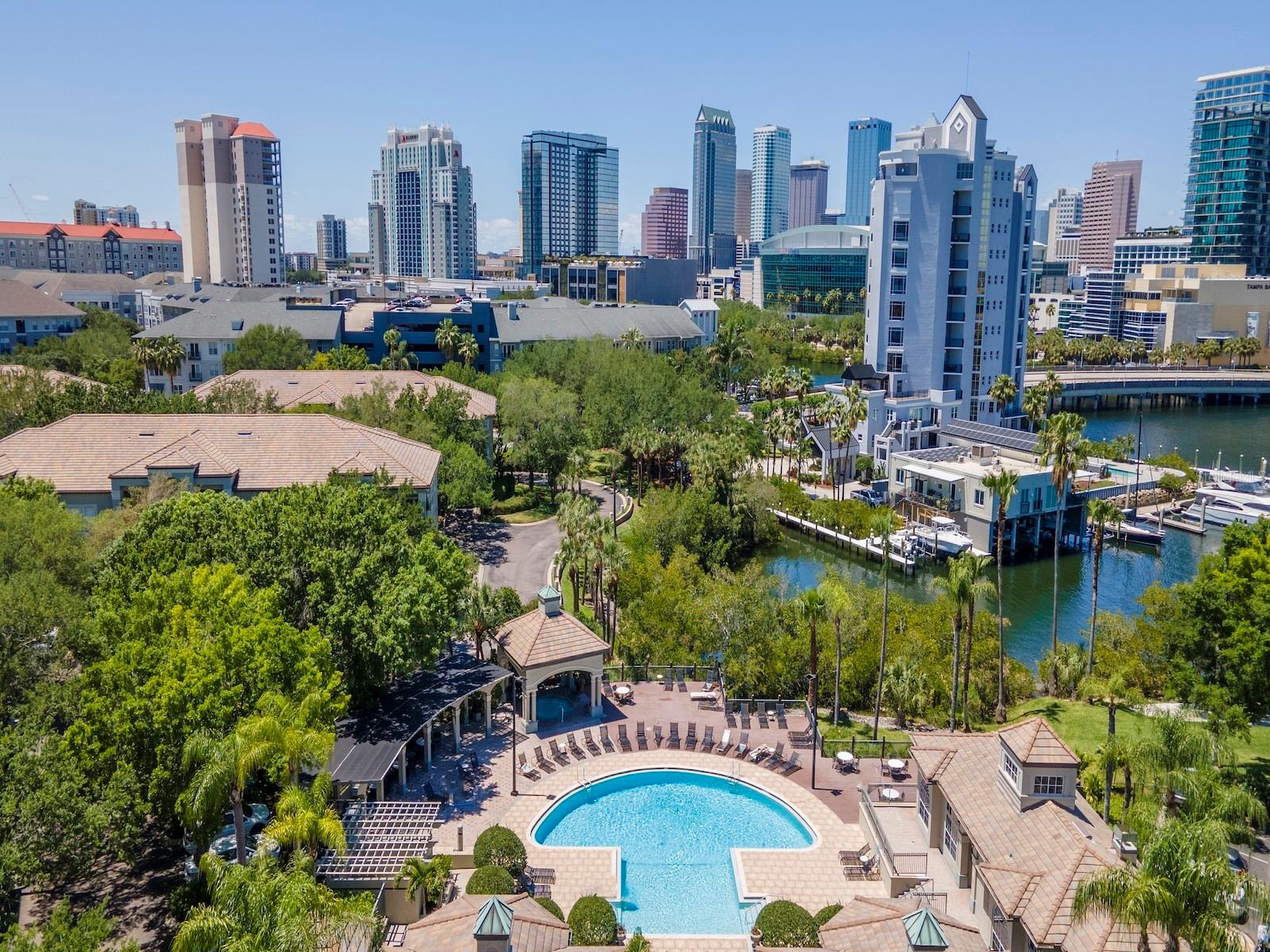 Experimente a vida urbana nesta unidade de esquina no 3º andar do 615 Tropical Breeze, localizada em um condomínio fechado em Harbour Island. Este condomínio chique e moderno oferece um quarto, um banheiro e um loft versátil ideal para um escritório doméstico, tudo em um layout de 1.084 pés quadrados. Aproveite a privacidade de paredes compartilhadas mínimas e sem vizinhos no andar de cima, além de janelas adicionais que inundam o espaço com luz natural. A unidade tem vista para um lago sereno a partir da combinação sala familiar/sala de jantar. Única em um condomínio no centro da cidade, esta unidade possui garagem anexa para um carro. Situado a poucos minutos do vibrante centro de Tampa, você tem acesso aos locais favoritos como Amalie Arena, Tampa Riverwalk, Water Street e Sparkman Wharf, todos a poucos passos de distância. O condomínio oferece comodidades premium, como piscina, academia, quadras de tênis e segurança 24 horas, tornando-o ideal para quem busca um estilo de vida urbano dinâmico com a tranquilidade de um retiro em uma ilha.