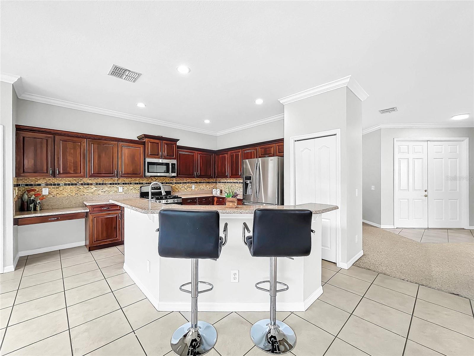 Uma ou mais fotos foram praticamente encenadas. Bem-vindo à casa de Cedar de Bay 20151, localizada em uma reserva de carvalho vivo altamente desejável e fechado em New Tampa, que oferece um clube e comodidades em estilo de resort de vários milhões de dólares. A linda casa de 2 andares possui 2.614 pés quadrados de vida, 4 quartos, 2,5 banheiros, 2 garagens de carros, interior recém-fresco, teto elegantemente adornado com molduras de coroa complexas em toda a casa e novo telhado (2023)! Ao pisar nas espaçosas portas duplas, você será recebido por um piso plano aberto e uma grande área de vida e jantar formal para espaço adicional para reuniões e celebrações familiares. The well-appointed kitchen features stainless steel appliances, granite counters, tiled backsplash, ample staggered Cherry cabinets, recessed lighting, an undermount stainless-steel sink, a built-in desk, two separate pantries, a breakfast bar and a larger breakfast nook that seamlessly flows into the large and functional family room with expansive sliding doors overlooking a covered/screened-in porch/lanai area perfect for entertaining to enjoy uma água brilhante/lagoa e vistas serenas da reserva natural. Você também terá outro meio banho ideal para os hóspedes e uma lavanderia com pia e lavadora e secadora de novo no andar de baixo. A escada dramática com escada de eixos da grande sala da família leva ao segundo andar, onde todos os quartos estão localizados. A suíte master tem uma porta de entrada dupla, com tanta luz proveniente das janelas com vista para a lagoa panorâmica e as vistas de conservação. O mestre suíte tem pias duplas, vaidades com balcões de marble cultivado e armários de madeira, chuveiro e vaso sanitário separados, uma banheira de jardim jato perfeita para imersão e dois armários. A comunidade Live Oak Preserve oferece uma comunidade bem estabelecida com paisagismo maduro e um espetacular centro de amenidade. Os moradores gostam de acesso a um clube de vários milhões de dólares, uma piscina em estilo resort, piscina, zona de respingo de trabalhos d'água, um jacuzzi, uma sala de ginástica totalmente equipada, um playground, tênis de múltiplos tênis, bola de picada e quadra de vôlei e um biliar de um biliar de um quilo de cozinha completa, salas de reuniões, golfe. Esta comunidade tem acesso às escolas de melhor classificação, as escolas primárias e médias estão a um passeio de bicicleta. Além dos portões da comunidade, você encontrará toneladas de restaurantes, entretenimento, campos de golfe, parques e opções de compras, como o Wiregrass Mall e a saída premium de Tampa. Com fácil acesso ao Downtown Tampa, I-75, I-275, Universidade do Sul da Flórida, Busch Gardens, Flatwoods Wildenerss Park, Veterans, Moffitt Cancer Center Hospitals e The New Advent Health e Baycare Hospitals. Esta casa realmente oferece o melhor de New Tampa Living! Ligue hoje para agendar uma exibição para tornar esta linda casa a sua!