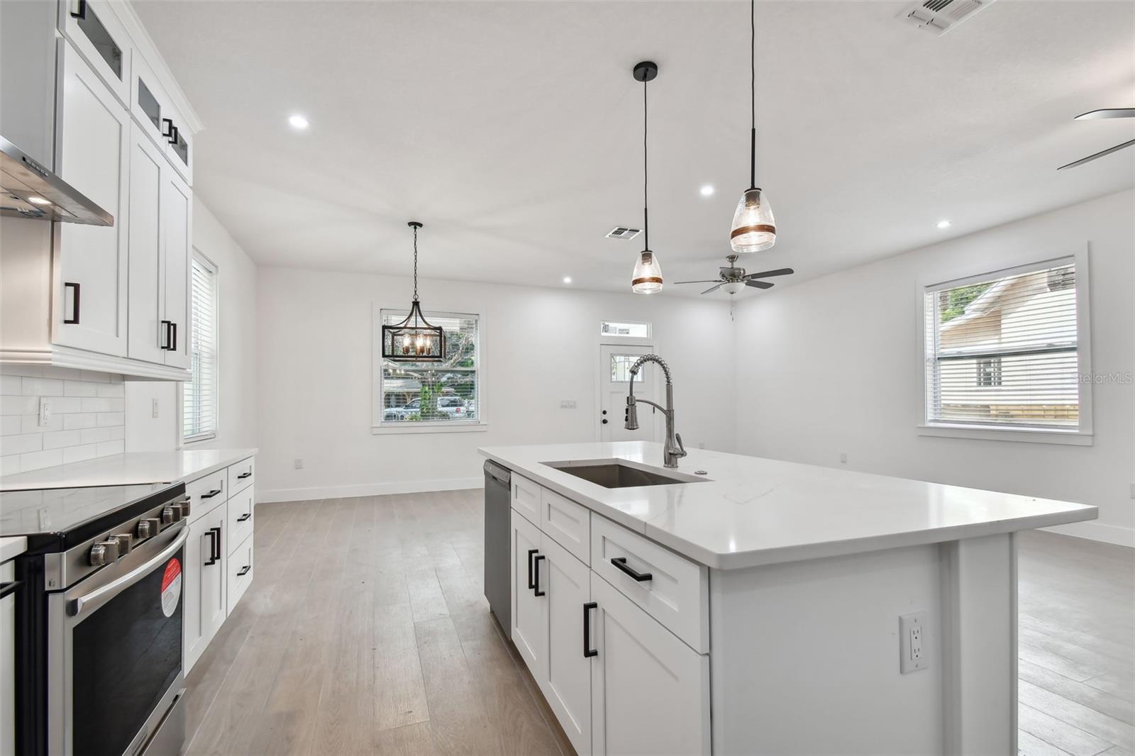 Testado contra furacões, garantia de construção nova de 10 anos e janelas de impacto contra furacões para total tranquilidade. Situado em um local desejável, este bangalô totalmente novo possui 3 quartos espaçosos e 2 banheiros, feitos sob medida para uma vida confortável. Entre para descobrir uma planta baixa aberta e convidativa que combina perfeitamente estilo com funcionalidade. O coração da casa é a cozinha gourmet, completa com balcões de granito elegantes, amplo bar com assentos e uma ilha generosa, perfeita para aventuras culinárias ou jantares casuais. Aparelhos de aço inoxidável, incluindo exaustor e lava-louças, elevam o fascínio da cozinha, enquanto armários de madeira maciça de 42 ”fornecem armazenamento e estilo. Também possui uma lavanderia dedicada. O entretenimento é muito fácil nas amplas áreas de jantar e sala familiar, onde toques personalizados, como piso de cerâmica de design e iluminação embutida, adicionam um toque de elegância. Grandes janelas de vidro duplo inundam o espaço com luz natural, criando um ambiente acolhedor e convidativo para encontros com entes queridos. Retire-se para a tranquila suíte master, com closet espaçoso e banheiro privativo para maior privacidade e conveniência. Com muita luz natural e ambiente sereno, é o local perfeito para relaxar após um longo dia. No exterior, encontrará um amplo alpendre nas traseiras, ideal para desfrutar do seu café da manhã ou organizar jantares ao ar livre. O quintal cercado oferece muita privacidade e espaço para atividades ao ar livre, garantindo infinitas oportunidades de relaxamento e recreação. Desfrute de tranquilidade em uma casa que resistiu aos furacões Helene e Milton, com a garantia adicional de um sistema de esgoto recém-atualizado na vizinhança - o que significa que não há preocupação com inundações aqui. Convenientemente localizado a poucos minutos dos restaurantes Seminole Heights, Tampa Heights, Armature Works, Downtown Tampa e do pitoresco Riverwalk. Não perca a chance de experimentar o que há de melhor em bangalôs modernos.