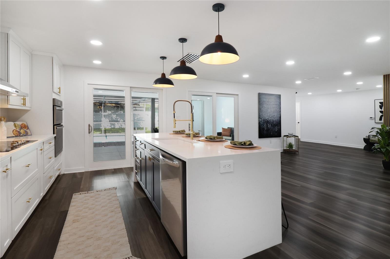 Apenas reduzido! Bem -vindo a esta casa totalmente remodelada no altamente desejado bairro de Sunset Park, no sul de Tampa! Situado em um espaçoso lote de canto de 0,23 acres em uma maravilhosa rua de beco sem saída, esta impressionante casa de piscina apresenta uma planta fantástica dividida, misturando perfeitamente conforto e luxo. Com quatro quartos, três banheiros completos recém -modelados e elegantemente projetados, uma piscina exibida, pátio espaçoso e uma nova cozinha ao ar livre, esta casa tem tudo! A cozinha de conceito aberto é lindamente composto com armários de dois tons, bancadas de quartzo, uma ilha de cascata, um pacote de eletrodomésticos de última geração e elegante hardware de ouro. Duas portas deslizantes na área principal e cozinha levam a um grande pátio coberto com vista para a piscina, o lugar perfeito para desfrutar da verdadeira vida na Flórida! A sala da família é aprimorada com detalhes em madeira, prateleiras embutidas e uma lareira elétrica encantadora. O quarto principal é um retiro, completo com um closet de fluxo com prateleiras embutidas para muito armazenamento, e também oferece acesso à piscina e ao pátio. Os recursos adicionais incluem uma espaçosa sala de jantar perfeitamente situada na cozinha, um espaço acolhedor adicional, um espaçoso quintal totalmente cercado e uma garagem de dois carros, oferecendo amplo espaço de armazenamento. A área de piscina exibida também apresenta acesso conveniente a um dos banheiros de hóspedes. Lá fora, desfrute do charme tropical de árvores de mangueira suculenta nos estaleiros da frente e laterais. Esta localização privilegiada fica perto dos melhores shoppings e restaurantes de Tampa Bay e fica a poucos minutos do Aeroporto Internacional de Tampa. Não perca a oportunidade de possuir uma casa nesta área procurada!