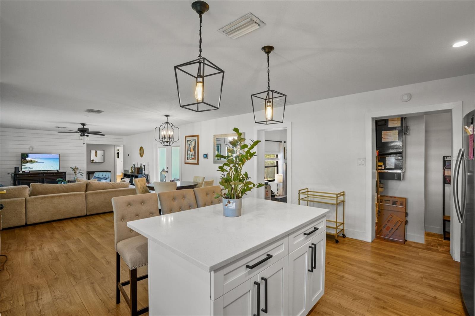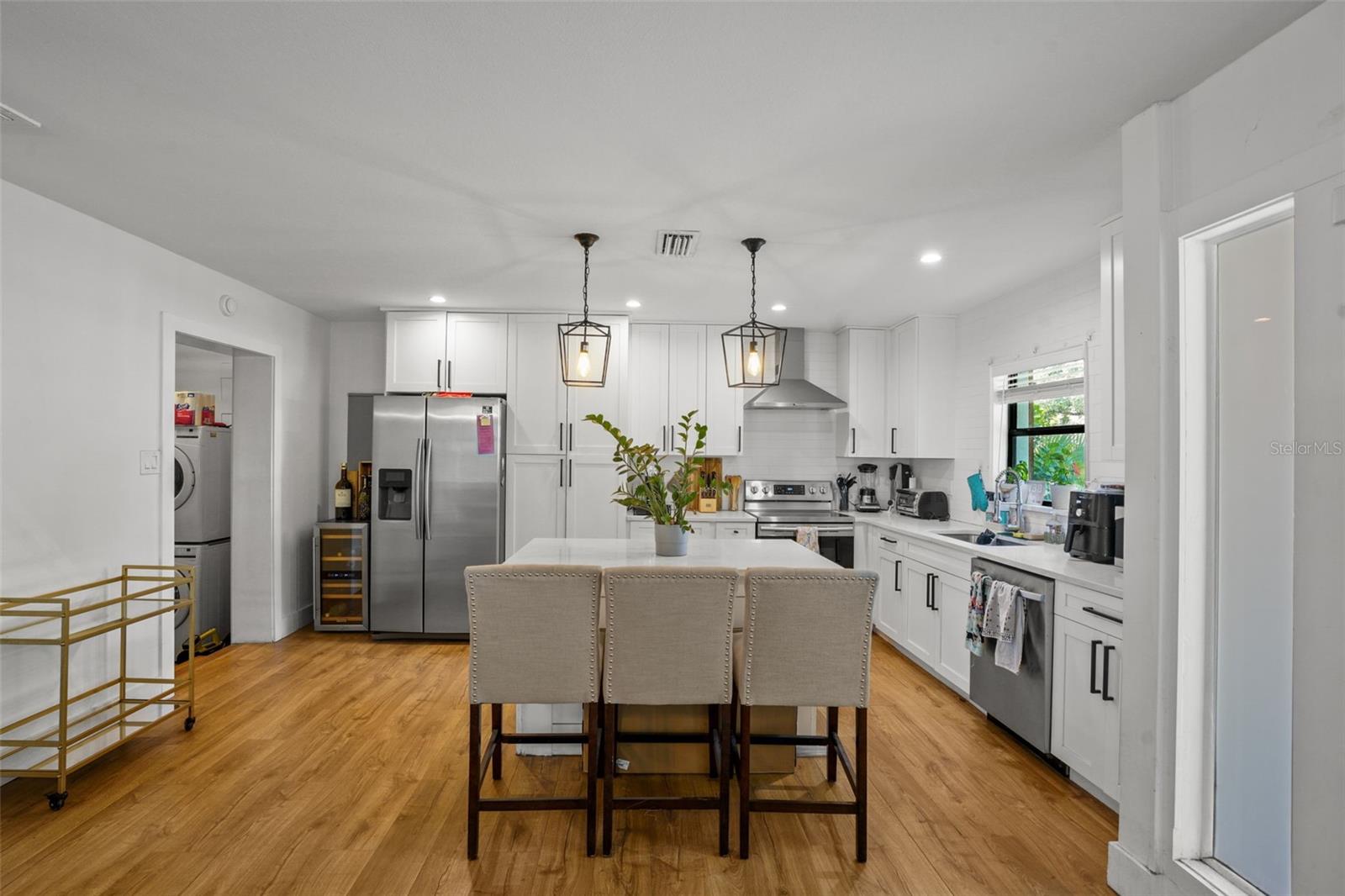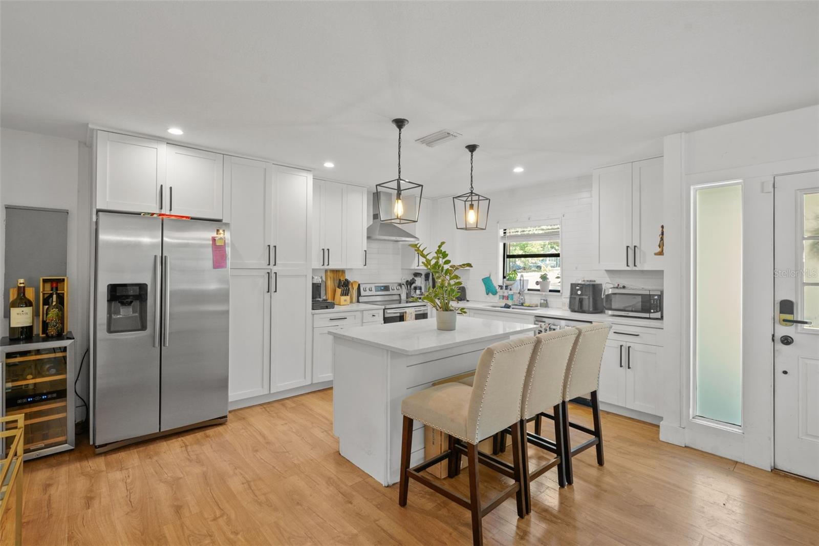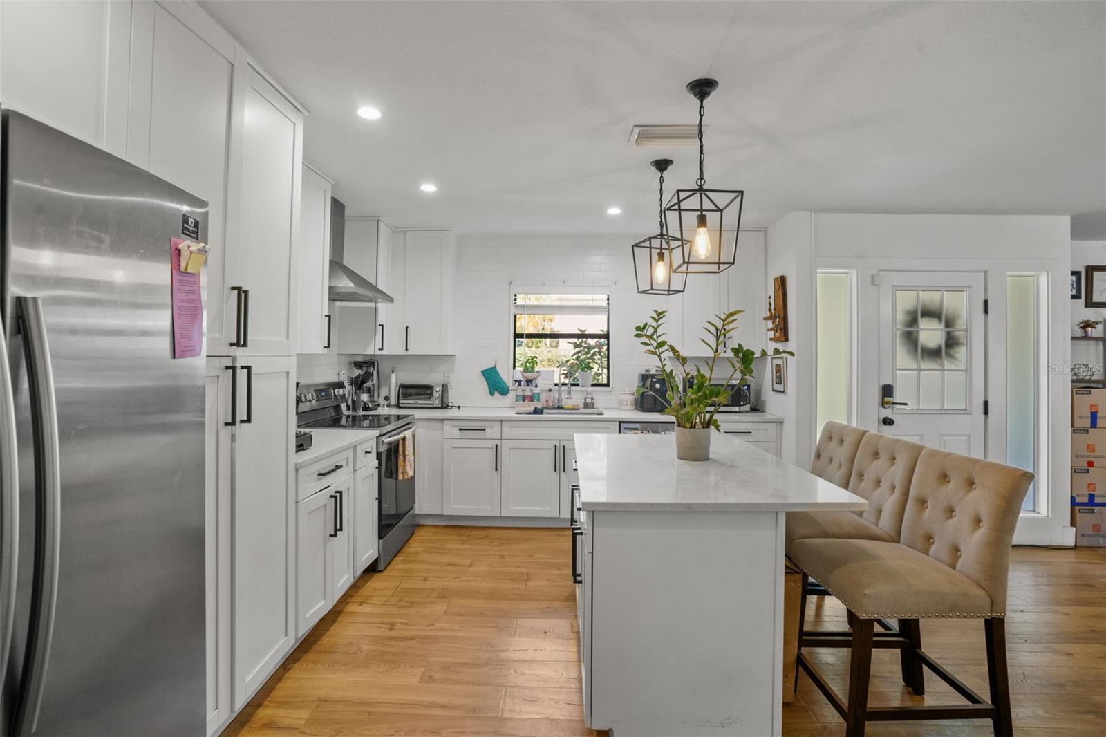 Bem -vindo ao coração de Seminole Heights! Aninhado em um espaçoso lote de 1/4 de acres, este casa de 3 banheiros, de 3 quartos, de 3 quartos, irradia o charme moderno da fazenda com seu elegante exterior em preto e branco, acentuado por detalhes ricos em madeira. Renovado entre 2019-2020, as atualizações incluem elétrica, encanamento, teto, AC (2020), duto, aquecedor de água quente sem tanques e estuque externo, garantindo estilo e funcionalidade. Entre para descobrir uma planta convidativa de piso aberto, ideal para hospedar reuniões. A cozinha exibe armários de agitadores brancos nítidos, bancadas elegantes de quartzo e um chique de backsplash de ladrilhos de metrô. Com uma despensa dupla e uma ilha, o armazenamento é abundante, complementado por hardware preto fosco e aparelhos de última geração. A sala de estar adjacente apresenta uma parede de sotaque de shiplap e portas francesas de vidro da moda que levam ao seu pátio infantil particular. Escondido da área de estar principal, a suíte primária oferece tranquilidade e luxo, com um layout espaçoso, closet, vaidade dupla, chuveiro de vidro e banheira de imersão. Dois quartos adicionais, localizados na sala, compartilham um banheiro elegante com banheira, vaidade moderna e recurso de bidê. A casa recebeu tratamento preventivo para cupins (injeções de parede). Os painéis de madeira compensada de proteção de furacões cortados em tamanho, teclado eletrônico da porta frontal, termostato Nest AC, sistema de segurança doméstica ADT (pronto para conexão), sensores de fumaça e quebra de vidro. Lá fora, aproveite a privacidade exuberante do quintal cercado, perfeito para relaxamento ou atividades ao ar livre. Nas proximidades, explore as ruas arborizadas que levam a parques pitorescos ao longo do rio Hillsborough. O McDugald Park, a uma curta caminhada, oferece novas comodidades, como quadras de vôlei, aprimorando suas opções de lazer. Convenientemente localizado, esta casa oferece fácil acesso à cena vibrante de Seminole Heights, incluindo cervejarias locais, parques e atrações no centro da cidade, como Ybor City e Armature Works. Com uma lavanderia/lama fora da entrada traseira, esta residência pronta para a mudança convida você a experimentar o melhor da Seminole Heights. Venha e faça o seu hoje!