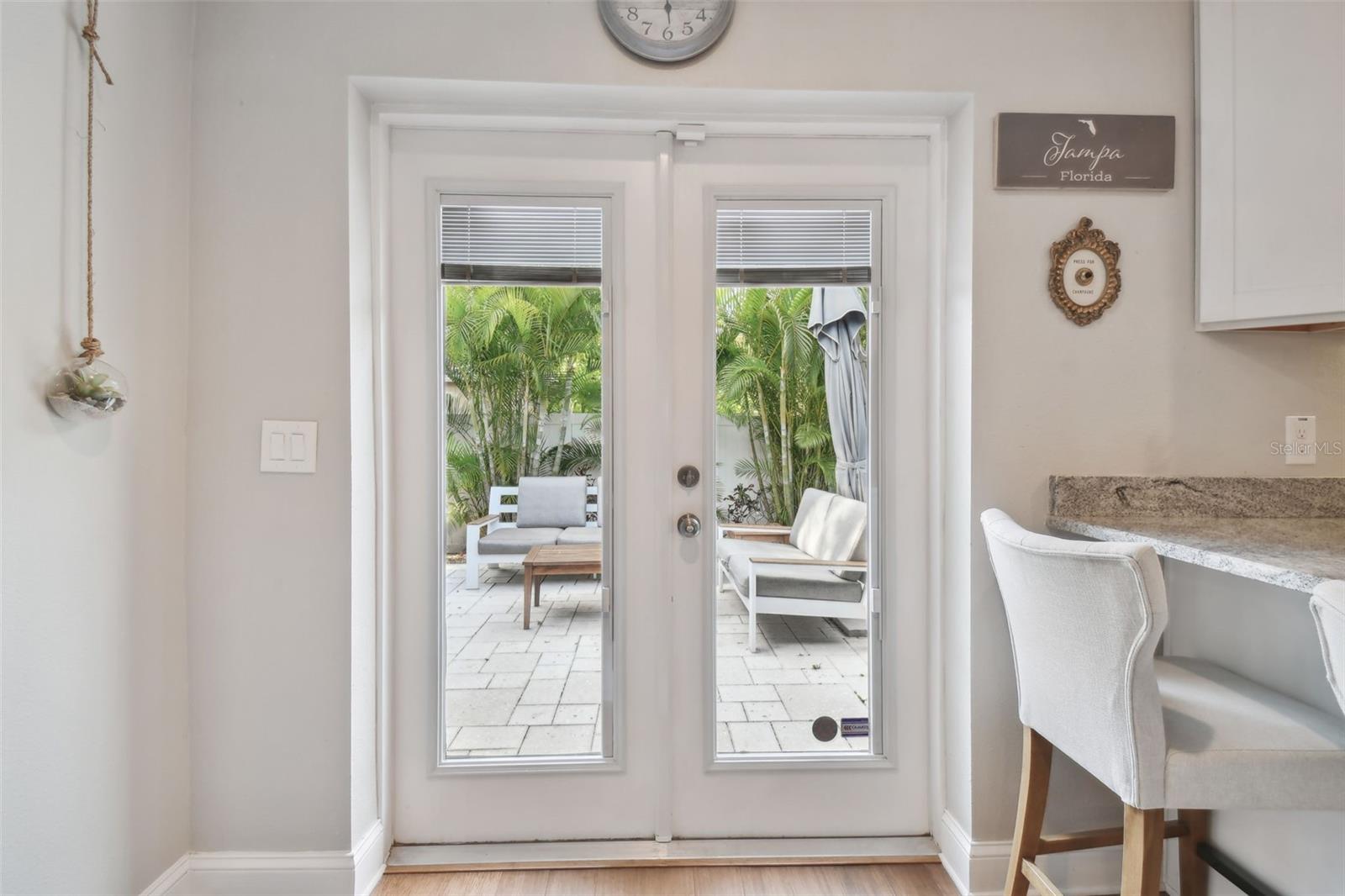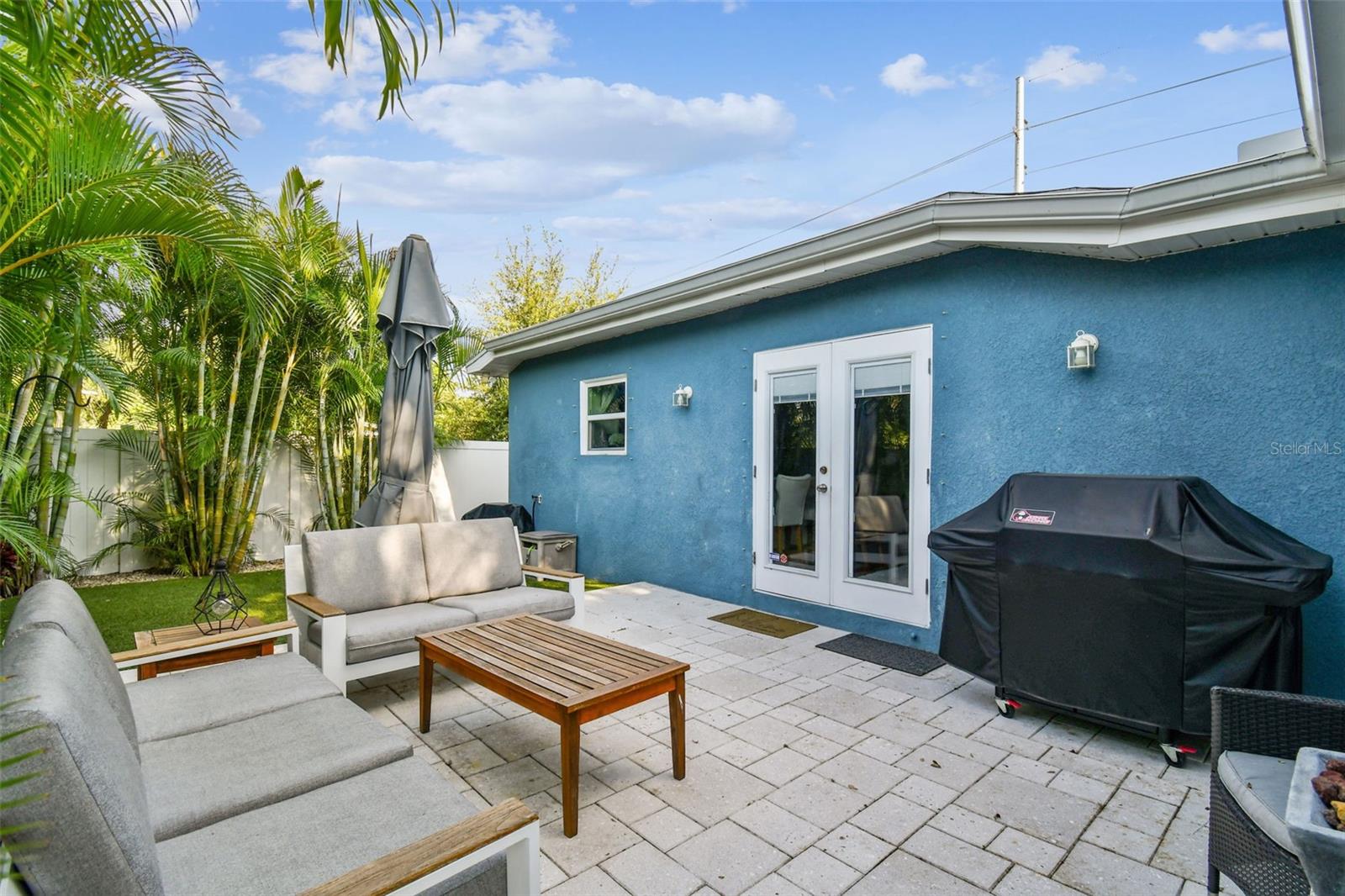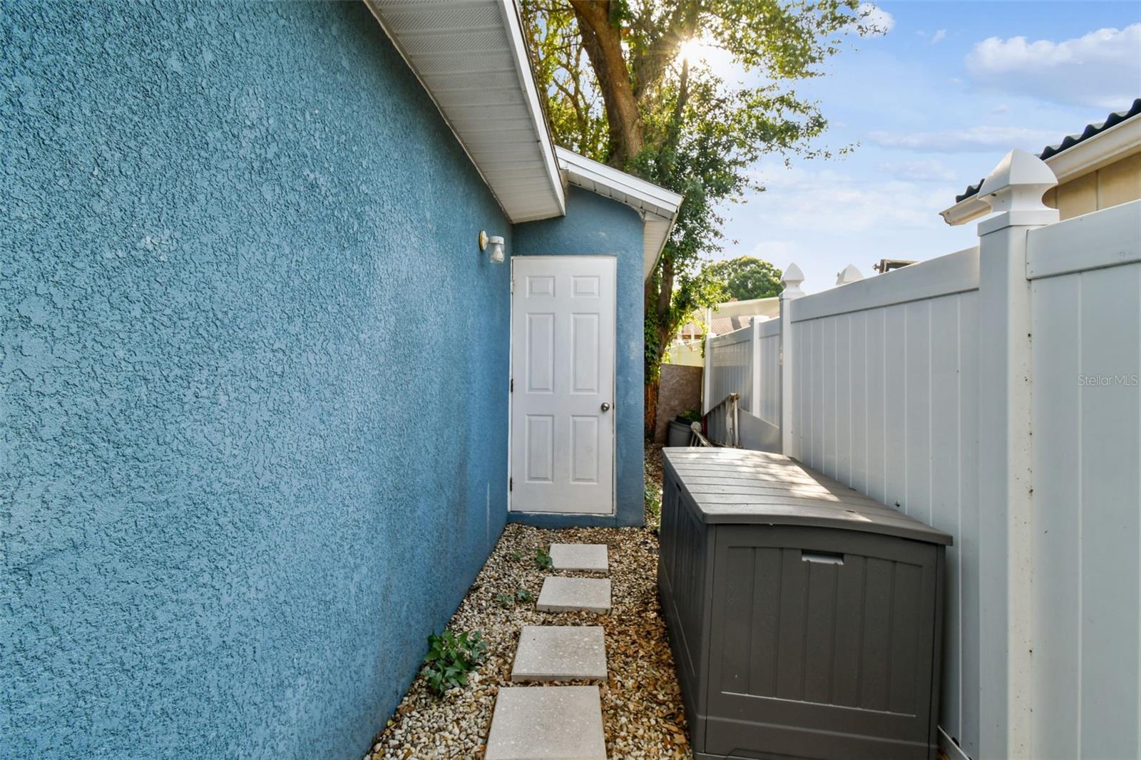 Portas francesas, persianas de furacões, calçada, armazenamento