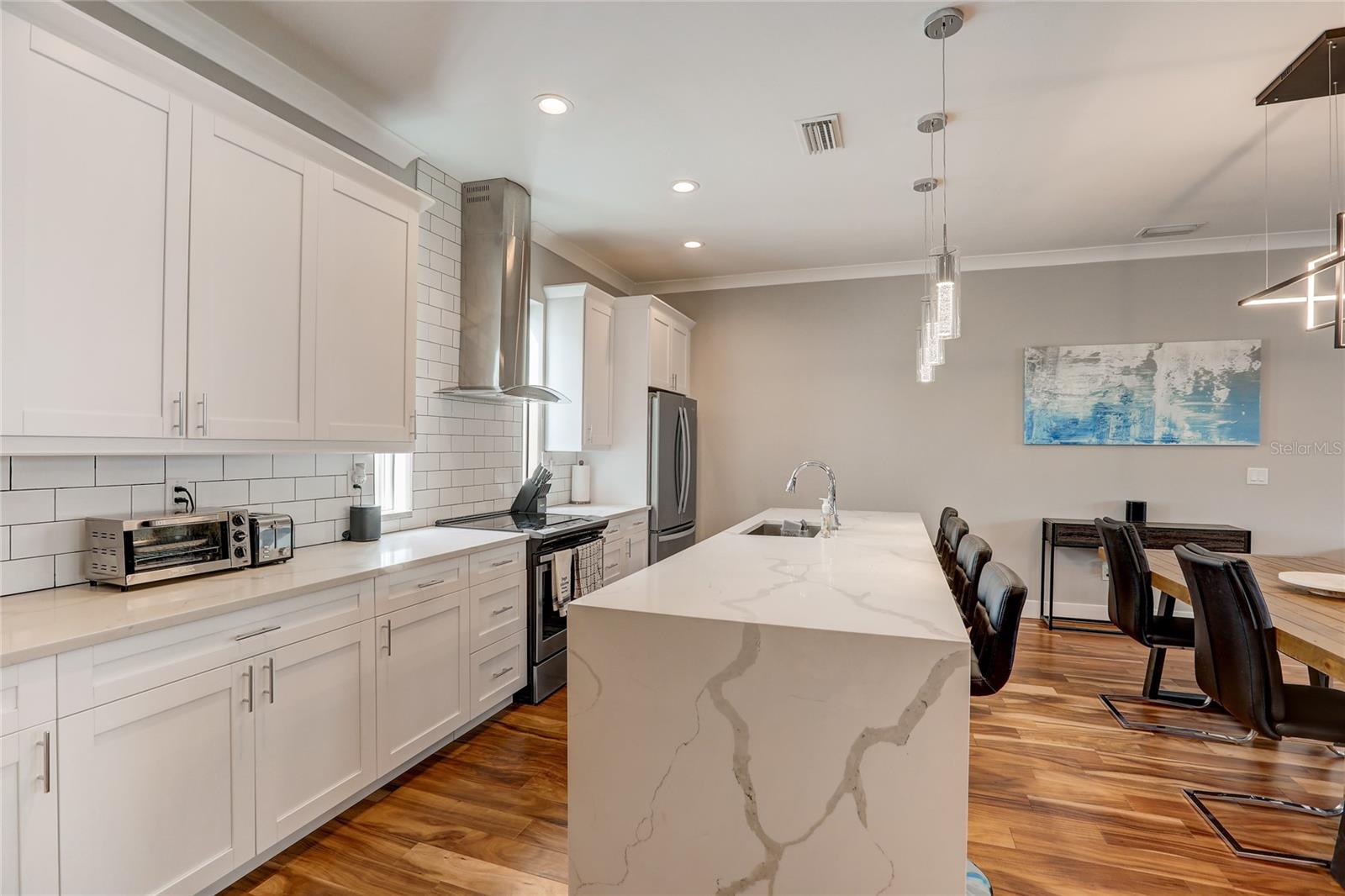 Experimente uma vida luxuosa nesta impressionante residência urbana de construção recente ao lado do vibrante e crescente Westshore Marina District. Os atuais proprietários selecionaram atualizações e acabamentos de alta qualidade durante a construção. Com tetos de 9'4" e tetos de 12 pés de altura na garagem, com portas de garagem de 8 pés de altura que acomodam veículos altos sem esforço. O primeiro andar possui um quarto privativo com banheiro privativo, que funcionaria perfeitamente para um home office ou suíte de hóspedes dedicada. Suba a escadaria de 1,20 m de largura adornada com corrimão de ferro até o segundo andar, onde uma espaçosa planta aberta o aguarda, compreendendo uma cozinha bem equipada, área de jantar e ampla sala de estar com acesso a uma espaçosa varanda externa. A cozinha apresenta bancadas de granito. com bordas em cascata, armários de madeira maciça, fogão cooktop com exaustor, lava-louças, despensa e área de bar customizada com adega refrigerada complementa esse nível. A área de loft de tamanho generoso oferece versatilidade e o quarto principal possui banheiro privativo com bancada em granito. O terceiro quarto com banheiro privativo, também adornado com bancada em granito, completa este nível. Desfrute de acesso conveniente à marina privada de serviço completo e a uma lancha pública para diversas atividades aquáticas. Este bairro vibrante e fácil de caminhar inclui restaurantes à beira-mar, uma pista de corrida, parques e um calçadão à beira-mar, prometendo um estilo de vida de lazer e luxo. Dentro do grande Marina District, três empreendimentos interessantes estão em andamento alguns quarteirões ao sul para elevar sua experiência de vida.