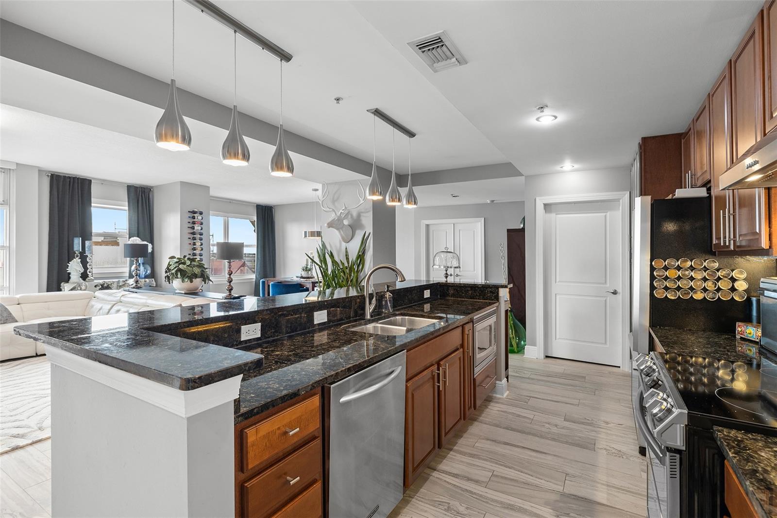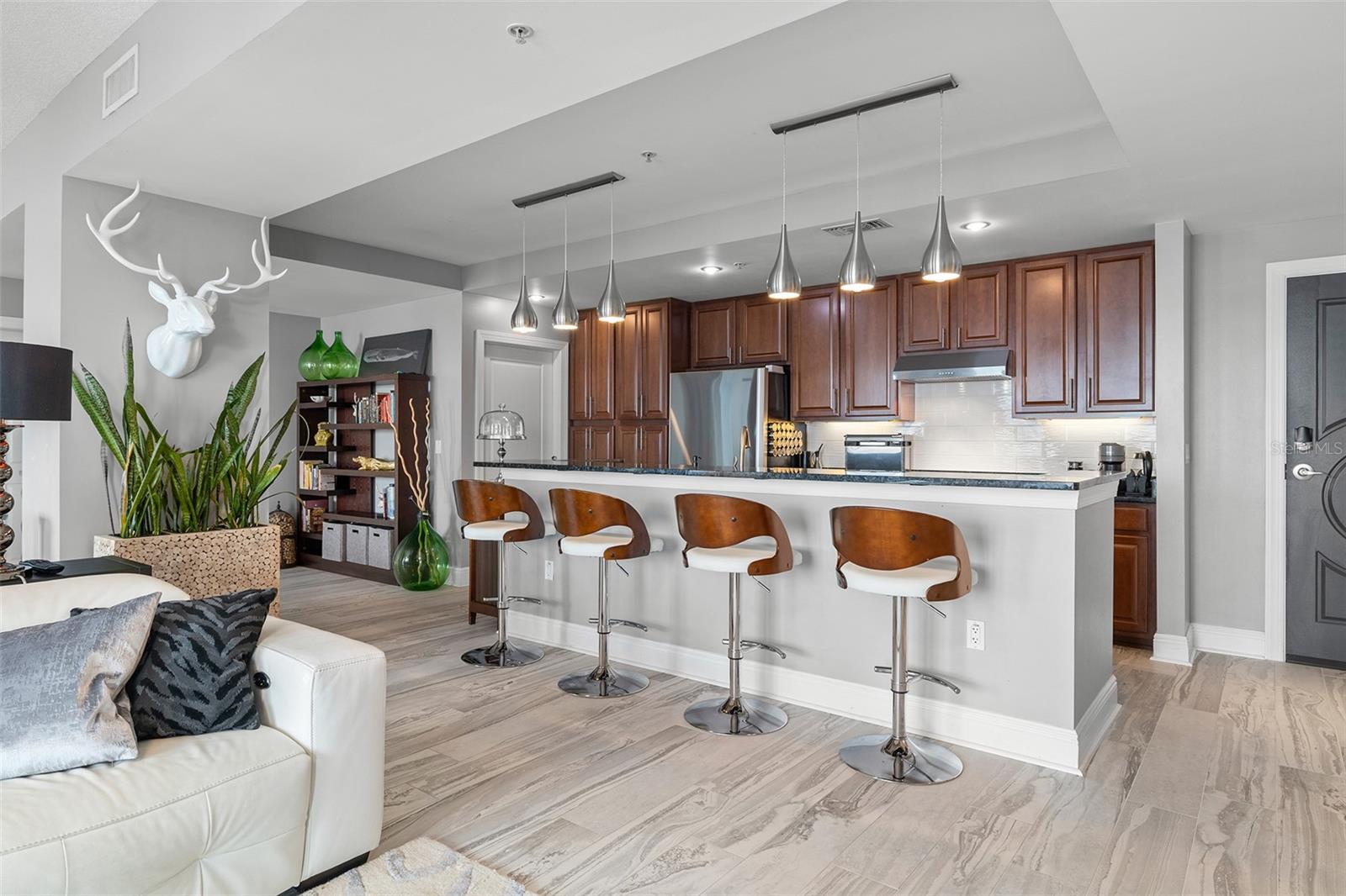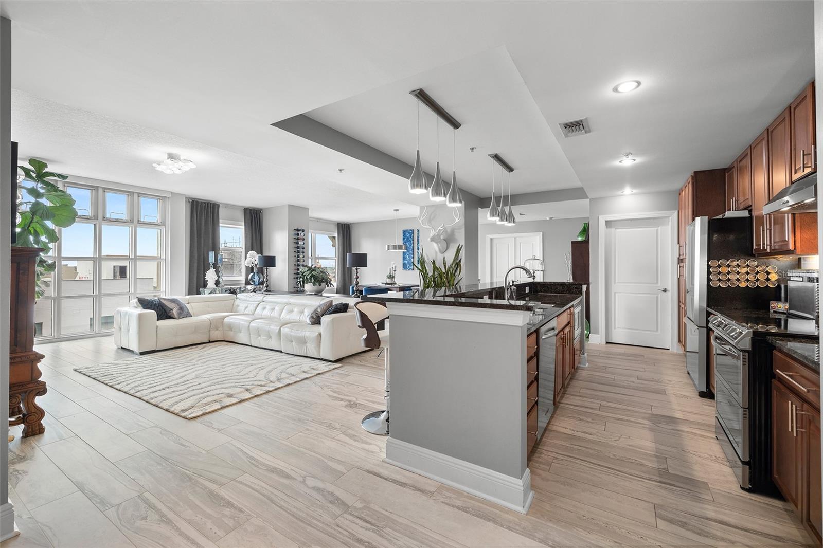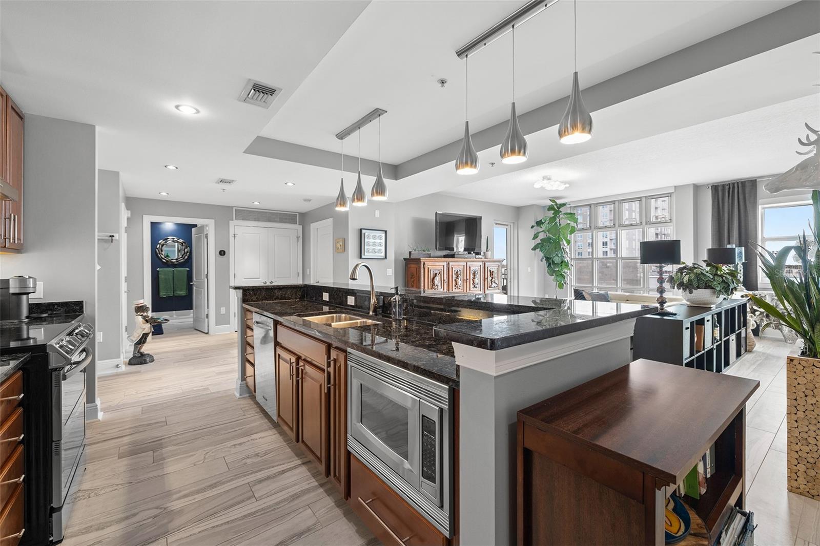 Apresentando um requintado condomínio de dois quartos e dois banheiros localizado no prestigiado Ventana aninhado dentro do vibrante bairro de Tampa. Com um generoso 1907 pés quadrados de espaço de estar, esta residência da Torre Norte oferece uma mistura perfeita de luxo e conforto. Entre para descobrir o elegante piso de azulejos, enfeitando a ampla sala de estar, a área de jantar, a cozinha e os quartos, criando um fluxo harmonioso em toda a casa. A planta baixa aberta o convida para uma área de estar notável adornada com uma janela do chão ao teto nos vivos, banhando a unidade sob luz natural. A cozinha gourmet é o sonho de um entusiasta da culinária, com bancadas em granito, backsplash personalizado, utensílios de aço inoxidável e gabinetes de madeira maciça elegantes. Adjacente é uma lavanderia espaçosa, convenientemente equipada com uma lavadora e secadora de tamanho normal. O layout do quarto dividido garante privacidade e tranquilidade, com a suíte master oferecendo um grande retiro. Relaxe no amplo quarto principal, completo com uma janela panorâmica do chão ao teto com vista para o canal Ybor. O luxuoso banho de banheiro privativo possui uma grande vaidade dupla com bancadas em granito, um armário de água privado, uma banheira de imersão rejuvenescedora e uma barraca de chuveiro de azulejos de cerâmica separada. Além disso, um closet adjacente aumenta os recursos da suíte. O segundo quarto é brilhante e arejado, com portas de vidro deslizantes que levam a uma varanda de grandes dimensões, oferecendo vistas encantadoras do Yorn Channel e do bairro circundante. Um banheiro espaçoso adjacente com um chuveiro ex-grande completa as acomodações confortáveis. Venha experimentar o vibrante estilo de vida de Channelside, com sua variedade de lojas, restaurantes, bares e o cênico Tampa Riverwalk a poucos momentos de distância. As opções de entretenimento abundam, incluindo a Amalie Arena, Sparkman Wharf, Water Street e o renomado Aquário da Flórida. Os moradores de Ventana desfrutam de uma variedade de comodidades de luxo, incluindo concierge, segurança, piscina e spa em estilo resort, instalações de fitness, sauna, sala de clube e cabanas ao ar livre com estação de grelhar. Esta unidade inclui dois lugares de estacionamento de garagem atribuídos e uma unidade de armazenamento controlada por temperatura para maior conveniência. Não perca esta oportunidade excepcional de residir em um dos locais mais cobiçados de Tampa. Ligue hoje para agendar sua turnê privada!