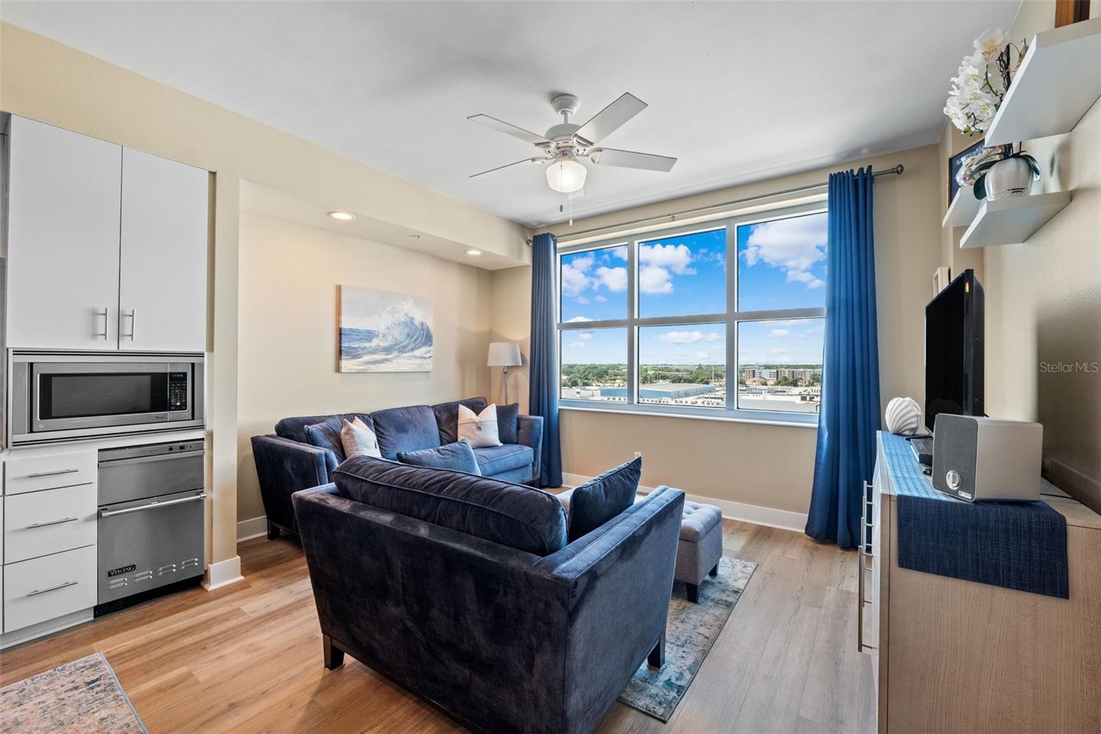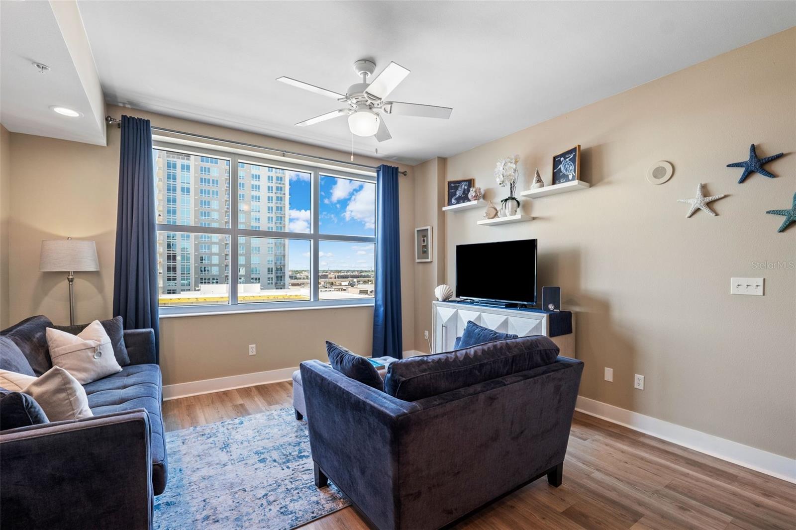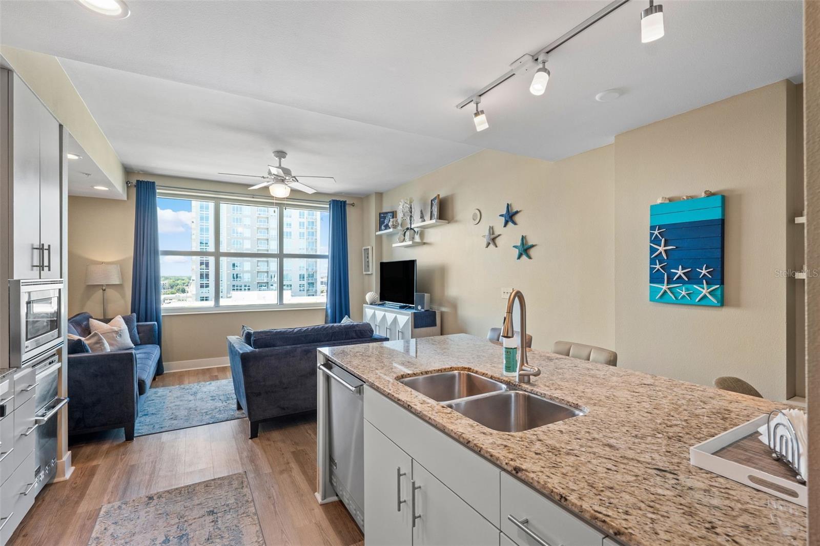 Bem-vindo à sua nova casa em Grand Central em Kennedy, localizada no vibrante e crescente distrito de Channelside. Esta unidade de condomínio lindamente remodelada nº 1017 está situada no 10º andar do edifício leste, oferecendo vistas deslumbrantes de Ybor City e Raymond James Stadium. Desfrute do novo piso de madeira laminado à prova d'água, tinta interior fresca, fãs elegantes de teto novos, rodapés contemporâneos e um banheiro totalmente remodelado, com pisos de ladrilhos novos, telhas de parede modernas e um chuveiro de vidro sem moldura. A cozinha é o sonho de um chef, equipado com balcões de granito, aparelhos viking de nível profissional, incluindo uma geladeira, fogão a gás, lava-louças, microondas e forno a gás. Uma nova lavadora e secadora também está incluída para sua conveniência. The unit boasts 9' 6" ceilings, creating an open and airy feel. Large windows allow for plenty of natural light and provide stunning views of the surrounding area. Condo includes one designated parking space. The community features two 9th-floor pool decks, a state-of-the-art fitness center, a clubhouse, grills, a spa, and a dog walk, providing ample space for relaxation and entertainment. Grand Central's HOA includes 24-hour security and concierge, Gás, água, controle de pragas, manutenção de CA, acesso a aplicativos sem chave, captação de pacotes Luxor e coleta de lixo. Parque por diversão ao ar livre imediatamente do outro lado da rua.