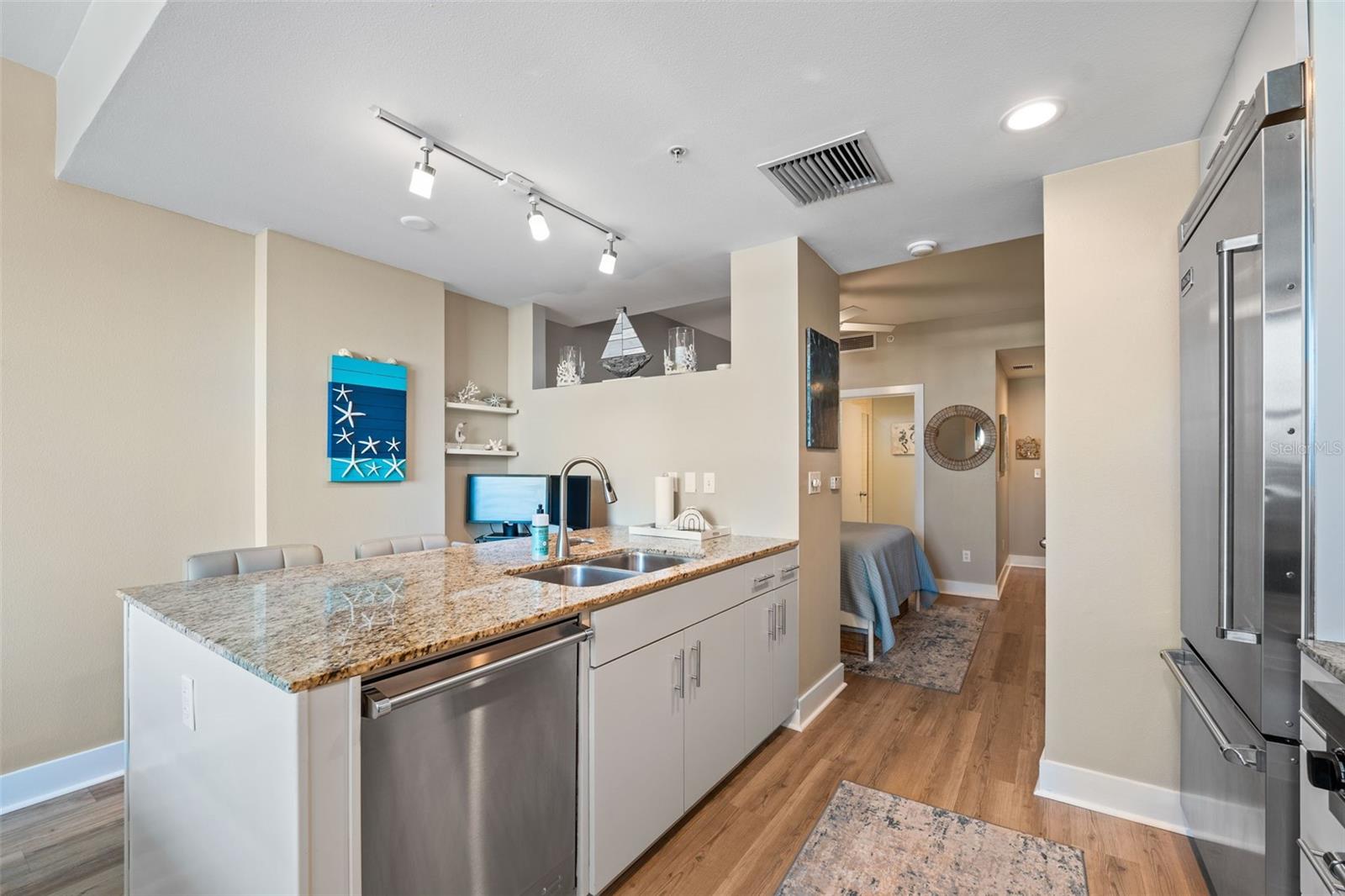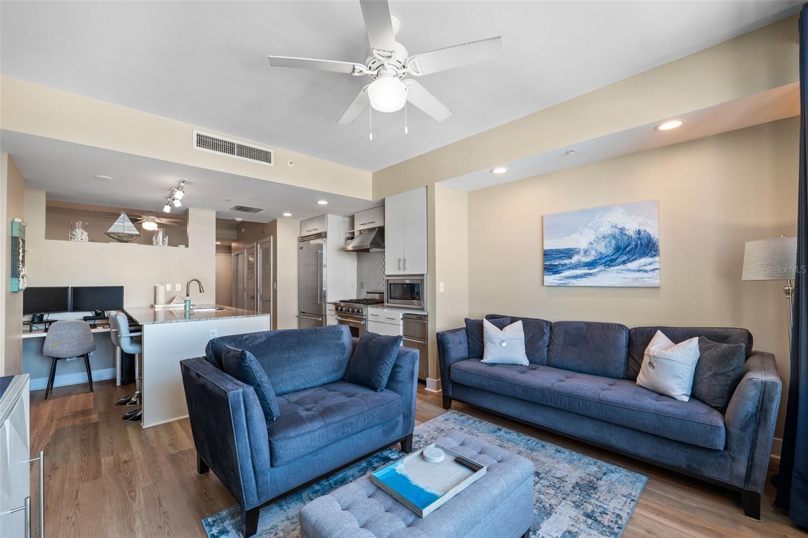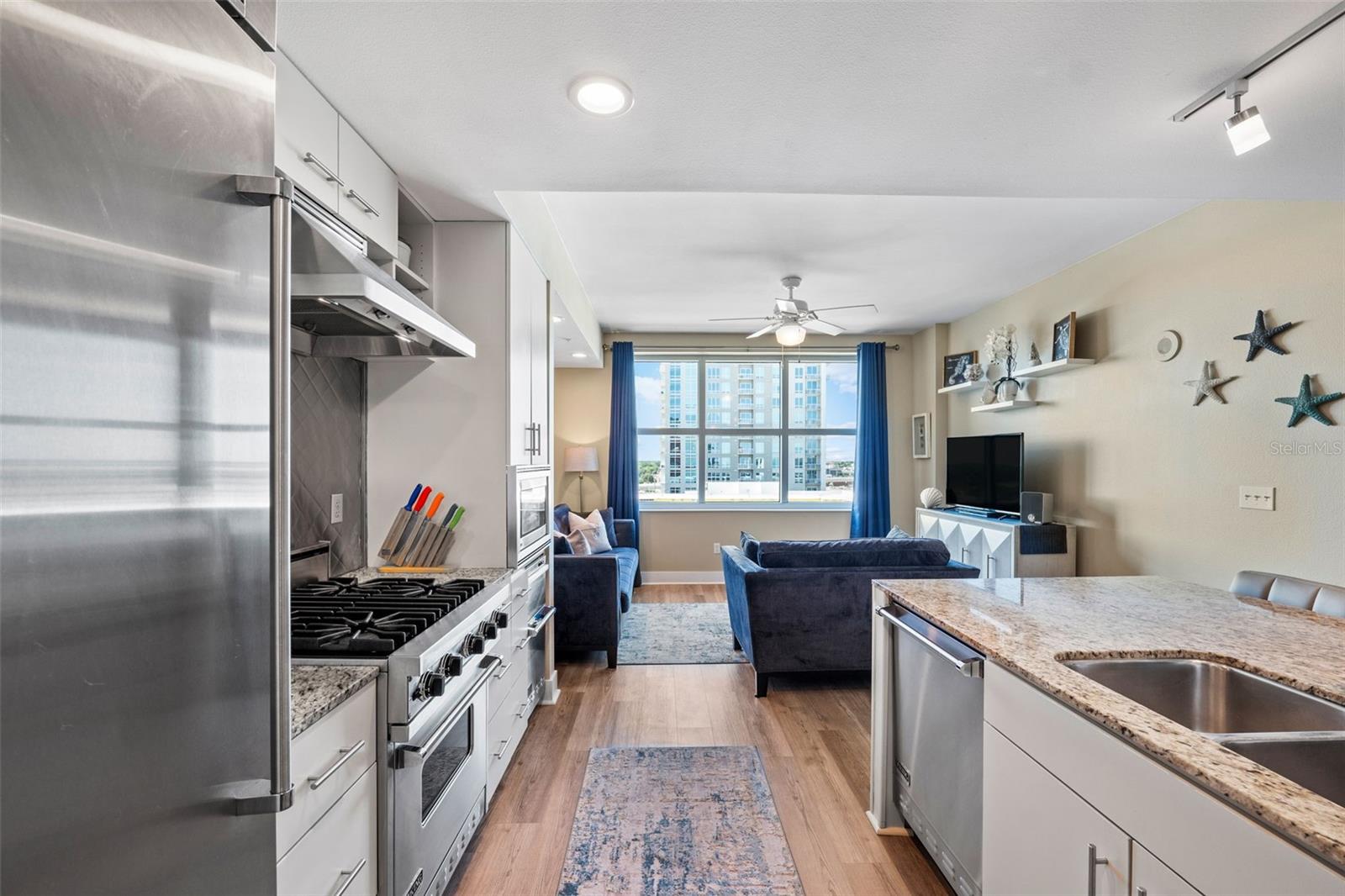 Bem-vindo à sua nova casa em Grand Central em Kennedy, localizada no vibrante e crescente distrito de Channelside. Esta unidade de condomínio lindamente remodelada nº 1017 está situada no 10º andar do edifício leste, oferecendo vistas deslumbrantes de Ybor City e Raymond James Stadium. Desfrute do novo piso de madeira laminado à prova d'água, tinta interior fresca, fãs elegantes de teto novos, rodapés contemporâneos e um banheiro totalmente remodelado, com pisos de ladrilhos novos, telhas de parede modernas e um chuveiro de vidro sem moldura. A cozinha é o sonho de um chef, equipado com balcões de granito, aparelhos viking de nível profissional, incluindo uma geladeira, fogão a gás, lava-louças, microondas e forno a gás. Uma nova lavadora e secadora também está incluída para sua conveniência. The unit boasts 9' 6" ceilings, creating an open and airy feel. Large windows allow for plenty of natural light and provide stunning views of the surrounding area. Condo includes one designated parking space. The community features two 9th-floor pool decks, a state-of-the-art fitness center, a clubhouse, grills, a spa, and a dog walk, providing ample space for relaxation and entertainment. Grand Central's HOA includes 24-hour security and concierge, Gás, água, controle de pragas, manutenção de CA, acesso a aplicativos sem chave, captação de pacotes Luxor e coleta de lixo. Parque por diversão ao ar livre imediatamente do outro lado da rua.