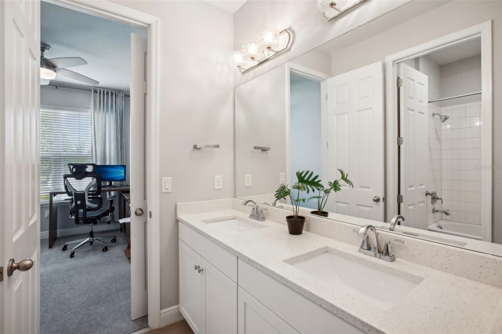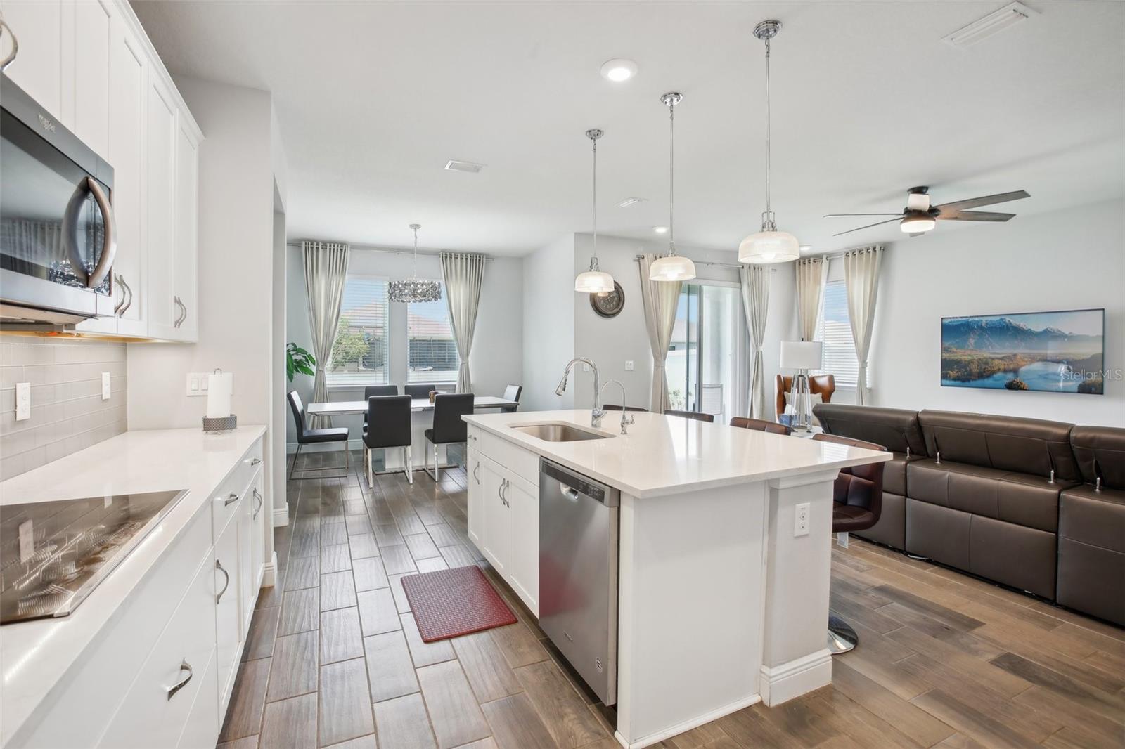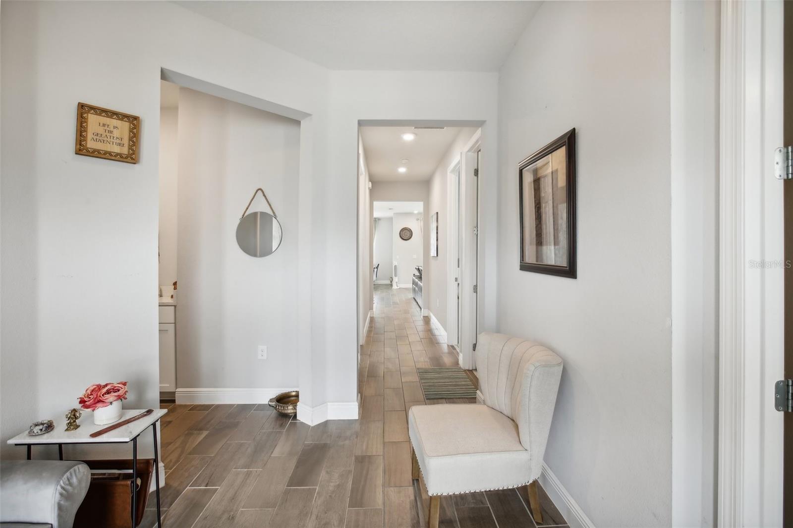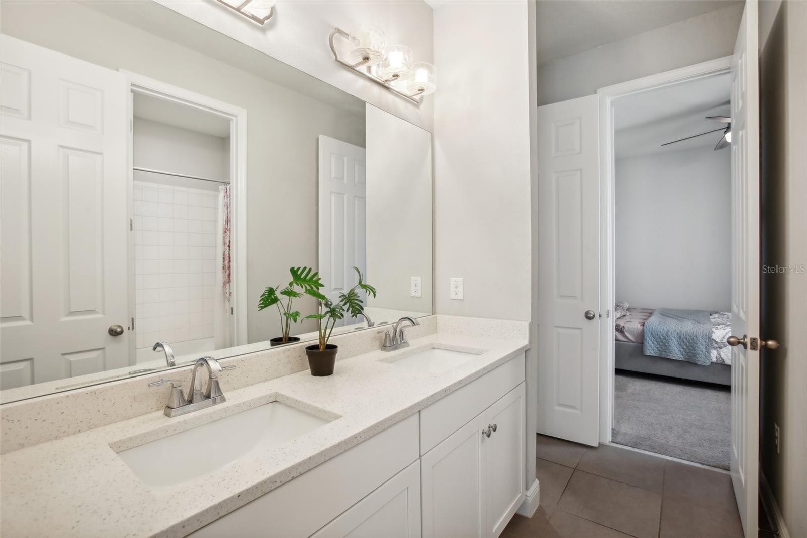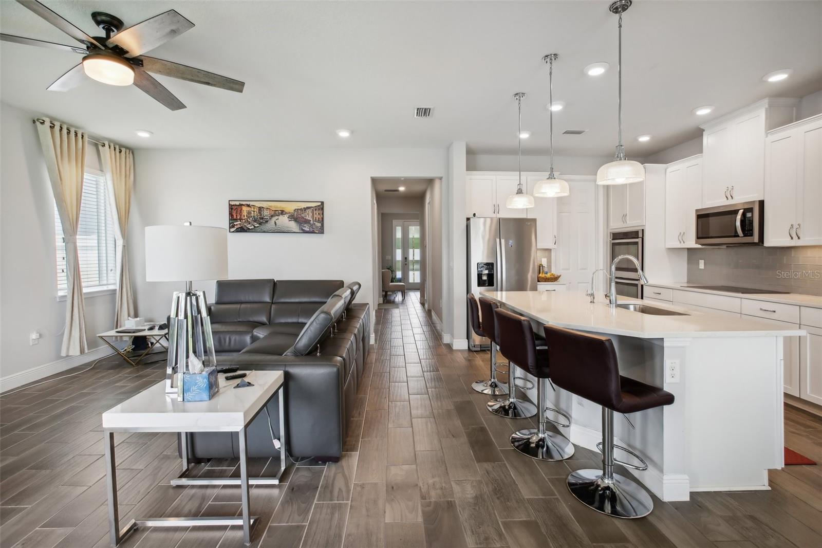 Localizado na comunidade fechada do fechamento da Reserva em Westchase, dividindo em zonas para as escolas West Chase, esta casa deslumbrante está pronta para a mudança! A bela casa de um andar tem 4 quartos e 2 banheiros e foi impecavelmente mantida. Possui uma garagem de pavimentação, paisagismo atraente, um hall de entrada e uma planta baixa e procurada para a privacidade. O espaço de vida do Open Concept inclui um lindo interior atualizado, perfeito para entretenimento. As características premium desta casa incluem ladrilhos de aparência de madeira em todas as áreas principais, uma cozinha inspirada no chef com utensílios de aço inoxidável, bancadas de quartzo em todos os banheiros e na cozinha, uma sala de lama/área de aterrissagem da garagem, uma grande lavanderia separada com lavadora e secadora incluída e um quintal privado que é do tamanho de uma piscina. The stunning, bright kitchen is equipped with stainless steel appliances, quartz countertops, beautiful 42" wood cabinets, an extra deep walk-in pantry, and a center island with a breakfast bar. The primary suite includes spacious dual closets and a luxurious en suite bath with dual vanities and an oversized shower. Towards the front of the home, there are two bedrooms with a convenient Jack and Jill bathroom. The fourth bedroom is conveniently located on the opposite side da casa, perfeita para um quarto ou escritório em casa. A reserva do Citrus Park é uma comunidade fechada exclusiva localizada a poucos minutos da via expressa dos Veterans, oferecendo acesso rápido ao centro de Tampa, ao Aeroporto Internacional de Tampa e às praias do Golfo. Também é dividido na Westchase Elementary, Davidsen Middle e Sickles High School. Casas como essa raramente aparecem, então não perca sua chance!
