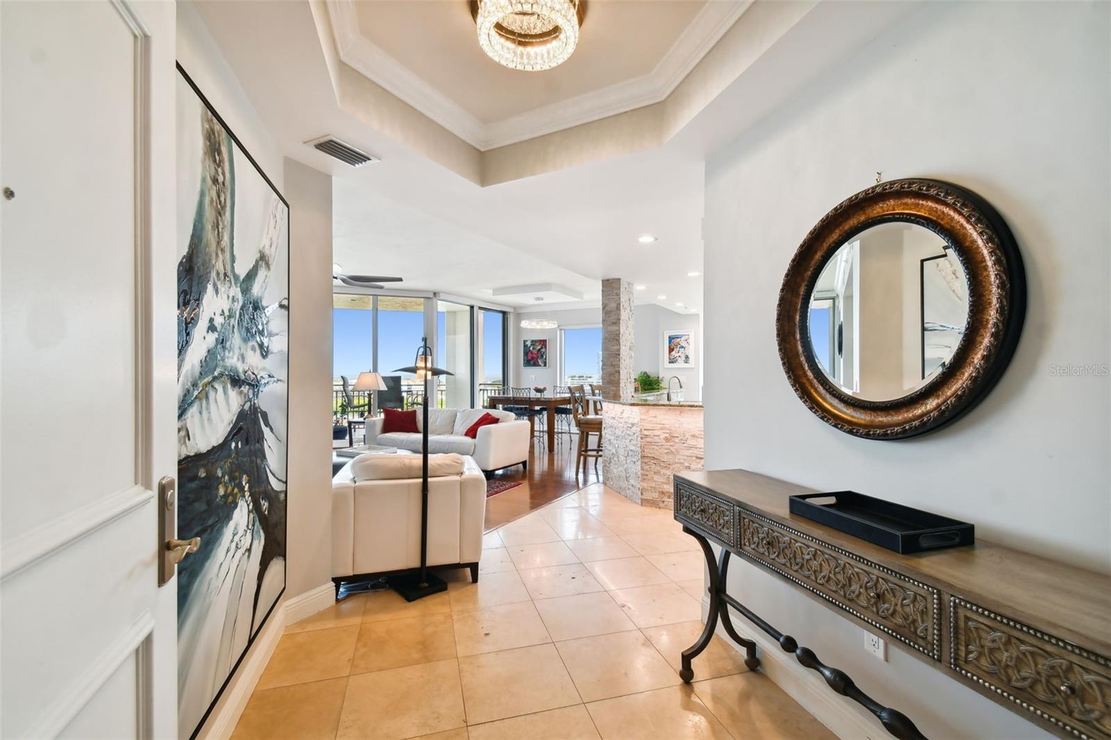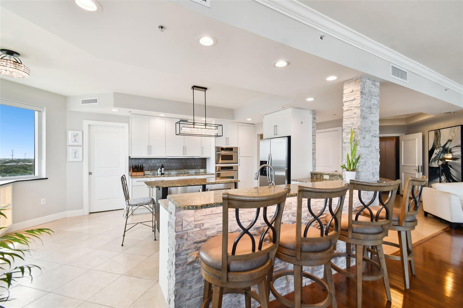Bem-vindo ao epítome da vida luxuosa no Castillo Tower, uma requintada unidade de canto no 9º andar do prestigiado Westshore Yacht Club. Esta residência de 3 quartos e 3,5 banheiros se estende por 2.600 pés quadrados e foi recentemente renovada com US$ 200 mil em atualizações, exalando elegância moderna. Desfrute de vistas épicas com vistas do nascer e do pôr do sol em duas varandas. A unidade possui tetos de 2,7 metros, sancas elegantes e janelas do chão ao teto, inundando o espaço com luz natural. Lindos pisos de carvalho claro adornam as áreas de entretenimento, complementados por luminárias de design e ventiladores de teto. A cozinha gourmet possui eletrodomésticos de aço inoxidável, bancadas de granito, uma ilha central, backsplash de azulejos personalizados, gavetas e armários com fechamento suave, um grande balcão para café da manhã e um buffet recém-construído com tampo de granito. A extensa remodelação abriu a cozinha para a área de estar, acrescentando novas paredes em pedra, backsplash e frentes de armários. Uma ilha de cozinha renovada, uma geladeira para bebidas e novas luminárias aprimoram este paraíso culinário. O amplo quarto principal inclui dois closets grandes e um banheiro privativo reformado com uma nova bancada de quartzo, armários, chuveiro com efeito de chuva, varinha e jatos laterais, banheira independente, pias, torneiras e ferragens novas. Dois quartos adicionais com banheiro privativo oferecem vistas deslumbrantes do nascer do sol e privacidade. A residência dispõe ainda de escritório/quarto remodelado com parede de pedra nova, secretária embutida com bancada em granito, armários novos e zona de trabalho adicional no armário. Outras atualizações incluem intradorso e iluminação na área de jantar, piso de travertino na entrada, cozinha, corredor e lavabo, novo piso de cerâmica nos quartos, pintura nova e luminárias atualizadas. Desfrute de novas persianas remotas no quarto principal, novos rolos em todas as portas de vidro deslizantes, novos ventiladores de teto e um novo aquecedor de água sem tanque. Castillo Tower oferece comodidades incomparáveis, incluindo piscina aquecida e spa com jacuzzi, sala de teatro, academia de ginástica com sauna seca e a vapor, salão social com cozinha de bufê, sala de bilhar, armazenamento para caiaques e bicicletas e duas suítes de hóspedes. A propriedade inclui a adesão ao estimado Bay Club, que oferece duas piscinas aquecidas em estilo resort, um spa de serviço completo, o 806 Sunset Bar e restaurante e diversas atividades sociais para toda a família. Beneficie de dois lugares de estacionamento designados já equipados para um veículo eléctrico na garagem fechada, uma arrecadação climatizada e entradas seguras 24 horas. Westshore Yacht Club, o principal condomínio à beira-mar com guarda 24 horas de South Tampa, oferece uma marina com 149 vagas, ótimas áreas para caminhadas, um parque comunitário e um novo parque para cães. Convenientemente localizado, a poucos minutos de Publix, Walgreens, CVS e de vários restaurantes. O centro de Tampa, o centro de St. Pete e o Aeroporto Internacional de Tampa também ficam a poucos minutos de distância. Abrace o estilo de vida luxuoso da Castillo Tower, onde convergem elegância, conforto e conveniência.