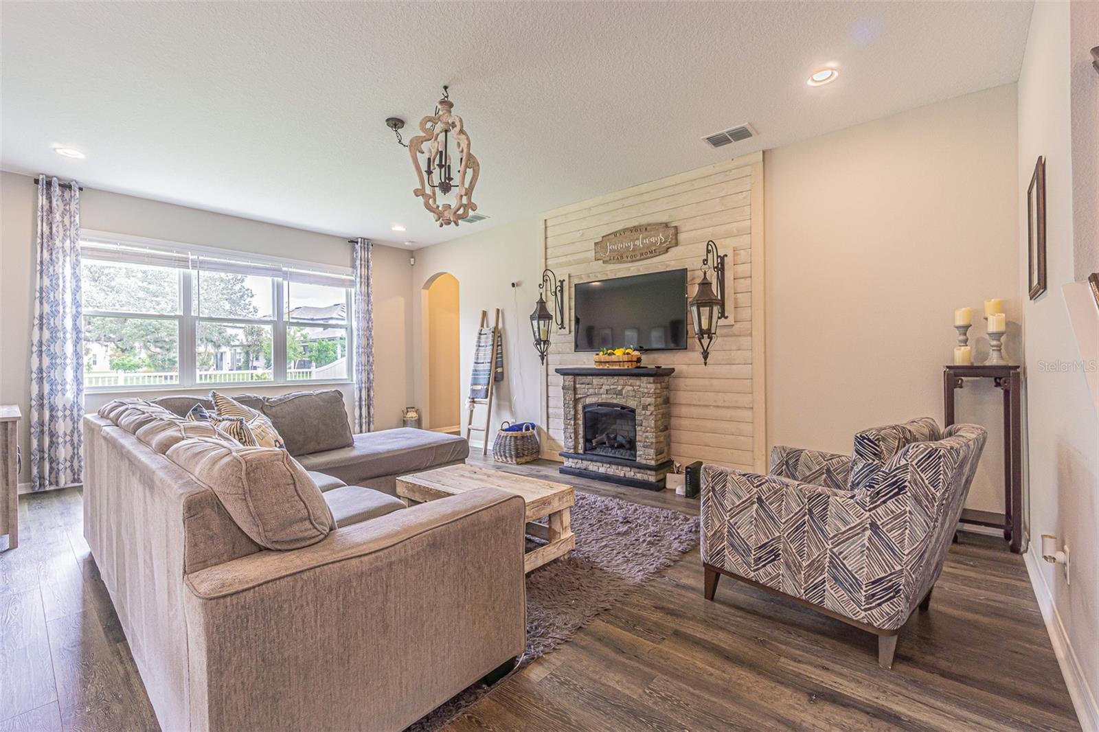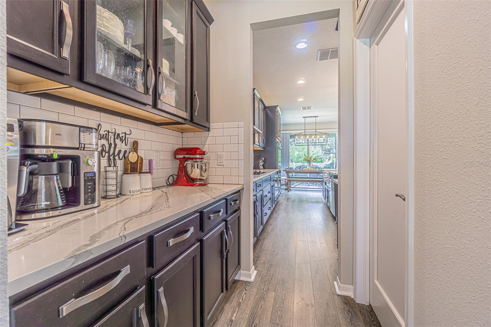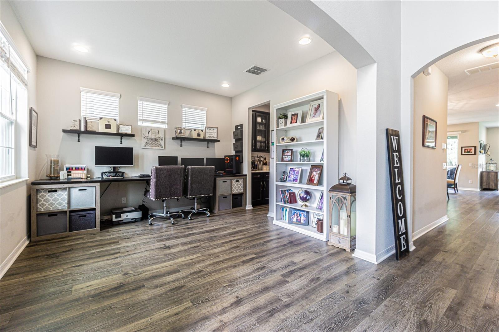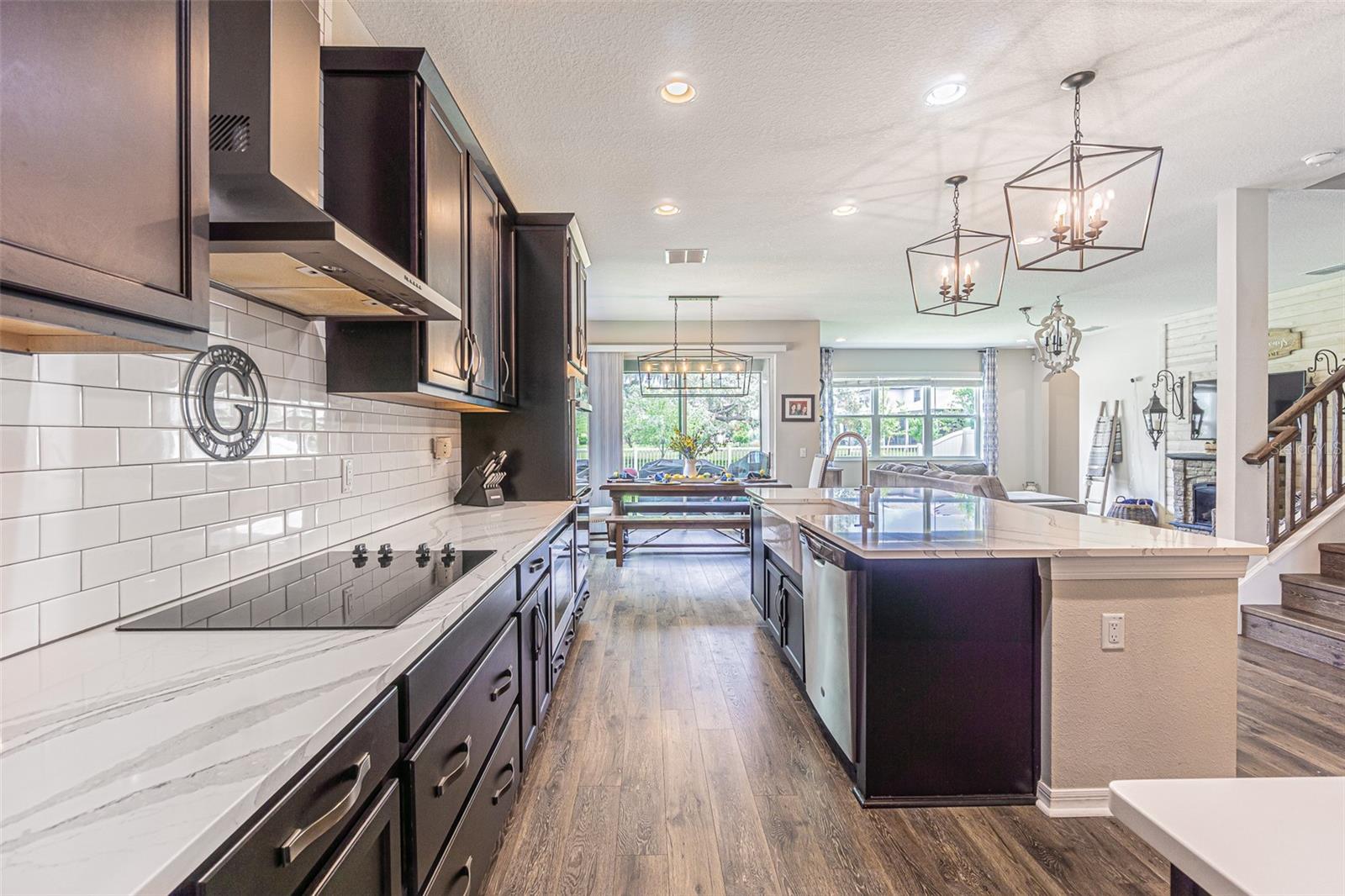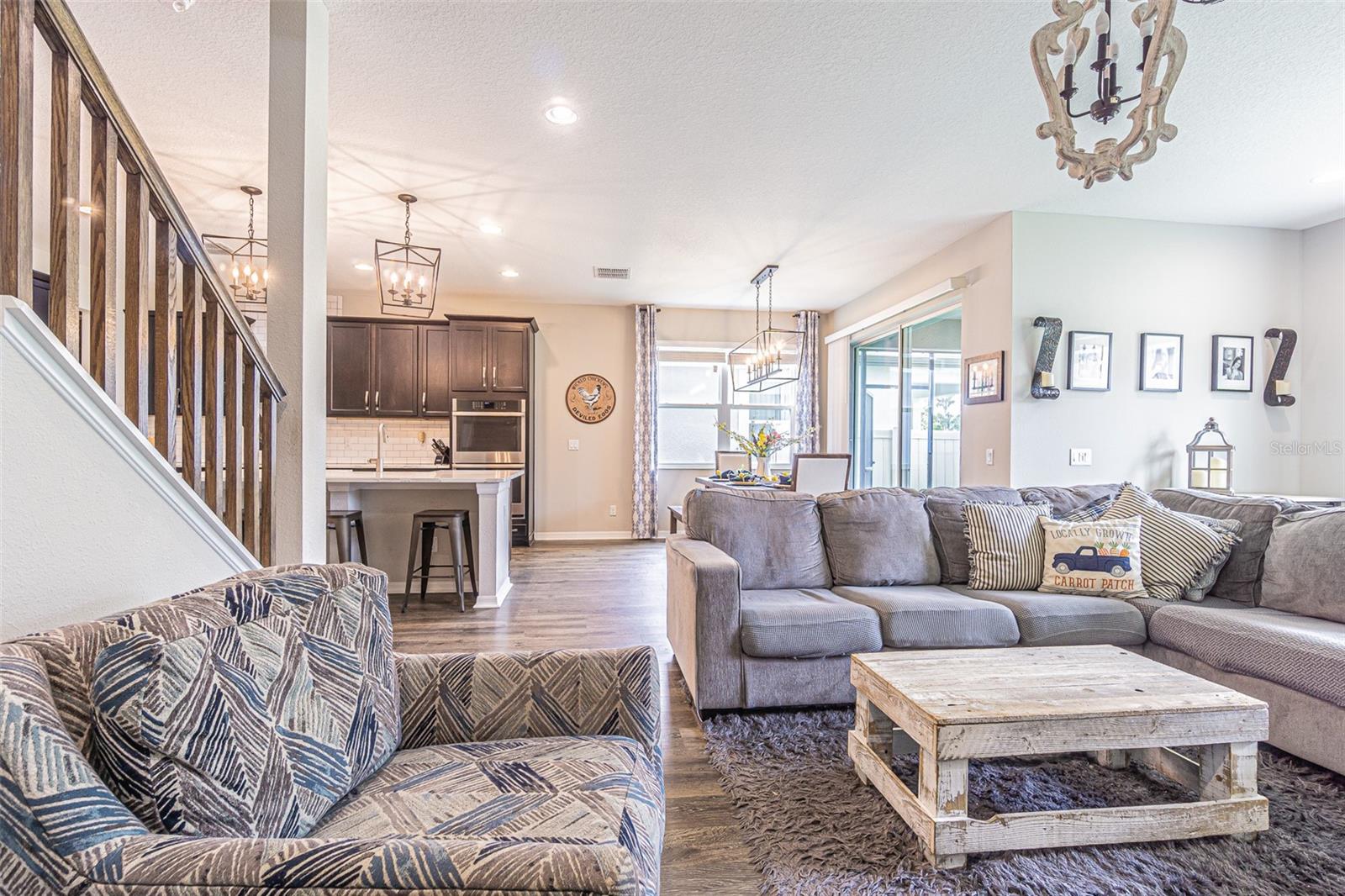 Casa executiva requintada raramente disponível no enclave fechado de Redwood Point no K-Bar Ranch. Por que esperar por uma nova construção quando esta casa pronta para morar apresenta atualizações personalizadas não disponíveis no construtor? À esquerda do amplo hall de entrada fica o escritório/escritório/espaço flexível, com iluminação embutida e muitas janelas para uma bela luz natural. Através de uma bela entrada em arco, você encontra um amplo espaço aberto, incluindo cozinha do chef, área de jantar e grande sala familiar com piso de pranchas de vinil de luxo à prova d'água atualizado para fácil limpeza e manutenção. A cozinha obra-prima possui iluminação embutida, bancadas de quartzo reluzentes, pia de avental, fornos de parede dupla, micro-ondas embutido acessível, exaustor de aço inoxidável, despensa / cafeteria e enorme despensa com porta de vidro fosco. Sala de estar espaçosa e iluminada com parede personalizada e lareira elétrica. Quarto amplo e banheiro completo completam o primeiro andar, perfeito para hóspedes ou sogros. Escada dividida com degraus LVP, corrimão de madeira combinando e bela parede personalizada no patamar. A suíte principal de porta dupla no andar de cima é verdadeiramente um retiro de vitrine, com vigas expostas, iluminação aprimorada, teto falso, amplo banheiro privativo e varanda privativa. O banheiro principal da suíte inclui piso de cerâmica em estilo de tábuas atualizado, bancadas de granito, pias duplas, penteadeira embutida, chuveiro de vidro sem moldura, grande banheira de imersão e o armário boutique dos seus sonhos! Dois quartos secundários grandes, ambos com grandes closets, compartilham um terceiro banheiro completo com pias duplas. O quarto quarto no andar de cima inclui banheiro completo e pode servir como segunda suíte do proprietário. Completando o segundo andar está um grande loft 17x19 que seria a sala de jogos, área de lazer, sala de ginástica, segunda sala de estar ou sala de cinema perfeita. Este espaço possui iluminação embutida, vigas expostas, piso LVP, bar, geladeira para vinhos/bebidas e cubos de armazenamento personalizados com prateleiras. Desfrute de vistas serenas do quintal de um gramado verdejante completamente cercado e de uma grande e bela árvore em sua varanda com tela. A garagem tandem para três carros oferece amplo armazenamento e muito espaço para brinquedos e veículos. Atualizações adicionais incluem sistema de calhas e sistema preventivo de iscas contra cupins, para uma vida sem preocupações. Os condicionadores de ar de zona dupla fornecem resfriamento com eficiência energética. Os recursos de casa inteligente incluem porta de garagem, luzes de ônibus, termostatos e fechadura da porta da frente. O K-Bar Ranch oferece comodidades em estilo resort, incluindo piscina, playground, quadra de basquete, tênis e parque para cães. A poucos minutos de lojas e restaurantes, incluindo o Wiregrass Mall e o Tampa Premium Outlets. Transporte público próximo, campos de golfe premiados e áreas públicas de conservação da natureza com trilhas para caminhada/ciclismo. Zona escolar fantástica.