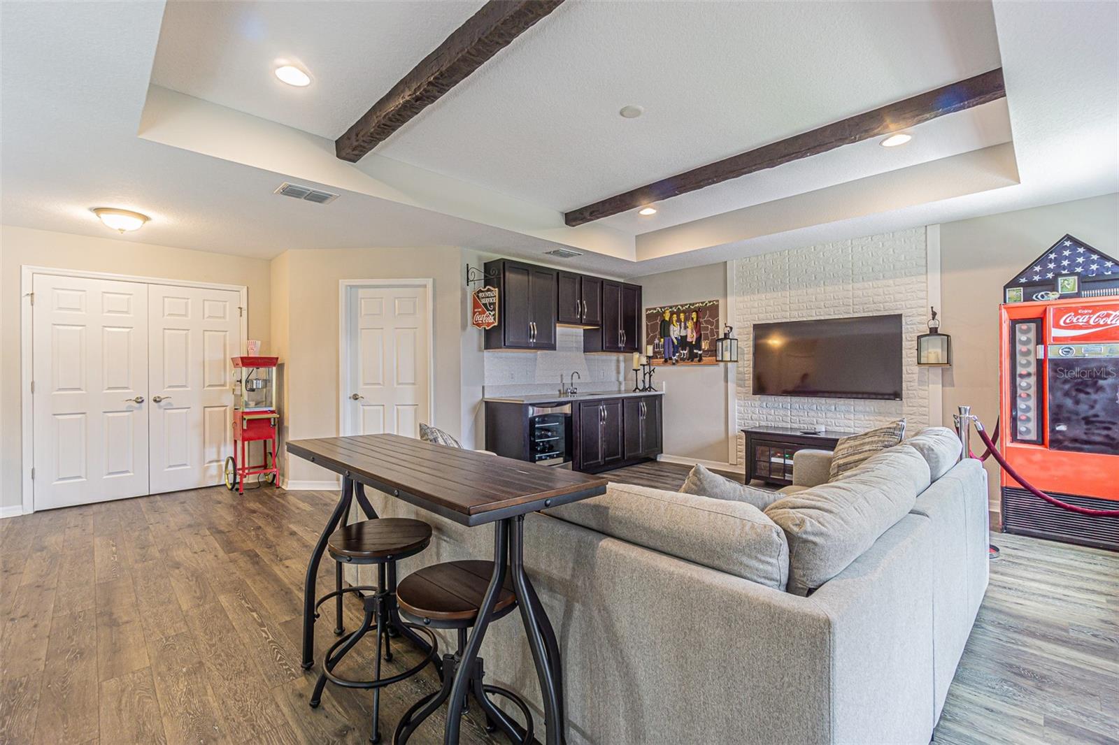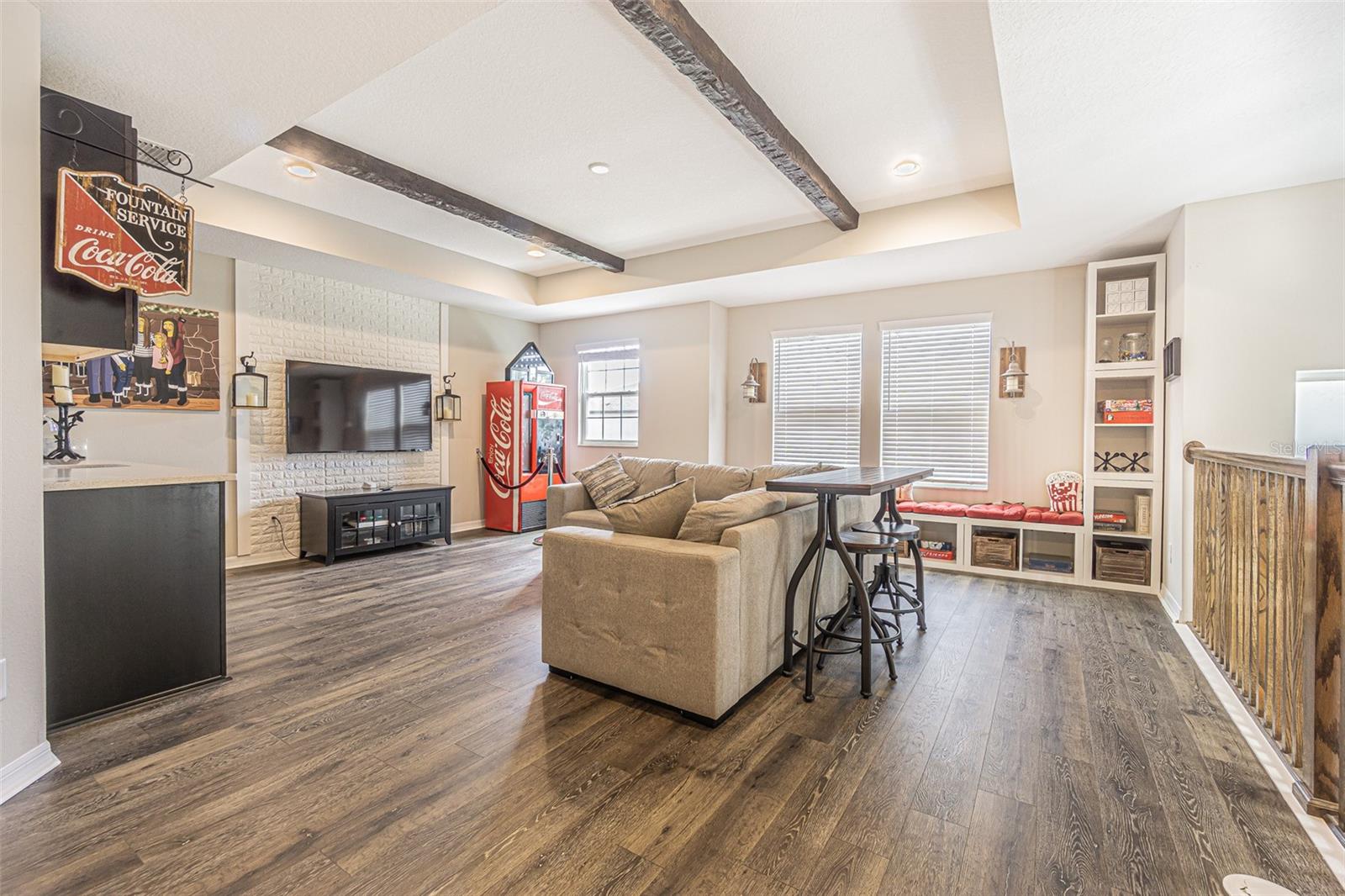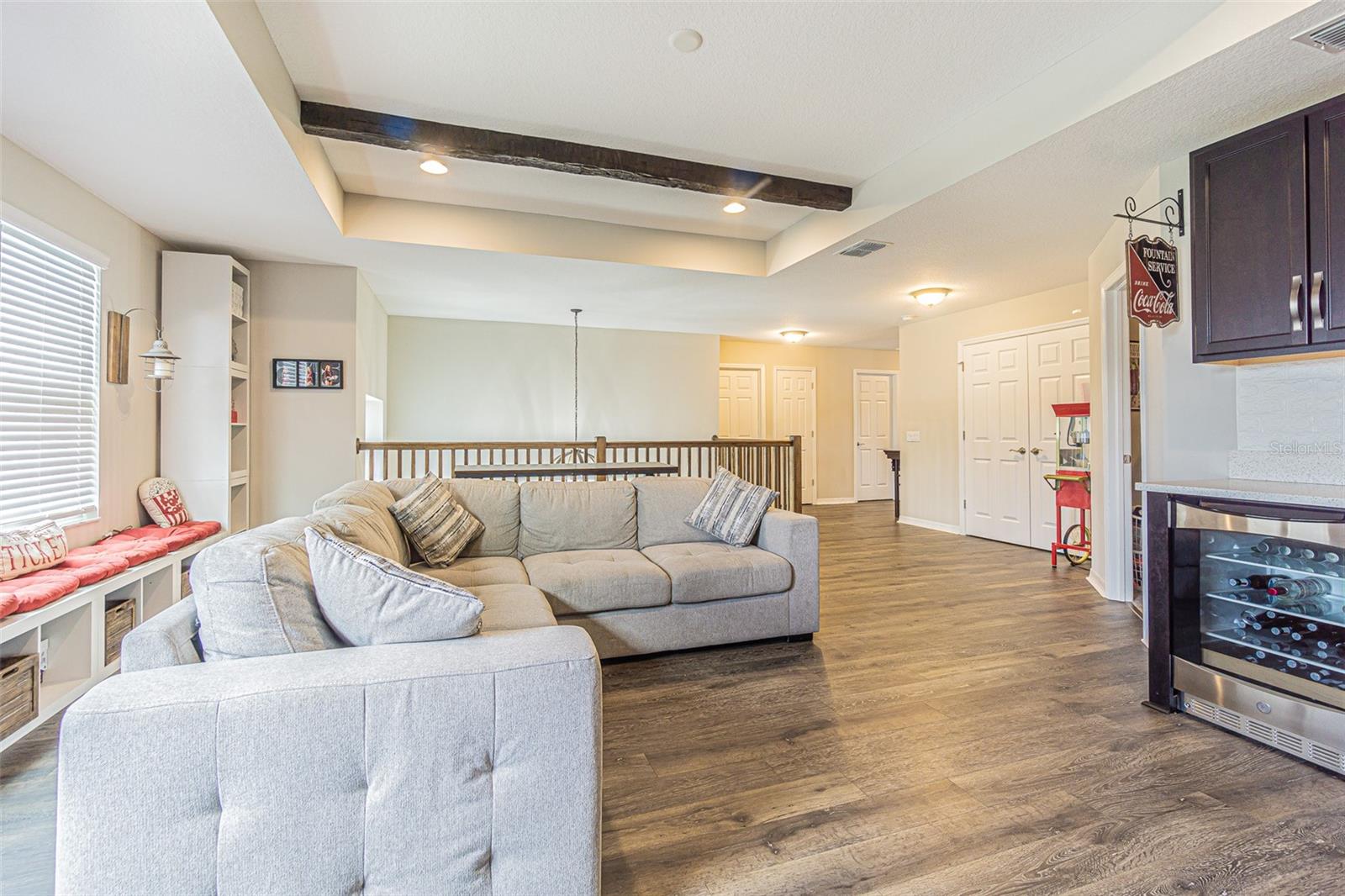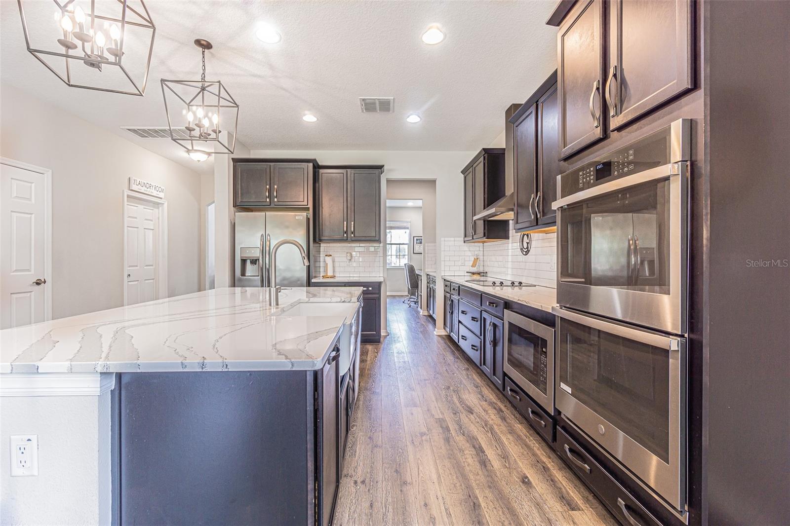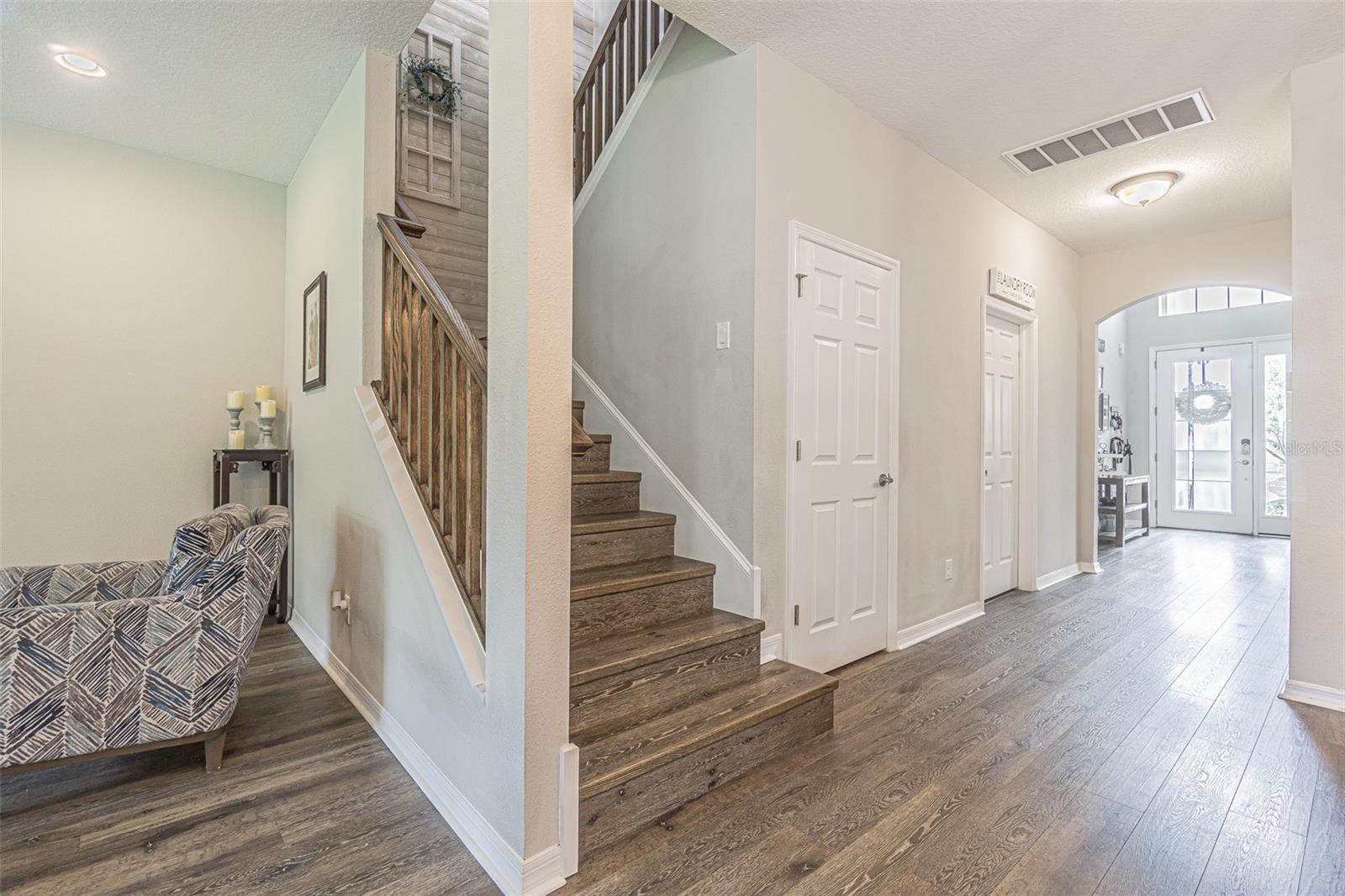 Casa executiva requintada raramente disponível no enclave fechado de Redwood Point no K-Bar Ranch. Por que esperar por uma nova construção quando esta casa pronta para morar apresenta atualizações personalizadas não disponíveis no construtor? À esquerda do amplo hall de entrada fica o escritório/escritório/espaço flexível, com iluminação embutida e muitas janelas para uma bela luz natural. Através de uma bela entrada em arco, você encontra um amplo espaço aberto, incluindo cozinha do chef, área de jantar e grande sala familiar com piso de pranchas de vinil de luxo à prova d'água atualizado para fácil limpeza e manutenção. A cozinha obra-prima possui iluminação embutida, bancadas de quartzo reluzentes, pia de avental, fornos de parede dupla, micro-ondas embutido acessível, exaustor de aço inoxidável, despensa / cafeteria e enorme despensa com porta de vidro fosco. Sala de estar espaçosa e iluminada com parede personalizada e lareira elétrica. Quarto amplo e banheiro completo completam o primeiro andar, perfeito para hóspedes ou sogros. Escada dividida com degraus LVP, corrimão de madeira combinando e bela parede personalizada no patamar. A suíte principal de porta dupla no andar de cima é verdadeiramente um retiro de vitrine, com vigas expostas, iluminação aprimorada, teto falso, amplo banheiro privativo e varanda privativa. O banheiro principal da suíte inclui piso de cerâmica em estilo de tábuas atualizado, bancadas de granito, pias duplas, penteadeira embutida, chuveiro de vidro sem moldura, grande banheira de imersão e o armário boutique dos seus sonhos! Dois quartos secundários grandes, ambos com grandes closets, compartilham um terceiro banheiro completo com pias duplas. O quarto quarto no andar de cima inclui banheiro completo e pode servir como segunda suíte do proprietário. Completando o segundo andar está um grande loft 17x19 que seria a sala de jogos, área de lazer, sala de ginástica, segunda sala de estar ou sala de cinema perfeita. Este espaço possui iluminação embutida, vigas expostas, piso LVP, bar, geladeira para vinhos/bebidas e cubos de armazenamento personalizados com prateleiras. Desfrute de vistas serenas do quintal de um gramado verdejante completamente cercado e de uma grande e bela árvore em sua varanda com tela. A garagem tandem para três carros oferece amplo armazenamento e muito espaço para brinquedos e veículos. Atualizações adicionais incluem sistema de calhas e sistema preventivo de iscas contra cupins, para uma vida sem preocupações. Os condicionadores de ar de zona dupla fornecem resfriamento com eficiência energética. Os recursos de casa inteligente incluem porta de garagem, luzes de ônibus, termostatos e fechadura da porta da frente. O K-Bar Ranch oferece comodidades em estilo resort, incluindo piscina, playground, quadra de basquete, tênis e parque para cães. A poucos minutos de lojas e restaurantes, incluindo o Wiregrass Mall e o Tampa Premium Outlets. Transporte público próximo, campos de golfe premiados e áreas públicas de conservação da natureza com trilhas para caminhada/ciclismo. Zona escolar fantástica.