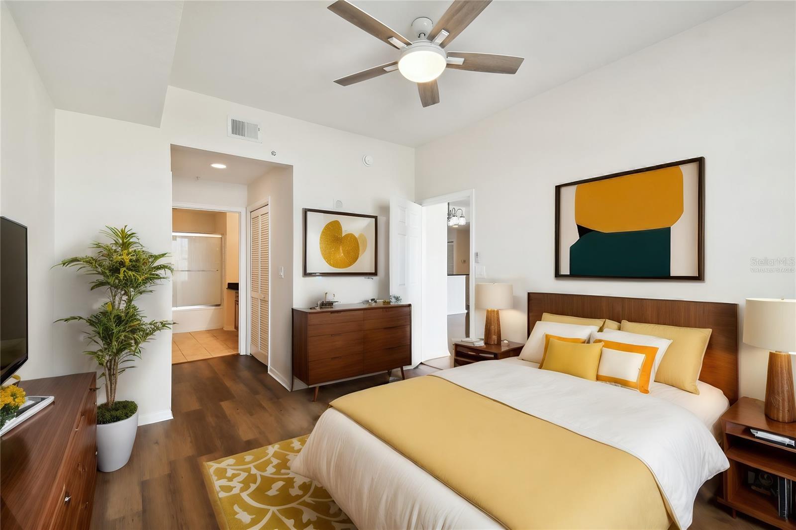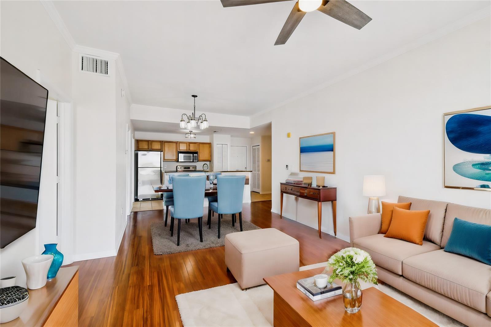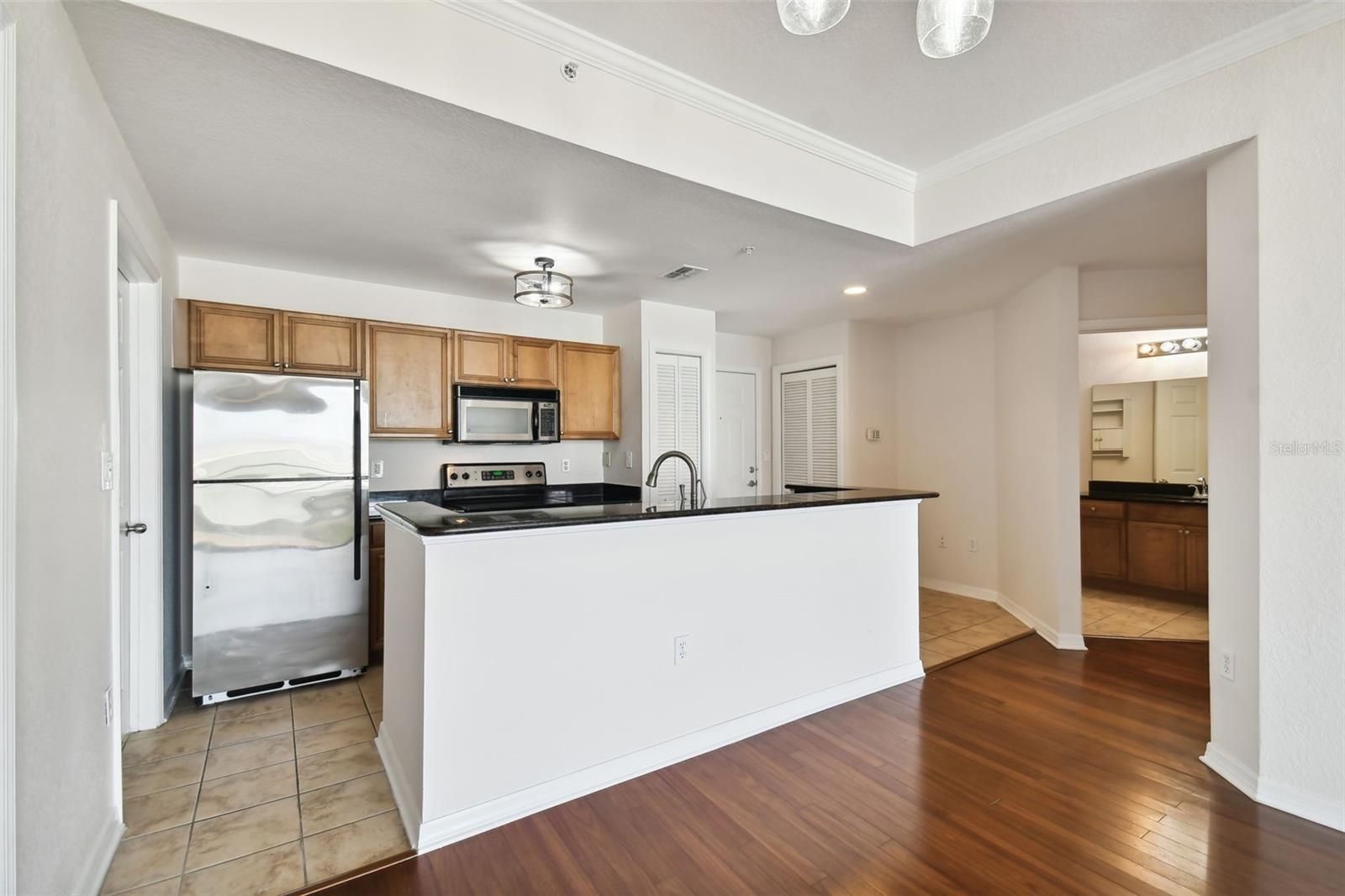 Uma ou mais fotos foram praticamente encenadas. Melhoria de preços! Experimente o batimento cardíaco do centro de Tampa que vive neste requintado condomínio Parkcrest. Seu lugar de estacionamento designado e o segundo lugar estão convenientemente localizados no 4º andar, a poucos passos da sua porta da frente. Imaculadamente mantido, esta residência oferece um exterior, com vistas parciais de água para o oeste, e fornece o estilo de vida urbano final em poucos minutos a toda a cidade que tem a oferecer. Desfrute da planta baixa com piso de madeira brilhante na sala de estar e na sala de jantar. Novo piso LVT e rodapés nos quartos. A tinta fresca oferece uma lousa em branco para tornar o condomínio o seu. Portas deslizantes abertas à varanda de Juliette com vista para o Westin Hotel e o Bistro de Jackson. A cozinha possui armários de madeira e bancadas de pedra de 42 ".