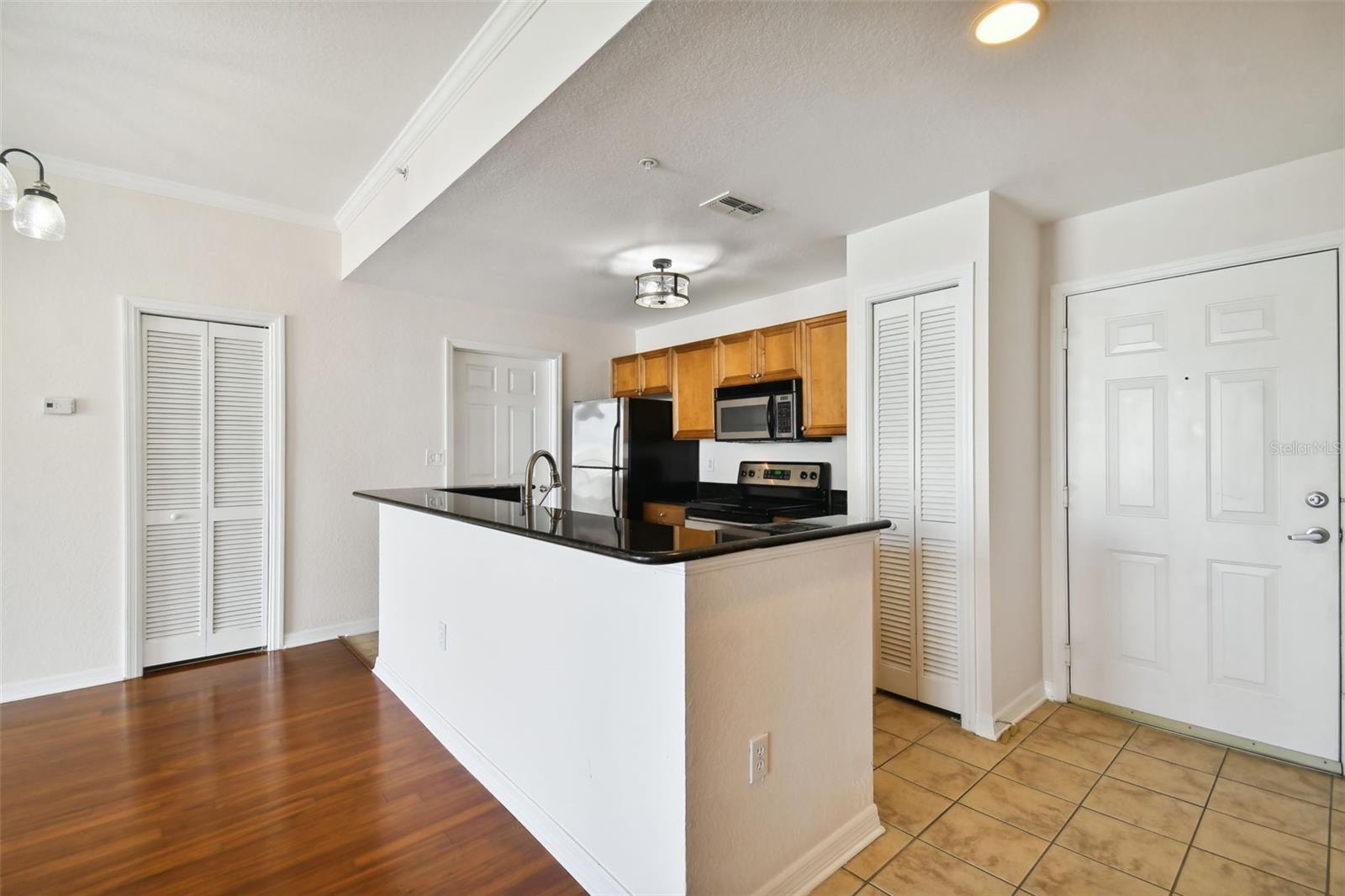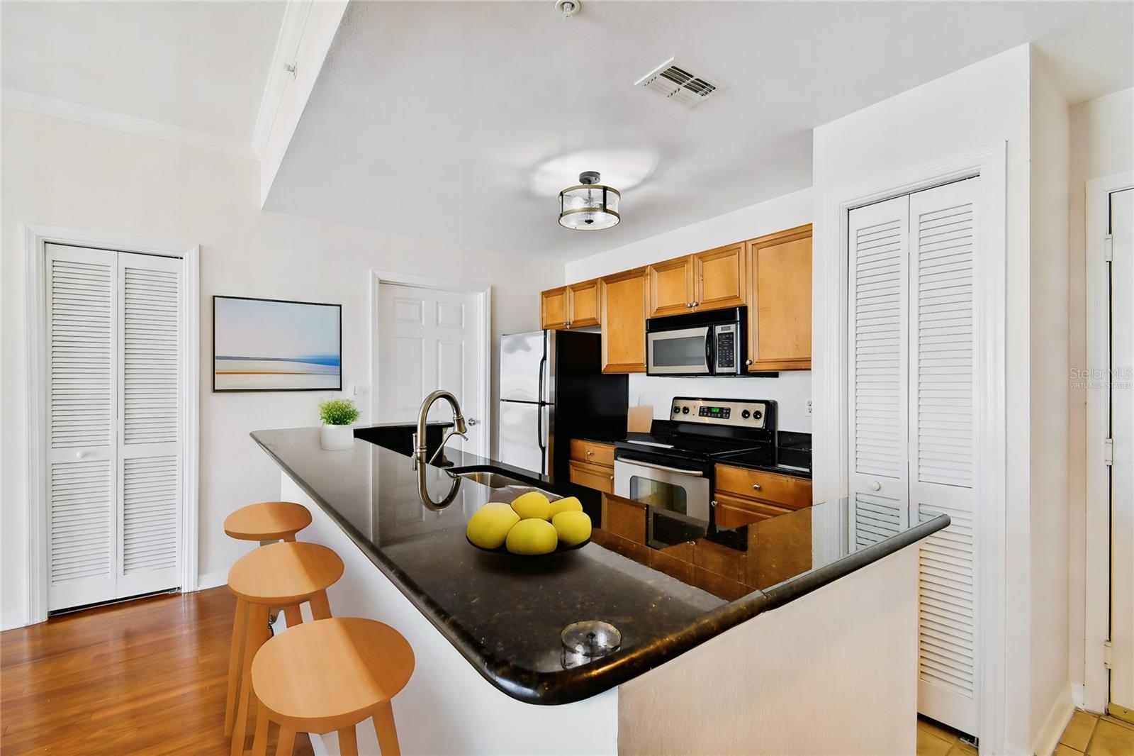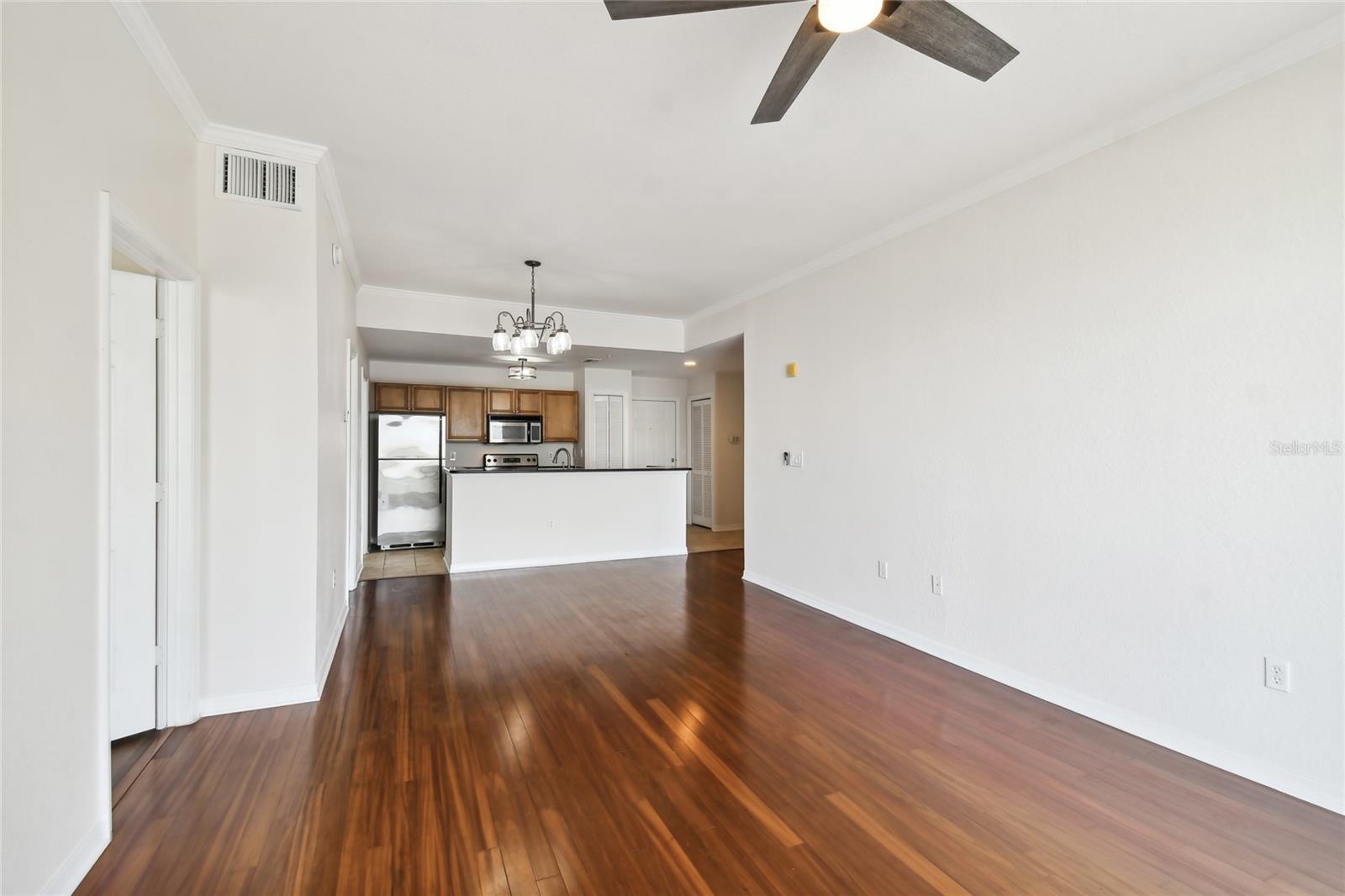 Uma ou mais fotos foram praticamente encenadas. Melhoria de preços! Experimente o batimento cardíaco do centro de Tampa que vive neste requintado condomínio Parkcrest. Seu lugar de estacionamento designado e o segundo lugar estão convenientemente localizados no 4º andar, a poucos passos da sua porta da frente. Imaculadamente mantido, esta residência oferece um exterior, com vistas parciais de água para o oeste, e fornece o estilo de vida urbano final em poucos minutos a toda a cidade que tem a oferecer. Desfrute da planta baixa com piso de madeira brilhante na sala de estar e na sala de jantar. Novo piso LVT e rodapés nos quartos. A tinta fresca oferece uma lousa em branco para tornar o condomínio o seu. Portas deslizantes abertas à varanda de Juliette com vista para o Westin Hotel e o Bistro de Jackson. A cozinha possui armários de madeira e bancadas de pedra de 42 ".