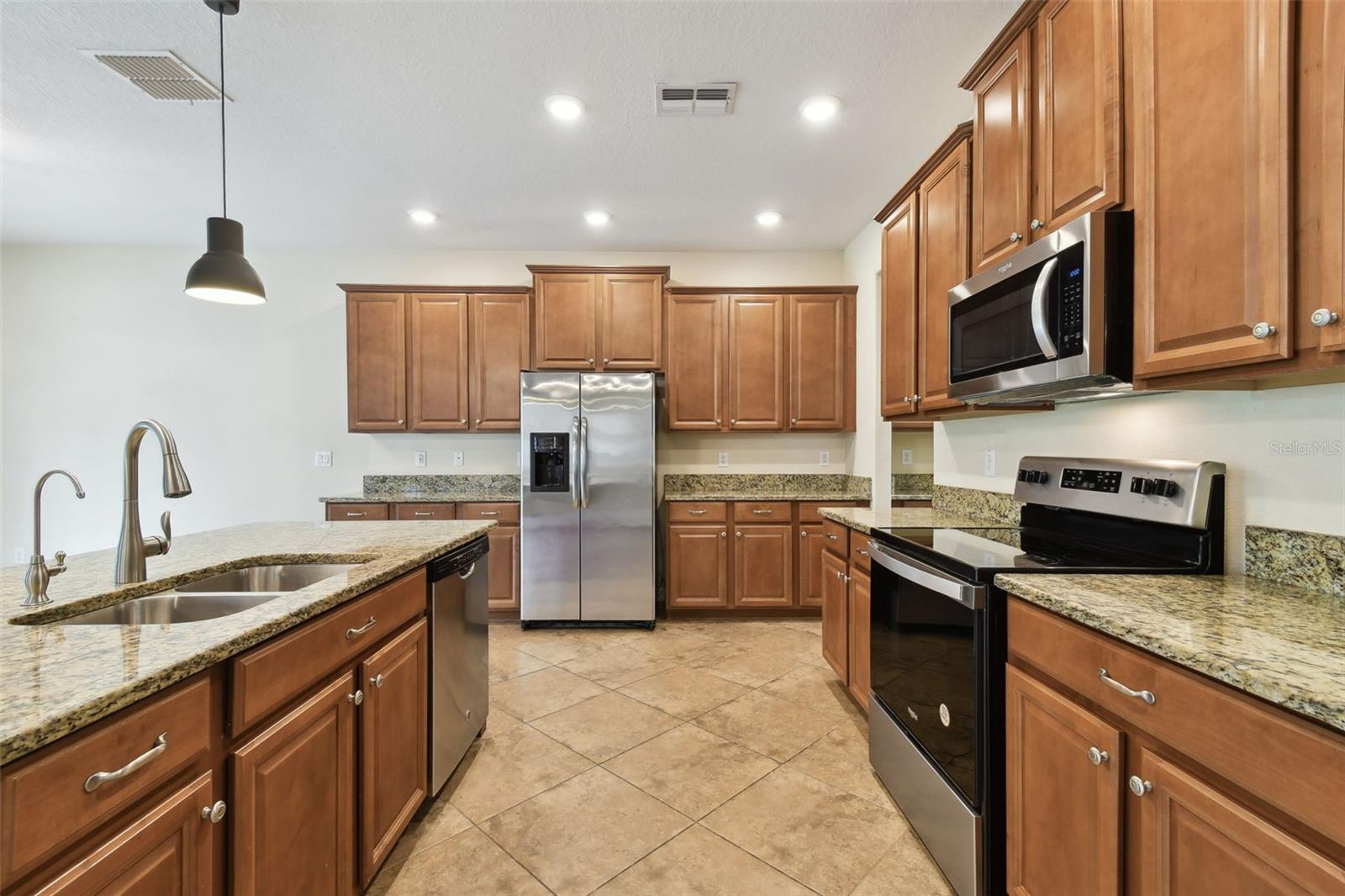 Bem-vindo à casa dos seus sonhos no exclusivo condomínio fechado de Heron Preserve no K-Bar Ranch! Esta espaçosa casa de 4 quartos e 2,5 banheiros possui 2.921 pés quadrados de área útil e dispõe de uma charmosa varanda frontal e uma entrada de automóveis pavimentada. Desfrute de vistas serenas do quintal das terras de conservação. A cozinha de ilha aberta é uma delícia para o chef, completa com armários de 42 polegadas, bancadas de granito e eletrodomésticos de aço inoxidável, todos com vista para uma grande sala familiar perfeita para entretenimento. A casa também inclui uma espaçosa sala de jantar formal, ideal para receber jantares. Retire-se para o quarto principal com seu amplo closet e luxuoso banheiro principal, que possui pias duplas, penteadeira de granito, banheira de jardim e chuveiro grande. Além disso, há uma grande sala de jogos ou sala de mídia, oferecendo espaço versátil para suas necessidades. O Heron Preserve no K-Bar Ranch oferece uma variedade de comodidades, incluindo calçadas, vários lagos e pântanos, uma piscina comunitária com cabana, playgrounds e uma quadra de basquete. Convenientemente localizada perto de restaurantes, Wiregrass Mall, Wesley Chapel Outlet Mall, um cinema e I-75/275, esta casa oferece fácil acesso a tudo o que há na área. Não perca a oportunidade de fazer desta linda casa o seu lar!