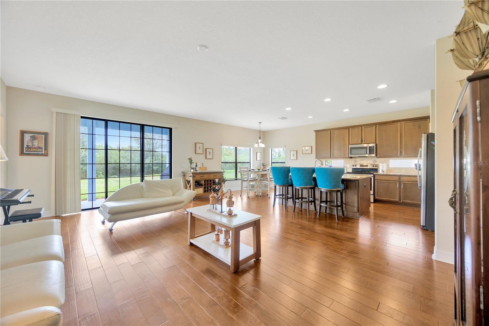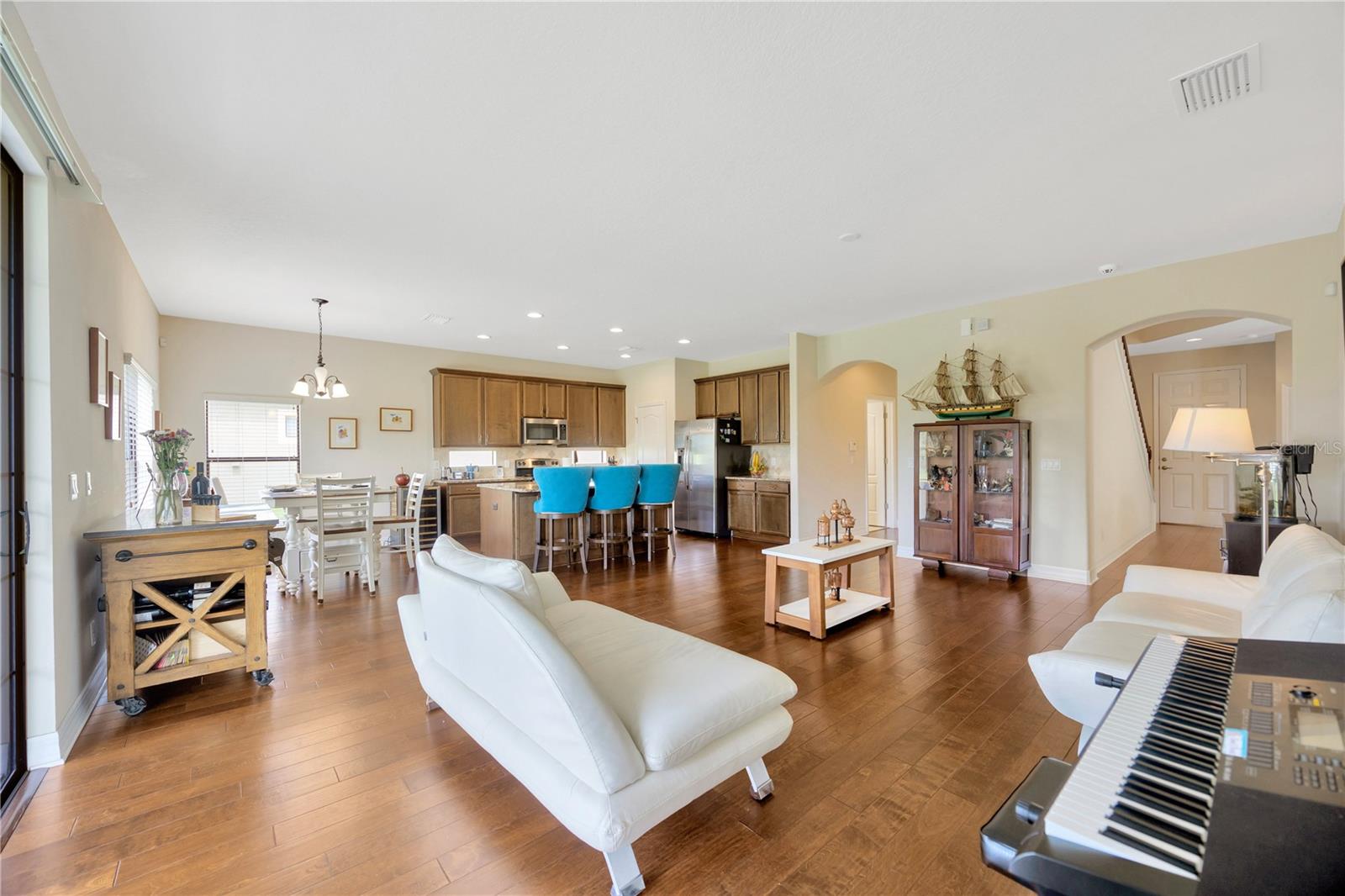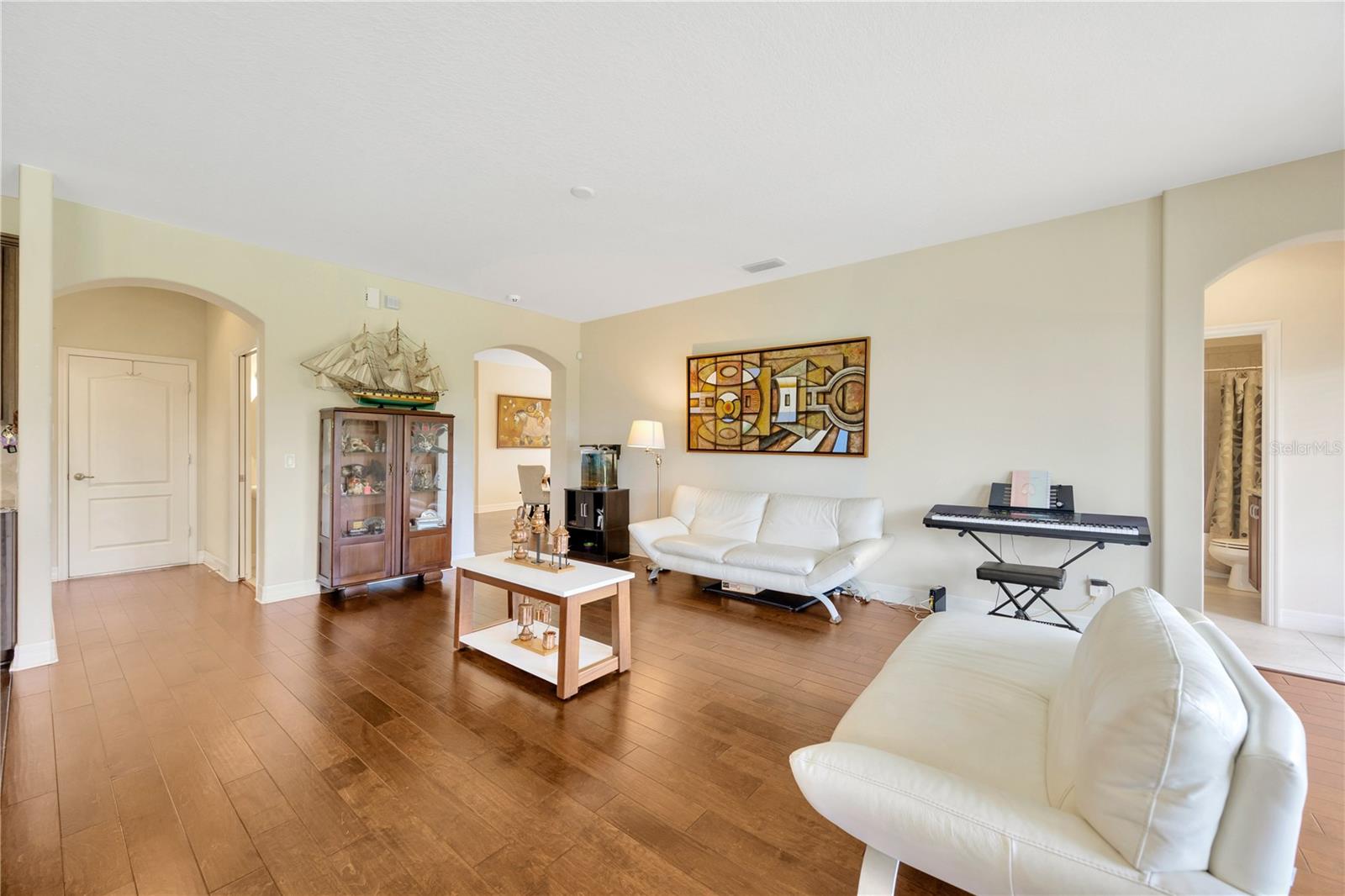 Esta espaçosa casa de 3.393 pés quadrados possui 5 quartos, 3,5 banheiros, sala de bônus, um escritório e uma garagem de 3 carros. O piso plano aberto inclui uma cozinha de comer com uma grande ilha de granito, perfeita para entretenimento e utensílios de aço inoxidável, juntamente com uma despensa de armário e sala de jantar formal separada. O primeiro andar possui belos pisos de madeira projetada em todas as principais áreas de estar, com controles deslizantes triplos levando a um pátio coberto com vista para um lote de conservação. Um quarto, banheiro e escritório estão convenientemente localizados no primeiro andar. No andar de cima, você encontrará quatro quartos grandes, uma sala de bônus e carpete por toda parte. O quarto principal possui tetos abobadados, dois armários e um banheiro luxuoso com um chuveiro grande, banheira de imersão separada e pias duplas. Basset Creek no K-Bar Ranch está perto de tudo o que você precisa. Situado na Cross Creek Boulevard e Kinnan Street, e a uma curta distância de carro da I-75, esta casa oferece as conveniências e as escolas de melhor classificação da área de New Tampa. Perto de fazer compras na Wiregrass, Tampa Prime Outlets e The Grove para I-75, Moffitt, Florida & VA Hospitals, USF, DTCC e todas as comodidades da área de New Tampa em Booming!
