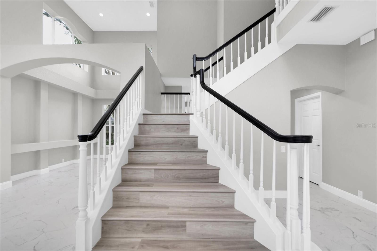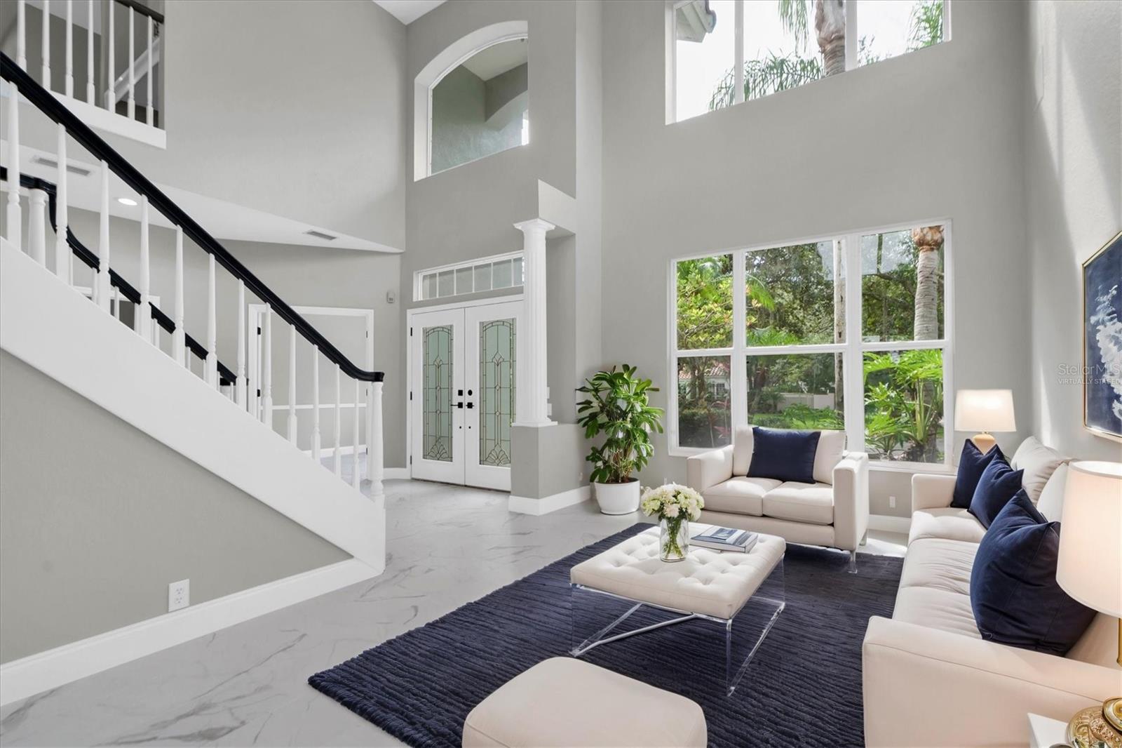 Uma ou mais fotos foram virtualmente encenadas. Descubra a vida moderna nesta joia de 2 andares recém-remodelada na cobiçada comunidade Hunters Green. Esta espaçosa casa oferece 4 quartos, 2,5 banheiros e uma série de atualizações recentes que brilham em todos os cantos. A entrada iluminada leva a um escritório/escritório flexível, ideal para trabalhar em casa. As salas de estar e jantar formais são perfeitas para entretenimento, com grandes janelas que permitem a entrada de muita luz natural. A cozinha remodelada apresenta novos e elegantes eletrodomésticos e flui perfeitamente para a aconchegante sala familiar, tornando-a um espaço perfeito para a vida cotidiana. No andar de cima, todos os quartos estão cuidadosamente posicionados, incluindo um conveniente recanto de mesa para espaço de trabalho extra. A suíte master oferece dois closets, varanda privativa e banheiro recém-reformado com banheira de imersão, box de vidro e pia dupla. Do lado de fora, relaxe em seu retiro privativo no quintal com uma piscina cintilante, perfeita para viver na Flórida. Com novos pisos, cozinha, banheiros e ferragens, esta casa está realmente pronta para morar. Não perca a oportunidade de conhecer esta propriedade deslumbrante - agende hoje mesmo seu tour privado!