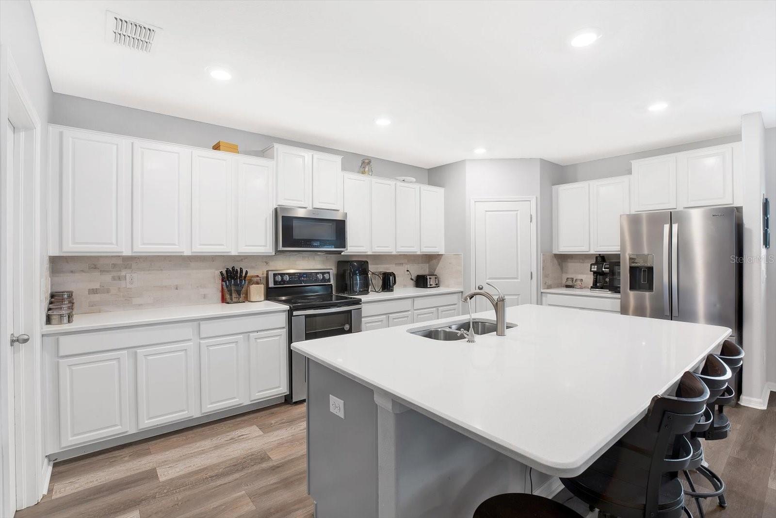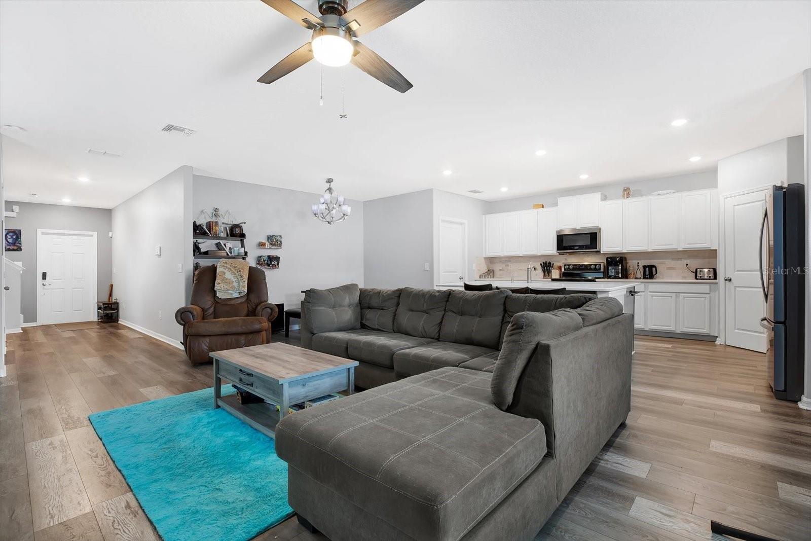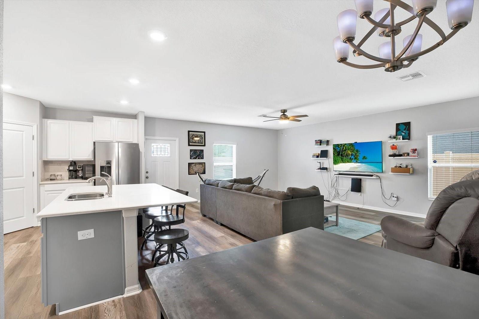 Aninhado na desejável comunidade Touchstone, esta impressionante casa de cinco quartos e dois banheiros é obrigatória! O primeiro andar possui um espaço de vida de conceito aberto, destacado por uma cozinha atualizada com bancadas de quartzo e utensílios de aço inoxidável, fluindo perfeitamente para as áreas de jantar e de estar. Ideal para uma vida divertida e cotidiana, esta casa apresenta pisos de vinil atualizados por toda parte. O quintal oferece uma mistura perfeita de pavimentadores e grama, completa com uma fogueira e um galpão equipado com eletricidade e uma unidade CA. A suíte do proprietário inclui uma vaidade de pia dupla, um chuveiro com uma porta de vidro e um espaçoso closet. Adições recentes incluem painéis solares e um amaciador de água. A comunidade Touchstone fornece comodidades de estilo resort, como piscina, parque de splash, fitness center, quadra de tênis, clube e playground. Convenientemente localizado a poucos minutos das escolas, compras e refeições, esta casa deve estar no topo da sua lista!
