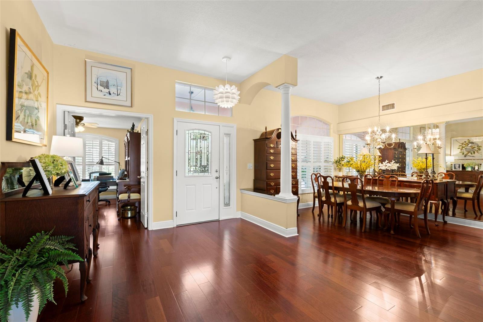 Hunters Green é um bairro silencioso e privado de campo de golfe, com lenços de carvalhos de carvalho alinhando as estradas. É o lar de 17803 Hickory Moss Place, um retiro impressionante, bem conservado e atualizado com quatro quartos, três banheiros e um estudo com uma requintada área de piscina de Lanai. A passarela bem cuidada leva à frente, pátio coberto e entrada para a espaçosa sala de estar formal, o local perfeito para aproveitar o tempo da família com uma vista espetacular do vasto lanai. A área de jantar fica ao lado da sala de estar, ambos completos com piso de madeira projetada. Você ficará surpreso pela cozinha do chef gourmet, com uma geladeira de vinho e ilha de culinária. O proprietário não poupou despesas com applicamentos de KitchenAid, incluindo forno duplo, microondas, alcance de gás e lava -louças. Os grandes armários da Kraftmaid oferecem prateleiras de extração, iluminação sub-cabinete, bancadas de quartzo modernas e uma pia de aço inoxidável, criando uma superfície limpa e durável. A sala da família adjacente à cozinha oferece um grande espaço aberto para fácil entretenimento. A suíte primária é adequada para a realeza, com grandes portas de vidro deslizantes e tetos de três metros. O banheiro parecido com um spa foi recentemente atualizado, junto com as vaidades dele e seu, um chuveiro independente e uma banheira de imersão. Os armários dele e seu completam o retiro primário. Uma planta baixa oferece mais três quartos, incluindo um sogro de sogro separado com entrada de área de piscina privada. O Lanai abre para um gabinete de tela grande, com uma piscina de tamanho agradável, cercado por pavimentadoras de tijolos personalizadas com uma área de piquenique pavimentada privada e um quintal com cercado por vinil. É o paraíso do artista perfeito! Esta adorável casa foi mantida profissionalmente. Os recursos incluem um telhado de quatro anos, aquecedor de água atualizado, interruptor do gerador, persianas de plantações e pisos de madeira de engenharia sofisticados luxuosos. As características de destaque da comunidade verde de Hunter incluem 15 acres de instalações recreativas, como quadras de tênis e pickleball iluminadas, quadras de basquete e vôlei de areia, campos de futebol e beisebol, uma gaiola de rebatedores, um parque de cães sem coleira, caminhos de corrida, caminhos de parques, caminhos de parques de parques de parques. Além disso, o Green Country Club do Hunter oferece associações que variam de associações sociais a completas de golfe, fornecendo acesso às comodidades oferecidas pelos esportes e tacos de golfe, incluindo uma piscina olímpica júnior, toboágua e cabana sombreada à beira da piscina para a experiência final da piscina. Há também golfe em miniatura, novos vestiários, equipamentos de fitness e um café. O campo de golfe de 18 buracos é um design de Tom Fazio. O clube também oferece várias opções de refeições.