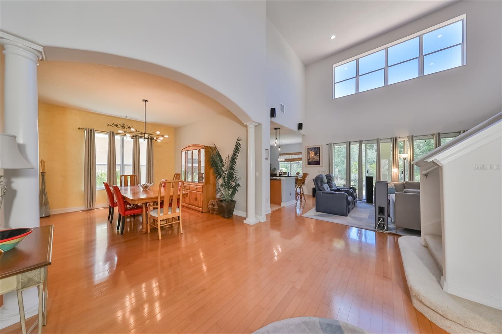 Aninhado dentro das ilhas tranquilas e exclusivas de Cory Lake, esta propriedade à beira -mar exemplifica a vida de luxo, o conforto e a facilidade. Com vista para o lago sereno com uma ilha de conservação atrás, a propriedade promete um retiro pacífico, acentuado pelo exuberante paisagismo tropical. O interior possui um ambiente leve e arejado, com impressionantes tetos de dois andares, tanto na entrada quanto na grande sala, complementados por pisos de madeira de bordo nas áreas de estar e jantar e ladrilhos diagonais na cozinha e nas zonas úmidas. Recently upgraded with sleek luxury vinyl plank flooring throughout, the home features a gourmet kitchen with 42" maple cabinets adorned with roped crown molding, a wine rack, and a functional layout. The open-concept design is enhanced by soaring ceilings, plantation shutters, and elegant arches and columns, all paired with modern amenities like a surround sound system and lanai speaker wiring. * 5 Bedrooms plus Um bônus que pode ser usado como quarto, escritório ou sala de mídia. Esta casa foi projetada com uma planta altamente funcional que inclui cinco quartos espaçosos, além de uma sala de bônus versátil. No nível principal, a ampla suíte primária oferece vistas deslumbrantes de água, um teto de bandeja, armários duplos, vaidades separadas, um espaçoso chuveiro e uma luxuosa banheira de jacuzzi. O segundo andar possui três quartos adicionais, dois banheiros completos e a sala de bônus. As atualizações recentes incluem um novo sistema HVAC instalado no térreo em 2017, uma unidade CA atualizada no andar de cima com luzes ultravioleta em 2024, um novo aquecedor de água em 2024 e um novo amaciador de água. A comunidade de Cory Lake Isles apresenta um lago de esqui de 165 acres para um divertimento sem fim, juntamente com uma variedade abrangente de comodidades, como um clube, um coordenador de eventos dedicado, uma piscina em estilo resort, um piscina de tênis, um quadras de roll, um soldado de tênis, um cortes de rolos de rolos, um soldado de rolos, um soldado de rolos, um soldado de rolos, um cortes de regulamento de rolos, um soldado de rolos, um soldado de rolos, um soldado de regulamento de rolos, um soldado de regulamento. Os moradores se beneficiam de trilhas cênicas, pontos de piquenique e uma praia particular, garantindo amplas oportunidades de lazer e relaxamento ao ar livre. Esta casa, com seus recursos luxuosos, atualizações modernas e extensas ofertas comunitárias, fornece um estilo de vida distinto e atraente em um cenário seguro e pitoresco.