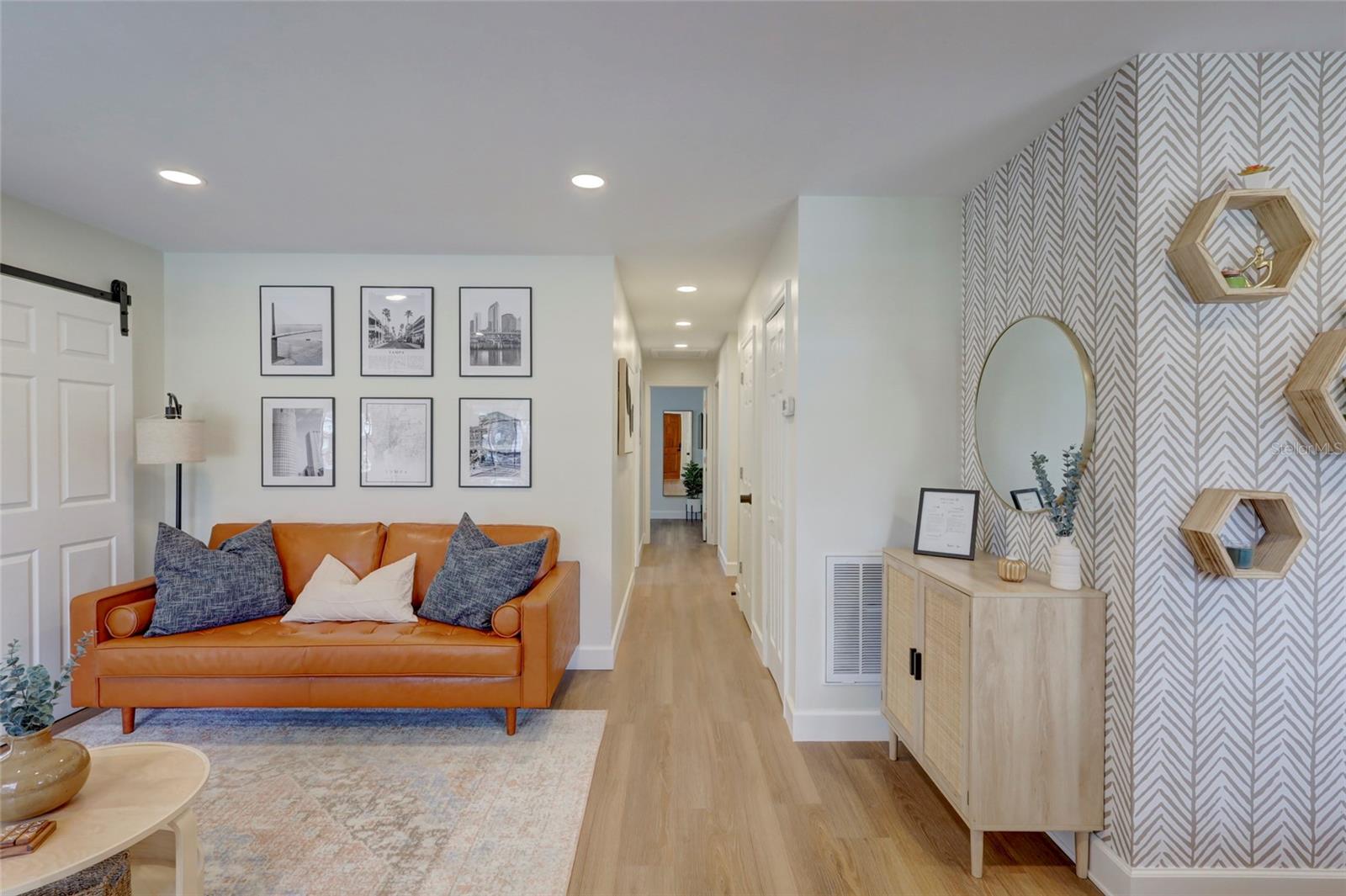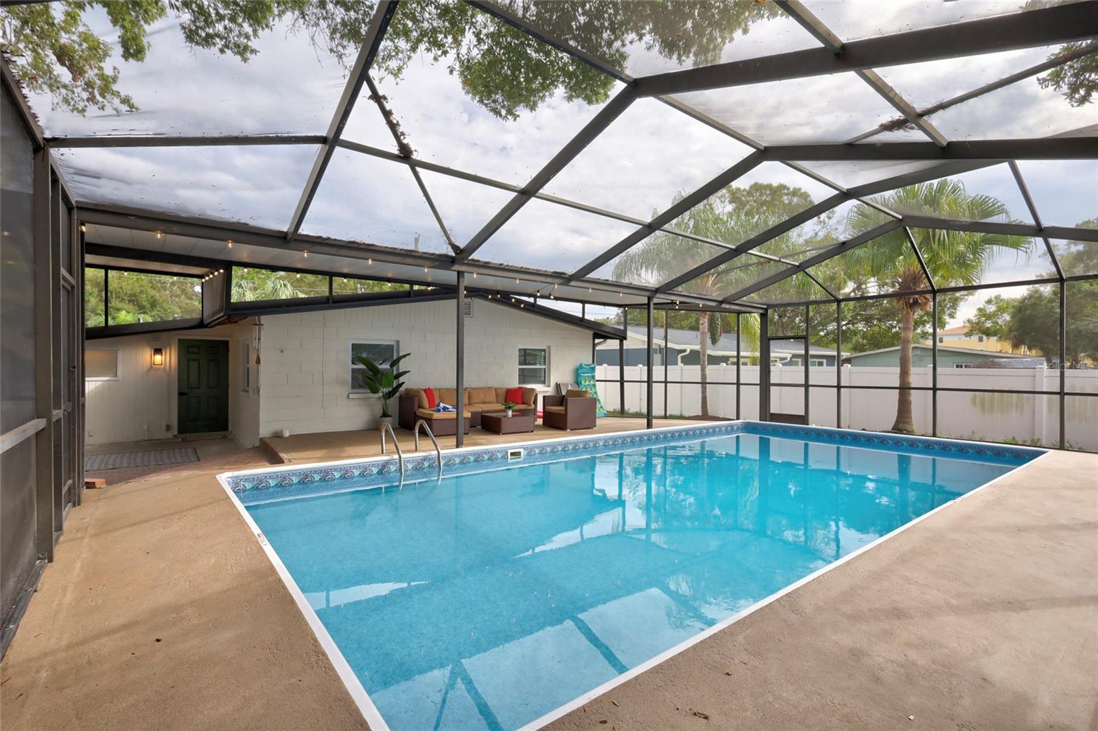Esta casa está sendo vendida com móveis disponíveis. Casa totalmente renovada em South Tampa. Ao entrar na casa, você encontrará um piso plano aberto com uma aconchegante sala de estar formal, cozinha, uma área de jantar e uma área de entretenimento. Este espaço inclui 3 quartos e uma grande sala de bônus, além de 2 banheiros completos. A área da piscina está enjaulada e há um cercado no quintal. A casa também inclui uma lavadora e secadora. Atualizações recentes da casa: A/C: 2022 Aquecedor de água: 2022 Lavadora e secadora: 2023 A casa foi usada como um Airbnb. Sinta -se à vontade para perguntar sobre a geração de receita.