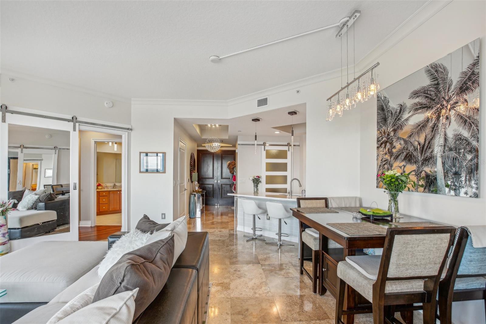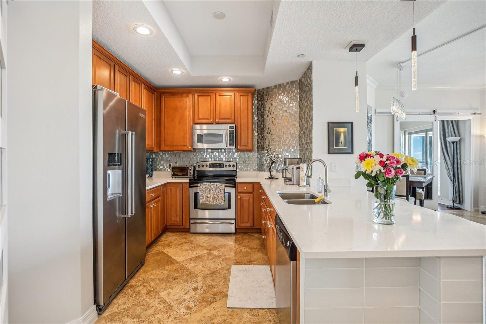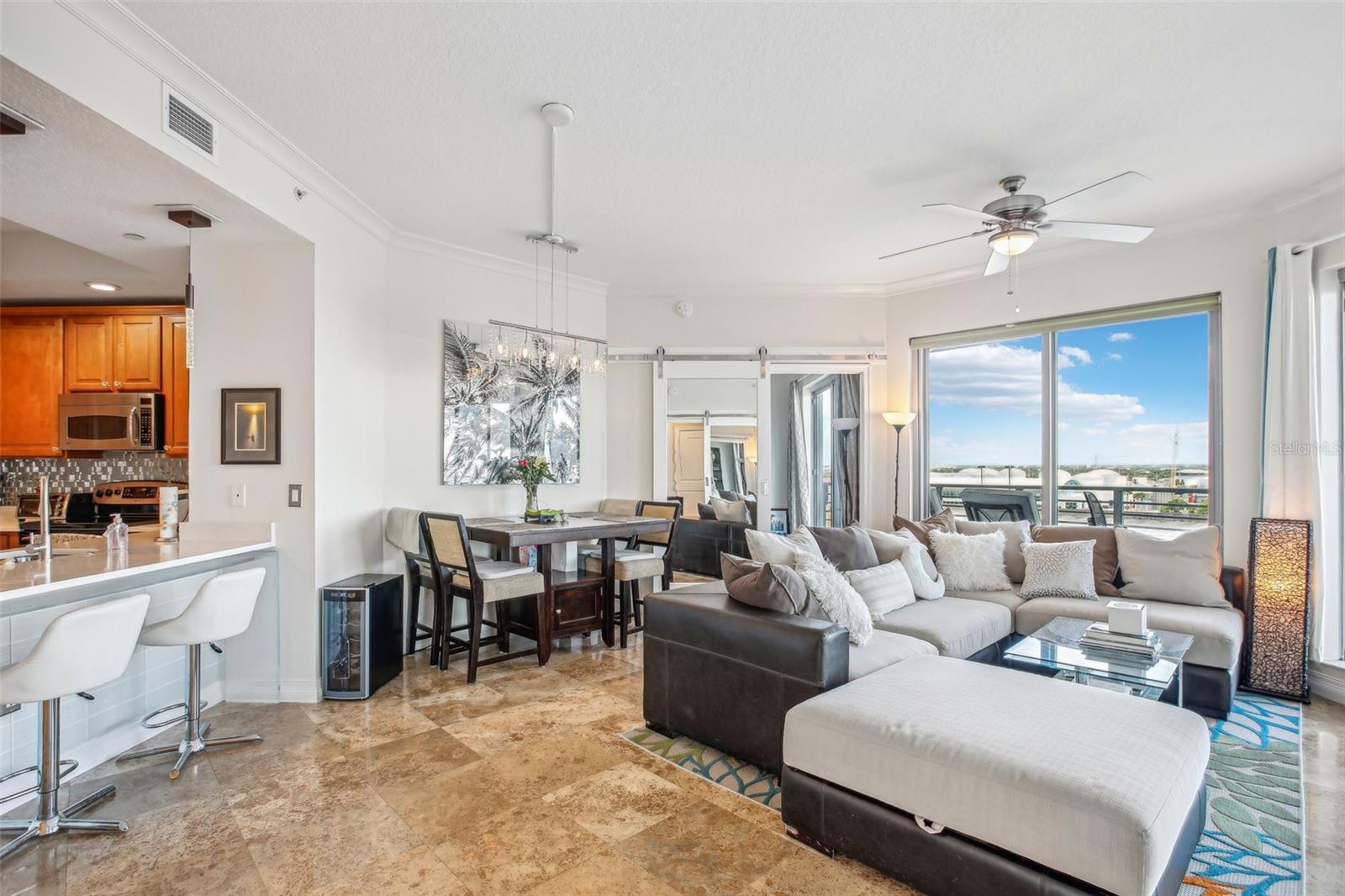 * Atualização de preço* Bem-vindo a uma mistura cativante de sofisticação e conforto nesta impressionante residência de 2 quartos e 2,5 banheiros nas torres de Channelside. Aninhado no coração de um dos principais arranha-céus de Tampa, esta elegante casa oferece vistas sem paralelo de água e cruzeiro, garantindo um assento na primeira fila para as vistas de tirar o nascer do sol sobre o canal. Após a entrada, você será recebido pela beleza atemporal dos pisos de travertino e molduras requintadas da coroa que acentuam o espaçoso layout aberto. Os controles deslizantes do chão ao teto se conectam perfeitamente à vida interna e externa, permitindo que você aprecie completamente as vistas panorâmicas e a atividade vibrante da orla da sua varanda coberta de 36x12. A combinação de sala de estar/jantar fornece um espaço aberto com vistas de todos os ângulos com um cenário de azulejos para o ambiente final. Ambos os quartos apresentam banheiros luxuosos em suíte, portas de chuveiro de vidro sem moldura, pisos laminados à base de madeira por Aqua Guard e generosos armários, fornecendo um retiro privado para o relaxamento final. Amoltante da água incluído na lavanderia. A cozinha gourmet é o sonho de um chef, com utensílios de aço inoxidável, bancadas elegantes de quartzo, armários de 42 polegadas e um backsplash decorativo de vidro com rejunte de diamante que complementa perfeitamente os botões de gabinete de vidro e portas de close macio. Uma conveniente área de assentos de barra de bar convida a refeições e entretenimento casuais. Saia para a varanda travertina de enormes enormes, onde as vistas expansivas dos navios e da água criam um cenário ideal para o prazer ao ar livre. Com dois lugares de estacionamento dedicados no 4º andar da garagem e uma unidade de armazenamento controlada pelo clima, a conveniência está ao seu alcance. As torres do Channelside oferecem uma variedade excepcional de comodidades, incluindo uma piscina em estilo resort com spa e cachoeira, uma sala de clube bem equipada e áreas comuns lindamente projetadas, como 2 parques de cães, estações de grelhar e um deck sol. Os moradores também se beneficiam da segurança da guarda de 24 horas, do serviço de concierge e do gerenciamento no local para um estilo de vida verdadeiramente luxuoso. Localizado a poucos minutos da Bayshore Blvd, Sparkman Wharf, Amalie Arena, Water Street, Riverwalk de Tampa, Tampa's Cruise Terminals e o aquário da Flórida, você se encontrará no meio da vibrante cena cultural e entretenimento de Tampa. Essa localização privilegiada garante que toda conveniência e atração seja de fácil acesso. Experimente o auge de arranha-céus-Escoque sua turnê privada hoje e descubra sua nova casa no The Towers of Channelside. ** Não há necessidade de se preocupar com as avaliações, pois elas foram pagas integralmente pelo vendedor. Sem inundação ou danos causados por furacões, alto e seco! **