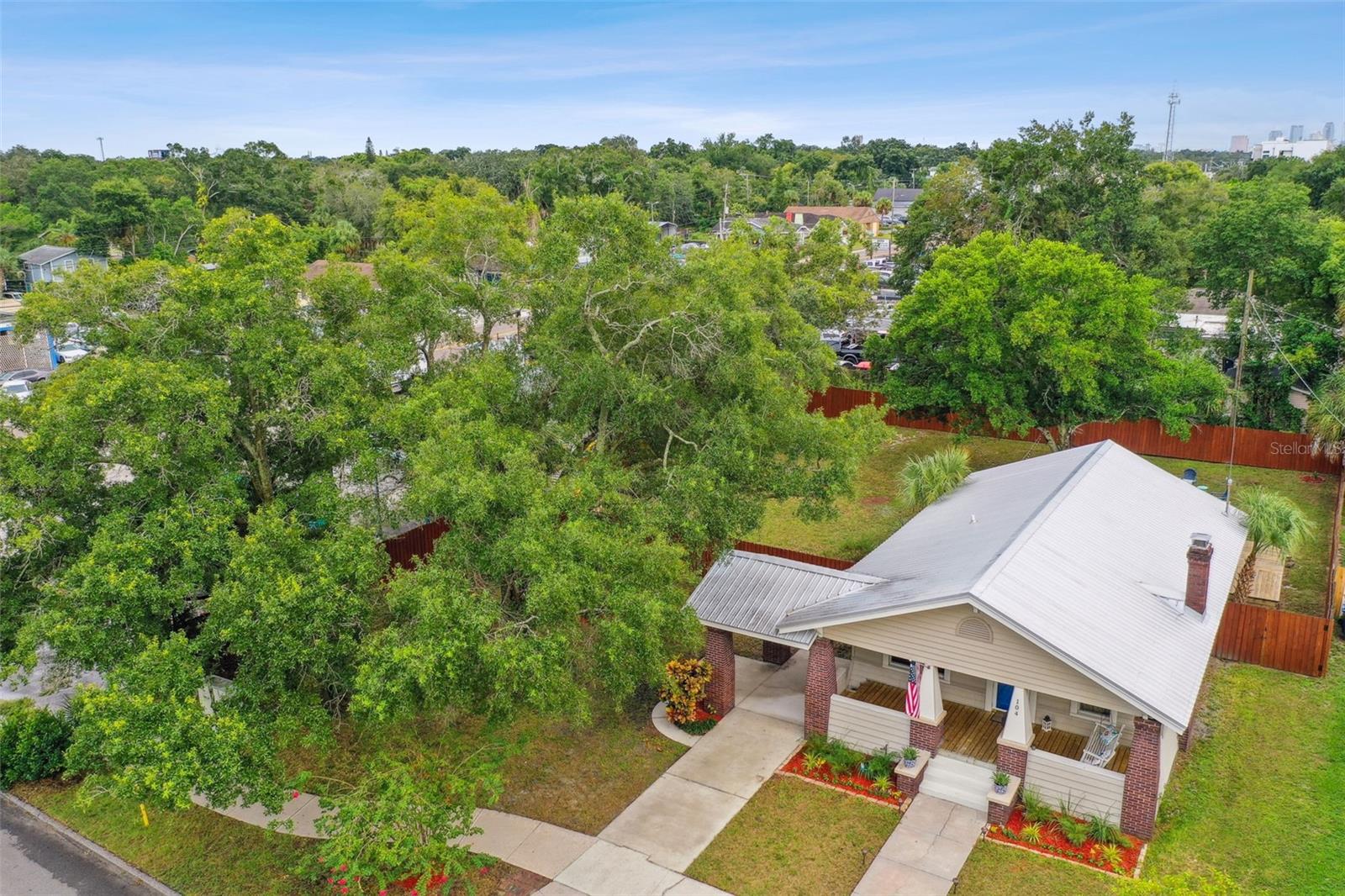 Experimente o charme deste bangalô lindamente renovado no coração de Old Seminole Heights, situado em um raro lote de grandes dimensões de 94 x 134 pés quadrados! Esta casa convidativa possui 2 quartos, 2 banheiros completos e uma espaçosa suíte master com closet e banheiro luxuoso. A versátil lavanderia, localizada ao lado da cozinha, oferece potencial para home office ou pequena sala. A cozinha é o sonho de qualquer chef, com bancadas de quartzo, eletrodomésticos de aço inoxidável, fogão a gás e armários até o teto. A área de estar de conceito aberto é adornada com piso original de madeira de pinho e uma aconchegante lareira a lenha, adicionando calor e personalidade. As atualizações modernas incluem um telhado de metal (2020), aquecedor de água a gás sem tanque (2020) e uma unidade AC (2016). Uma cerca e um deck de madeira mais novos completam o espaço ao ar livre, tornando-o perfeito para relaxar ou se divertir. Situada na comunidade acessível a pé de Seminole Heights, esta casa oferece um estilo de vida vibrante, onde tudo fica a poucos passos de distância. Com toda a área abrangendo apenas alguns quilômetros quadrados, você encontrará parques, lojas e restaurantes de primeira linha convenientemente localizados ao longo da Florida Avenue. Faça uma caminhada tranquila até o Seminole Garden Center, na Avenida Central, para apreciar a natureza e explorar o edifício histórico que contribui para o caráter rico do bairro. Esta casa combina perfeitamente conforto, conveniência e o charme de uma comunidade unida.