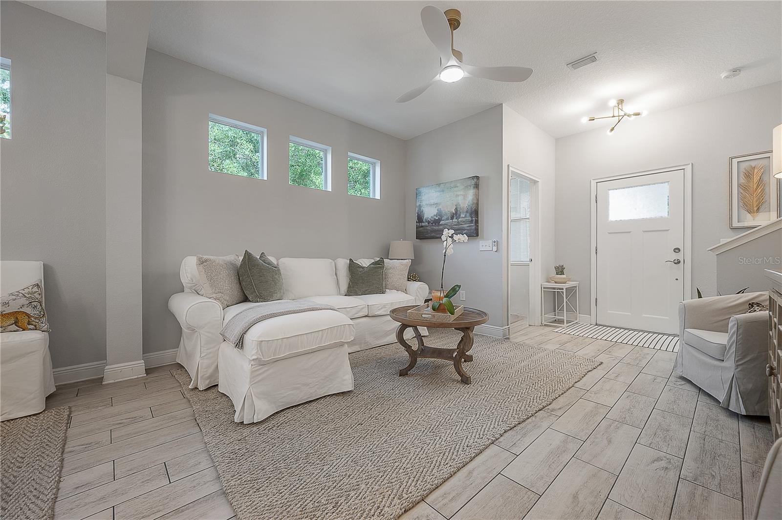 Convenientemente localizada no coração de Tampa, esta maravilhosa casa Craftsman 2018, construída pela Domain Homes, oferece uma vida moderna em uma localização privilegiada. Esta casa não está em uma inundação zona, portanto, nenhum seguro contra inundações é necessário. O modelo "Dunlin" está situado a poucos passos da próxima fase do projeto West Riverwalk da cidade, proporcionando fácil acesso a centro de Tampa e o pitoresco rio Hillsborough. Assim como o próximo projeto de desenvolvimento da cidade, Rome Yards… um bairro de uso misto de habitação, varejo, micro espaço para startups locais e centro de formação de mão de obra, além de anfiteatro, amplo gramado e outras comodidades que definem um estilo de vida urbano. O convidativo grande coberto a varanda frontal dá o tom para o interior espaçoso, com tetos de 9' 4" por toda parte. A suíte principal no andar de baixo inclui um banheiro privativo com chuveiro separado e banheira, pia dupla e um grande closet. A cozinha moderna possui bancadas de pedra, armários de bordo de 42", eletrodomésticos de aço inoxidável e uma barra de café da manhã. Recentemente luminárias atualizadas e ventiladores de teto melhoram o charme da casa. A varanda coberta e o quintal cercado proporcionam um espaço perfeito para entretenimento ao ar livre, completo com sistema de irrigação. No andar de cima, uma área de loft adicional oferece espaço adicional, além de uma lavanderia conveniente. Um relatório de inspeção claro de 4 pontos garante paz de espírito. A localização é imbatível, a apenas 5 minutos do centro de Tampa e da Universidade de Tampa, a 10 minutos do Hospital Geral de Tampa e do St. Hospital e a 10 minutos do Estádio Raymond James e da Arena Amalie. O Aeroporto Internacional de Tampa fica a apenas 15 minutos de distância, com acesso rápido à I-275 e I-4 a apenas 2 minutos de casa. Esta casa lindamente trabalhada combina conveniência, estilo e localização privilegiada, tornando-a uma propriedade imperdível em Tampa.