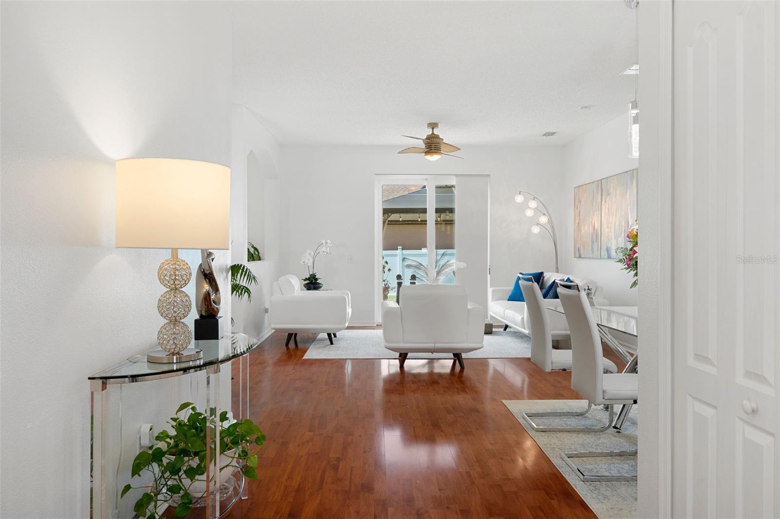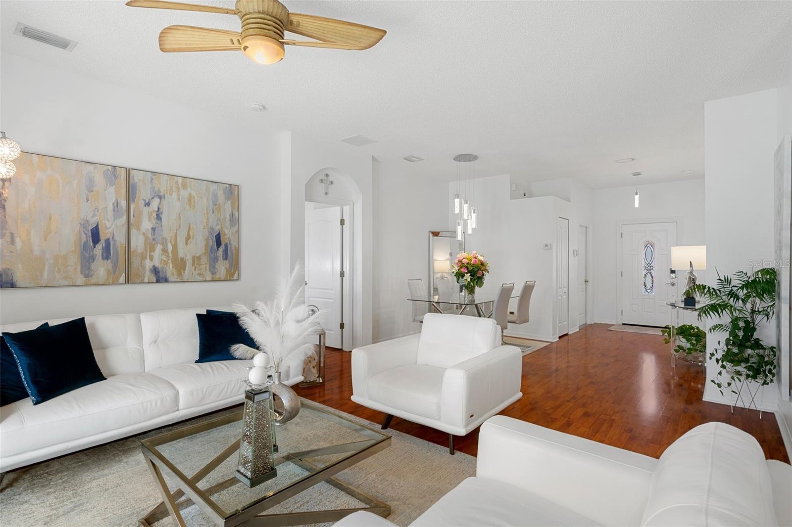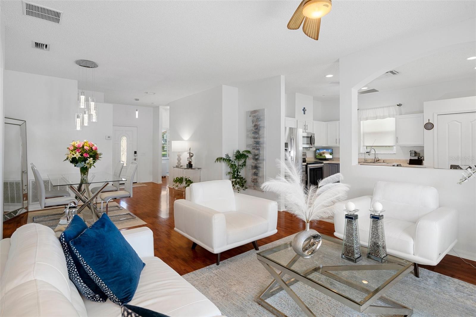 Lote de esquina! Sem CDD e baixas taxas de HOA! Lindamente conservado 3 quartos 2 banheiros no bairro procurado de Cross Creek! A cozinha inclui utensílios de inox, armários modernos, copa, despensa e piso de cerâmica. Piso laminado em todas as áreas, exceto áreas molhadas. Quarto principal com banheiro privativo que inclui bidê, banheira de jardim, chuveiro separado e closet. Novo telhado em 2020. Novas janelas anti-furacão e portas de vidro deslizantes instaladas em 2023. Os controles deslizantes levam a um pátio pavimentado de 40' x 15' com gazebo de 20' x 15'. Ótima localização perto de rodovias interestaduais e muitos restaurantes e lojas.