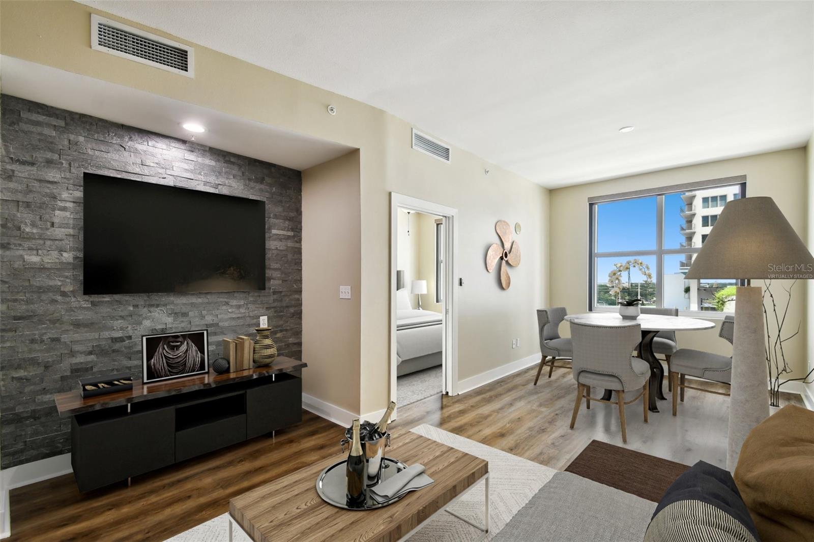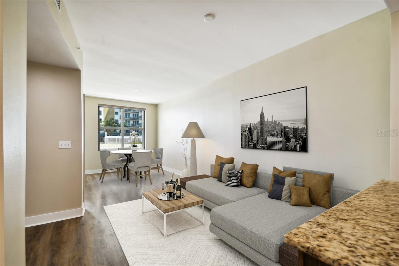 Uma ou mais fotos foram virtualmente encenadas. **Vida sofisticada na cidade no centro de Tampa - Channelside** Bem-vindo ao seu novo retiro urbano no coração do vibrante Channelside District de Tampa! Este requintado condomínio de um quarto (não um estúdio) e um banheiro oferece uma combinação excepcional de luxo moderno e conveniência em um dos locais mais desejáveis do centro de Tampa. **Destaques da residência:** Entre neste condomínio de design impecável onde a elegância contemporânea encontra o conforto. O layout de conceito aberto apresenta tetos altos de 9'4” e janelas extra grandes que inundam o espaço com luz natural e oferecem vistas deslumbrantes sobre a dinâmica paisagem urbana, com persianas controladas remotamente na sala e no quarto, permitindo que você tenha completo privacidade com o apertar de um botão. Aproveite a sofisticação elegante de uma cozinha gourmet equipada com bancadas de granito, armários de madeira elegantes e TODOS os eletrodomésticos de aço inoxidável da série Viking Professional: fogão a gás, exaustor, geladeira, lava-louças, micro-ondas e compactador de lixo. A residência também possui luxuosos pisos de vinil na cozinha e em toda a unidade, com acabamentos em azulejo no elegante banheiro contemporâneo. O espaçoso quarto oferece amplo closet e foi projetado para relaxamento e vista da cidade. O banheiro moderno e elegante tem uma penteadeira flutuante com bancada de superfície sólida e pia embutida. Os recursos adicionais incluem uma lavadora e uma secadora a gás cuidadosamente colocadas na ilha da cozinha, luminárias elegantes e um ventilador de teto com controle remoto para complementar seu estilo de vida contemporâneo. **Comodidades do edifício:** Delicie-se com as comodidades excepcionais desta luxuosa comunidade. O amplo Grand Central Courtyard de 12.000 pés quadrados é uma área de encontro vibrante, perfeita para socializar, relaxar ou tomar um coquetel enquanto assiste ao grande jogo fora de sua propriedade. Desfrute de lojas e serviços convenientes no nível da rua e fique tranquilo com amplo estacionamento em uma garagem coberta e segura, além de estacionamento para visitantes nos três primeiros andares. Relaxe e rejuvenesça nos decks da piscina ao ar livre no nono andar ou mergulhe em uma das duas piscinas ou banheiras de hidromassagem imaculadas. As áreas para grelhar ao ar livre são ideais para entreter os hóspedes, enquanto a política de animais de estimação (permitindo até três animais de estimação) e as áreas designadas para passear com animais de estimação garantem que seus amigos peludos se sintam em casa. Mantenha-se ativo com acesso a instalações de exercícios bem equipadas, pista de corrida/caminhada e áreas recreativas, ou simplesmente relaxe na sede do clube. Com acesso controlado ao edifício 24 horas por dia, câmeras de segurança e serviço de concierge 24 horas, você desfrutará de tranquilidade e conveniência de alto nível. Caixas de correio centralizadas no nível de entrada e na construção externa de concreto aumentam a praticidade e durabilidade do edifício. **Localização:** Situado no movimentado Channelside District, você está a poucos passos dos melhores restaurantes, lojas, transporte público (incluindo bonde gratuito) e entretenimento de Tampa. Experimente a conveniência de viver no centro da cidade com acesso rápido a Sparkman Wharf, Florida Aquarium, Amalie Arena, docas para navios de cruzeiro, Porto de Tampa e uma vida noturna vibrante. O varejo no andar de baixo inclui: Publix, CVS, Starbucks, Cena Restaurant, Crunch Fitness, BodyBar Pilates, Bread and Butta Pizza Bar, Massage Envy, City Dog Cantina, The Poke Company, Stageworks e muito mais. Faça deste condomínio deslumbrante a sua nova casa e mergulhe no estilo de vida sofisticado que a Grand Central tem a oferecer. Agende uma visita hoje e descubra a combinação perfeita de elegância e conveniência urbana!