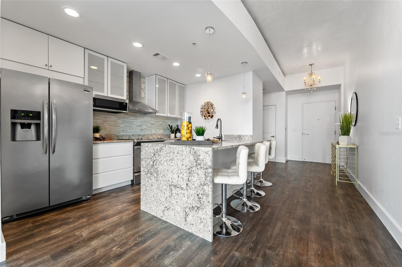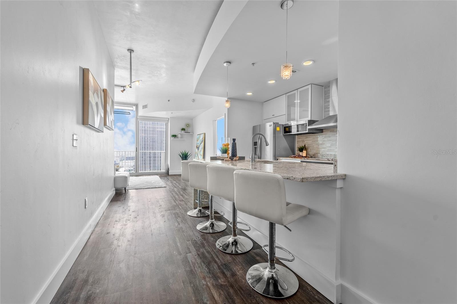 Apresentando a mais nova residência personalizada remodelada de 1 cama/1 banheiro no 23º andar do SkyPoint! Este é um verdadeiro estilo de um quarto, fechado por uma porta, destacando uma das maiores plantas projetadas no SkyPoint. Esta residência tem uma exposição ao sul para vistas máximas da água e do horizonte da cidade. Tanto o nascer como o pôr do sol podem ser apreciados a partir da varanda privada. Esta residência sofisticada, moderna e contemporânea foi projetada profissionalmente e inclui detalhes elegantes. Os recursos aprimorados incluem piso de pranchas longas CORETEC Black Oak com rodapés extra altos. A cozinha gourmet apresenta luxuosas bancadas de quartzo lunar do Himalaia com um design dramático Waterfall Edge. Armários baixos de cozinha com várias gavetas sem costura brancos. Aparelhos de aço inoxidável atualizados, incluindo exaustor. Tetos de gesso veneziano com acabamento manual, luminárias LED e um sistema de armários personalizado foram ampliados para oferecer muito espaço para armazenamento. 1 Lugar de Estacionamento incluído. SkyPoint oferece um estilo de vida de resort com concierge 24 horas, academia com sala de cardio, sala de musculação separada, sala de clube, sala de teatro e mesa de bilhar. Aproveite a piscina tropical, spa, bar molhado, churrasqueiras a gás e terraço com jardim. Aproveite a conveniência de ter quatro restaurantes elegantes no piso térreo do edifício. Perto de Riverwalk, Parques, Museus, Centro de Artes Cênicas, Biblioteca e Teatro Tampa, Channel District, Ybor City, Water Street, Hyde Park, Soho e Bayshore. Esta residência é requintada!