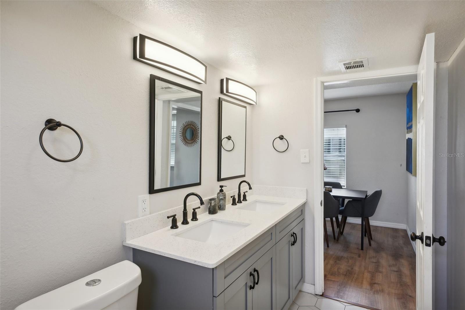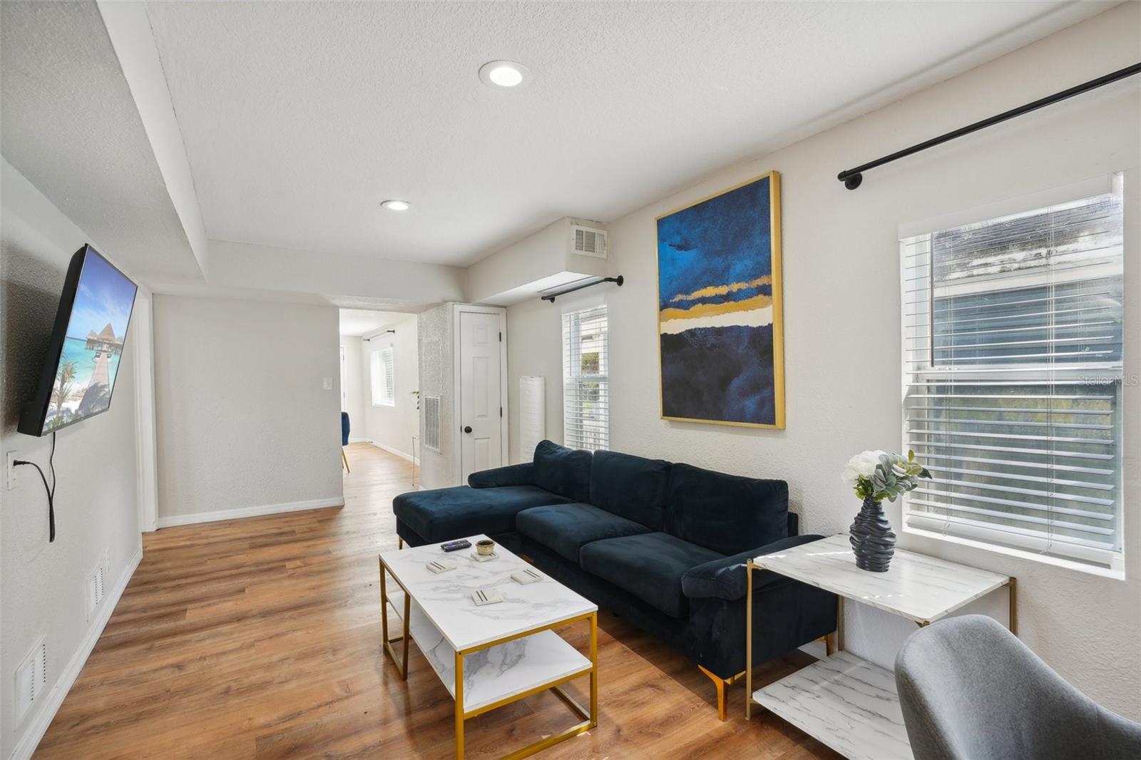 Entre nesta casa de fazenda histórica, lindamente renovada e totalmente mobiliada, com 3 quartos e 2 banheiros em Tampa, onde o design moderno encontra o conforto do dia a dia. Ao entrar, você é recebido por um elegante piso laminado de madeira que flui perfeitamente por todo o layout aberto e convidativo. A elegante cozinha em estilo galera é uma delícia culinária, com eletrodomésticos de aço inoxidável e um elegante backsplash de azulejos. A conveniência é fundamental, com lavadora e secadora incluídas. Retire-se para a suíte principal, onde você encontrará um banheiro privativo com pia dupla e combinação de chuveiro/banheira, oferecendo uma experiência serena de spa. Situado perto da desejável área de Seminole Heights/Ybor, você está a poucos minutos dos vibrantes restaurantes, cafés e salões da histórica Ybor City, além de fácil acesso à Highway 275, Downtown Tampa, Channel District e Water Street. Esta casa é a combinação perfeita de estilo moderno e localização privilegiada, apresentando-se como uma casa modelo.