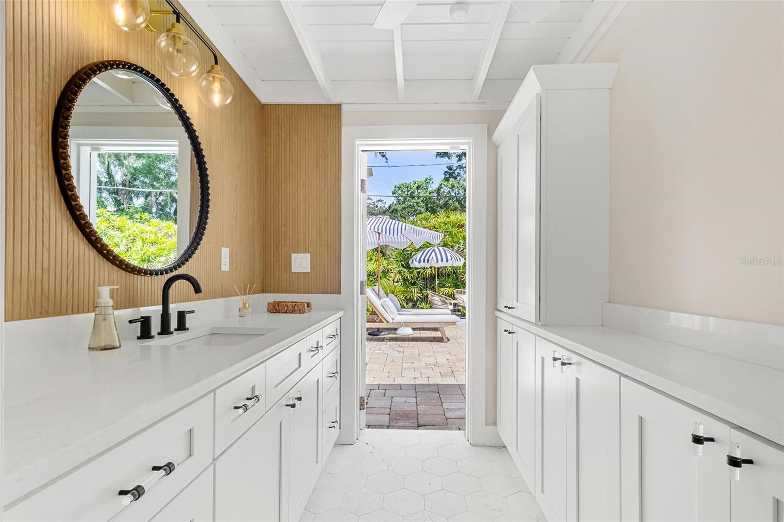 Portas francesas, sistema de irrigação, cozinha externa, calçada