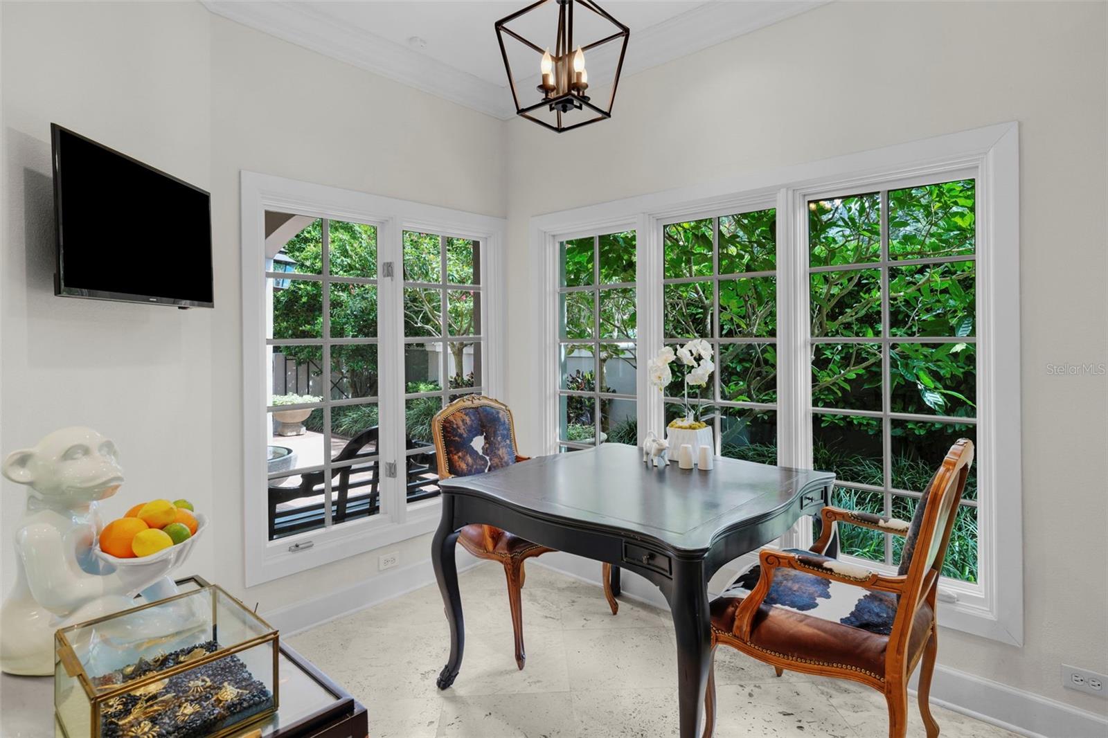 Bem-vindo ao Adeste - um enclave fechado exclusivo de 17 unidades em South Tampa, situado Avenida Bayshore. no coração do bairro Ballast Point. Dentro da Adeste existe uma unidade final de moradia geminada que realmente vive como uma casa unifamiliar, com garagem para dois carros, entrada lateral fechada e quintal lateral com bom gosto. Com quatro quartos espaçosos, três banheiros completos, dois níveis e quase 2.900 pés quadrados de espaço interno, esta casa foi imaculadamente mantido e está realmente pronto para morar, mesmo para os mais comprador exigente. Ao entrar na casa, encontrará um hall de entrada com um quarto adjacente com casa de banho privativa casa de banho que poderá ser usada como escritório ou arrumos. Além do hall de entrada há um grande e verdadeiramente impressionante sala com pé direito duplo para muita luz natural. Os espaços de estar e jantar são combinados para uma planta aberta com uma lareira a gás servindo como um ponto focal impressionante. A grande sala se abre em toda a largura através de portas francesas para um pátio privativo nos fundos. com piscina/spa e recurso aquático que proporcionam um oásis Zen perfeito para divertido. Lá dentro, no térreo, há um bar personalizado com pia, máquina de fazer gelo, e adega refrigerada que complementam ainda mais o ambiente de convívio da casa. Ao redor do canto é a cozinha de um chef que inclui todos os eletrodomésticos Miele e Sub-Zero, um restaurante área, cafeteira embutida e uma combinação de micro-ondas/forno de convecção. Lá embaixo apresenta ainda piso de travertino italiano, sancas, mármore bancadas e um sistema de alto-falantes embutido. Subindo a grande escadaria você entrará em um espaçoso loft iluminado por duas clarabóias ensolaradas e é atualmente usado como escritório informal, mas também pode servir como área de estar ou sala de mídia espaço. O quarto principal com entrada de porta dupla fica fora do loft e possui móveis franceses portas que se abrem para uma varanda com vista para o pátio dos fundos. As características do quarto principal dois closets embutidos e um bar matinal com cafeteira embutida, geladeira pequena e armários personalizados. O banheiro principal tipo spa inclui armários personalizados, mármore bancadas, chuveiro grande e banheira de hidromassagem no jardim. Também no segundo andar, você encontre dois quartos adicionais, um banheiro no corredor (suite de um dos quartos) e lavanderia com muitos armários embutidos. Para maior segurança, a casa está equipada com sistema de segurança, câmeras externas e persianas elétricas contra furacões para cobrir todas as portas francesas quando necessário. Esta residência imaculada foi cuidadosamente curada e mantida impecavelmente e é conveniente para tudo o que Tampa tem a oferecer. Divirta-se saindo pela porta da frente e dando passos de Bayshore Blvd., parque à beira-mar Ballast Point, Tampa Yacht & Country Club e a uma curta distância de carro do centro de Tampa, Hyde Park Village, Aeroporto Internacional de Tampa, o distrito comercial de Westshore e São Petersburgo!