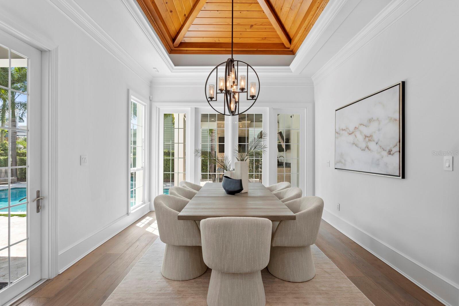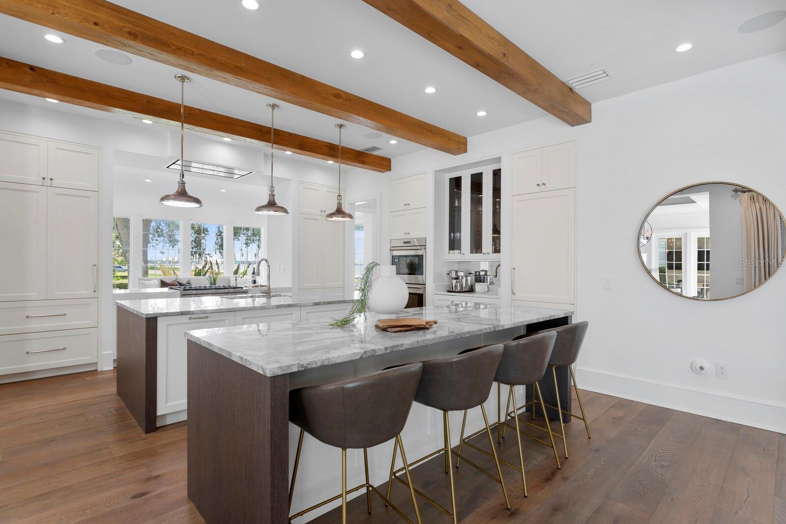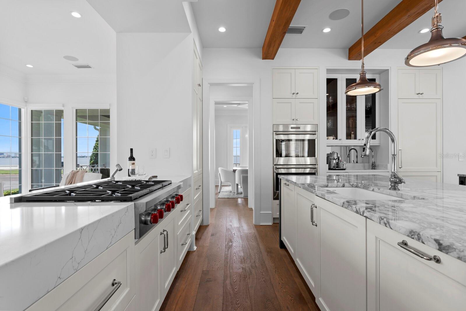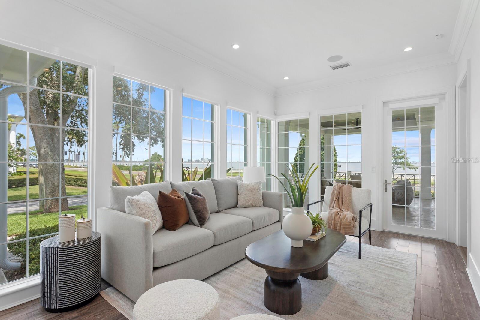 Casa absolutamente deslumbrante na pitoresca Bayshore Boulevard, situada em um enorme terreno de esquina de 105x120. Esta imponente casa foi magistralmente redesenhada por Thomas Everett Lamb - cada centímetro planejado com perfeição! As espaçosas varandas frontais expandem toda a extensão da casa com uma moderna varanda envolvente que inclui uma área de estar "gazebo" que captura todas as vistas deslumbrantes da água e do cartão postal do centro de Tampa. Não faltam detalhes requintados, notáveis na extensa marcenaria, nos tetos em caixotões, nas estantes de livros, nas vigas de madeira manchada, na lareira de pedra empilhada, nas luminárias exclusivas, nas cortinas personalizadas e assim por diante! Você terá dificuldade em escolher seu quarto favorito, pois cada um tem sua personalidade e charme. A serena e tranquila suíte master do primeiro andar tem vista para o mar e inclui um banheiro master que é um empecilho absoluto com piso de mármore polido, alcova com banheira de jardim e teto surpresa. A ampla sala de estar frontal tem lareira de pedra e estantes embutidas e do lado oposto fica a sala de jantar que tem uma garrafeira personalizada e vários conjuntos de portas francesas. A marquise iluminada e iluminada fica ao lado da cozinha, tem vista para o quintal lateral e dá acesso direto à varanda. A sala familiar se abre para a grande cozinha gourmet com ilhas duplas com tampo de mármore de grandes dimensões, armários personalizados e eletrodomésticos de última geração, incluindo fogão a gás Wolf com exaustor elegante, fornos duplos Wolf, geladeira Subzero e despensa. Subindo a escadaria principal há 3 quartos adicionais, uma área de estar, uma grande lavanderia, e você não vai querer perder a varanda na cobertura com vista direta para o horizonte do centro de Tampa, que é fabuloso à noite! Há uma escada traseira adicional que leva ao 5º quarto com banheiro privativo, que é extra privativo para os hóspedes, um quarto de babá ou uma sala de bônus/entretenimento. A deslumbrante área da piscina tem um paisagismo exuberante, deck de azulejos de travertino, banheira de piscina externa separada e foi projetada com vários locais para entreter enquanto janta, toma sol, grelha e relaxa junto à lareira externa da casa! Inundada de luz natural, acolhedora e convidativa, esta casa é uma combinação deslumbrante de texturas orgânicas e toques modernos únicos!