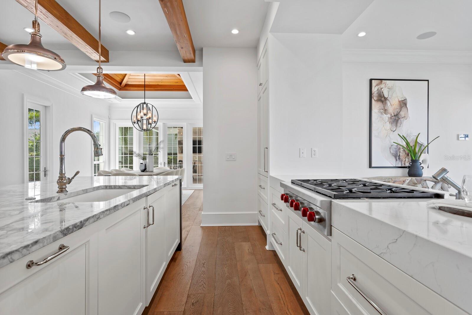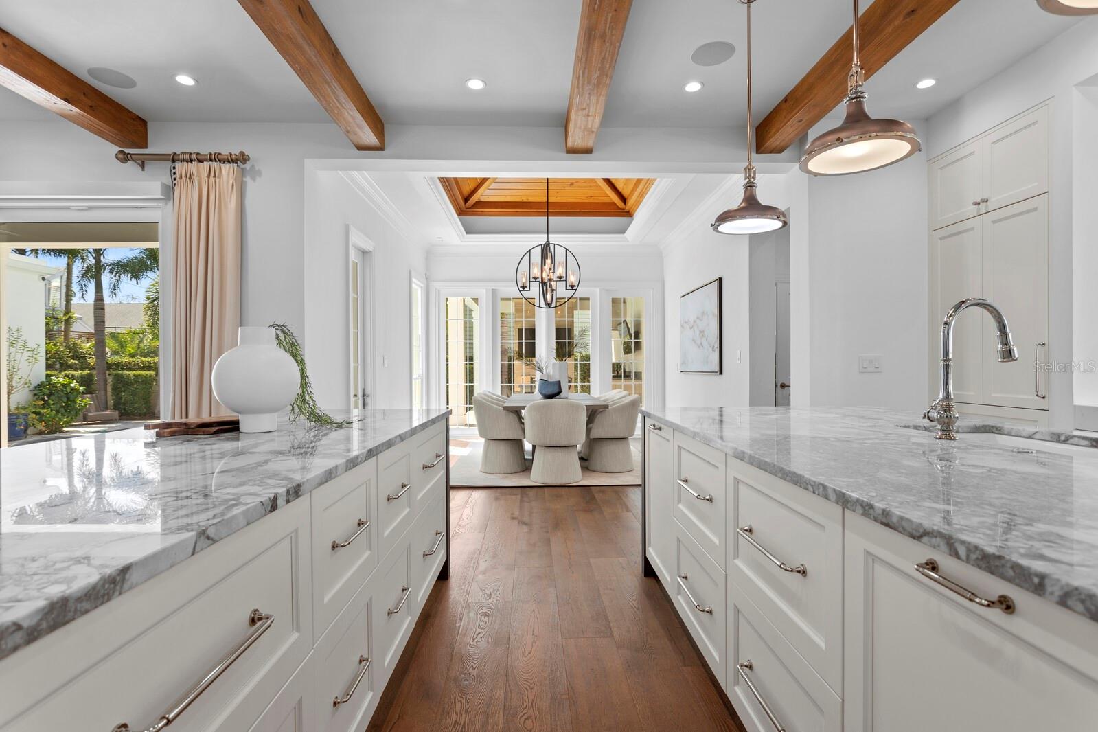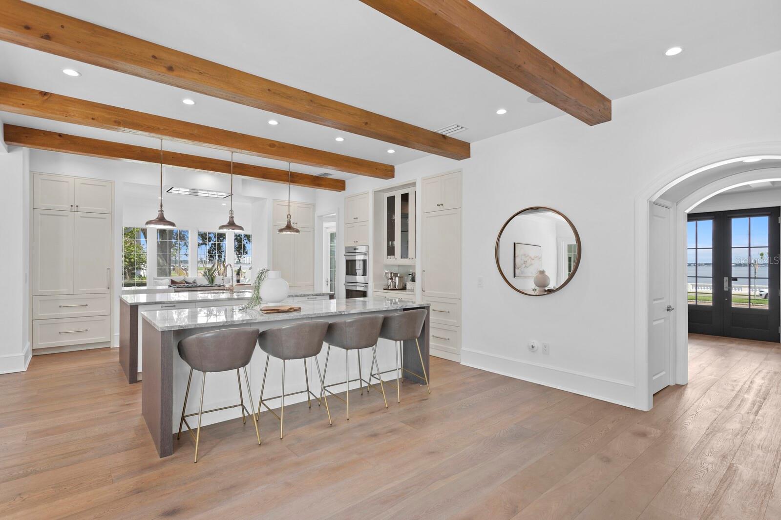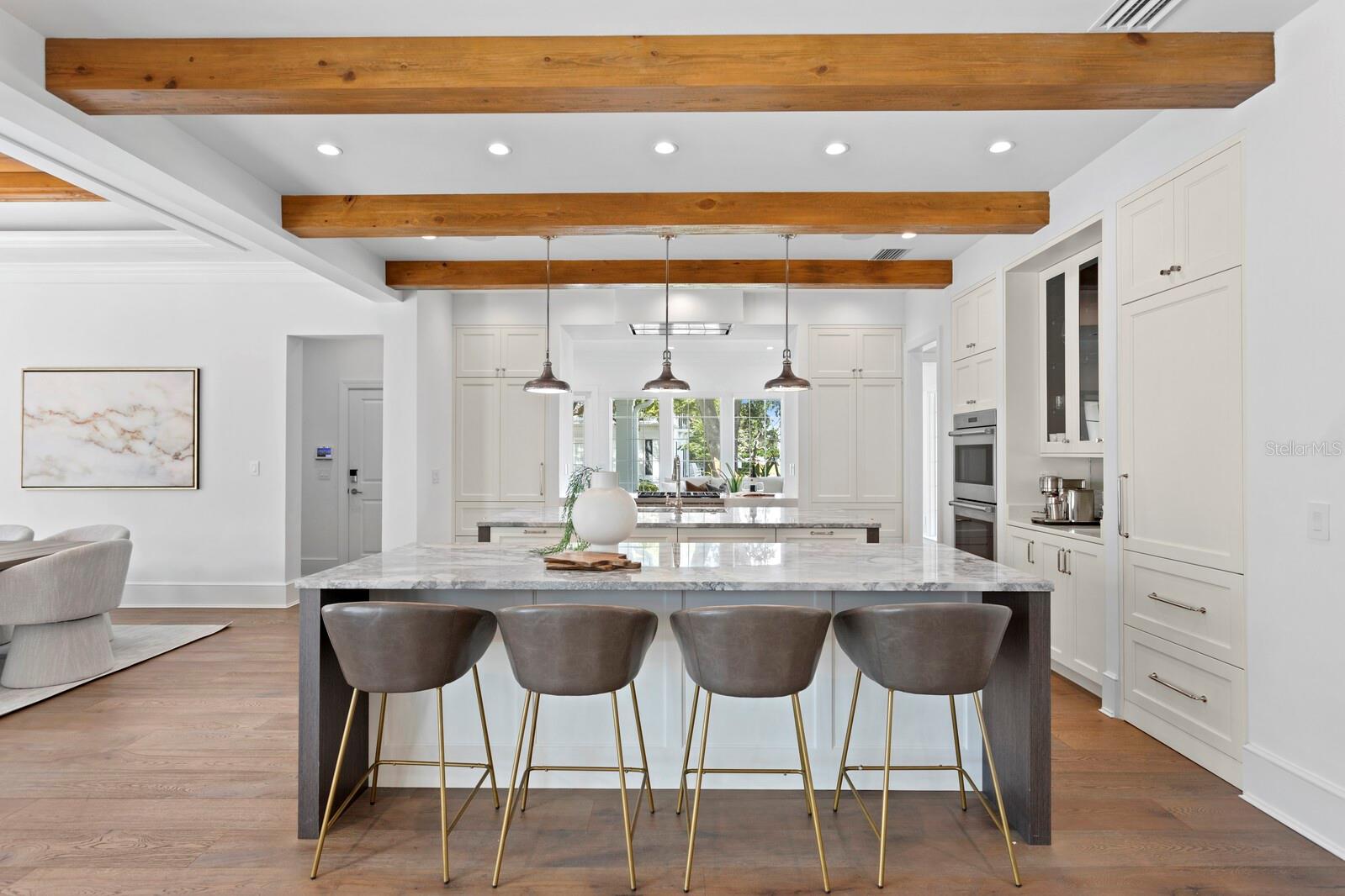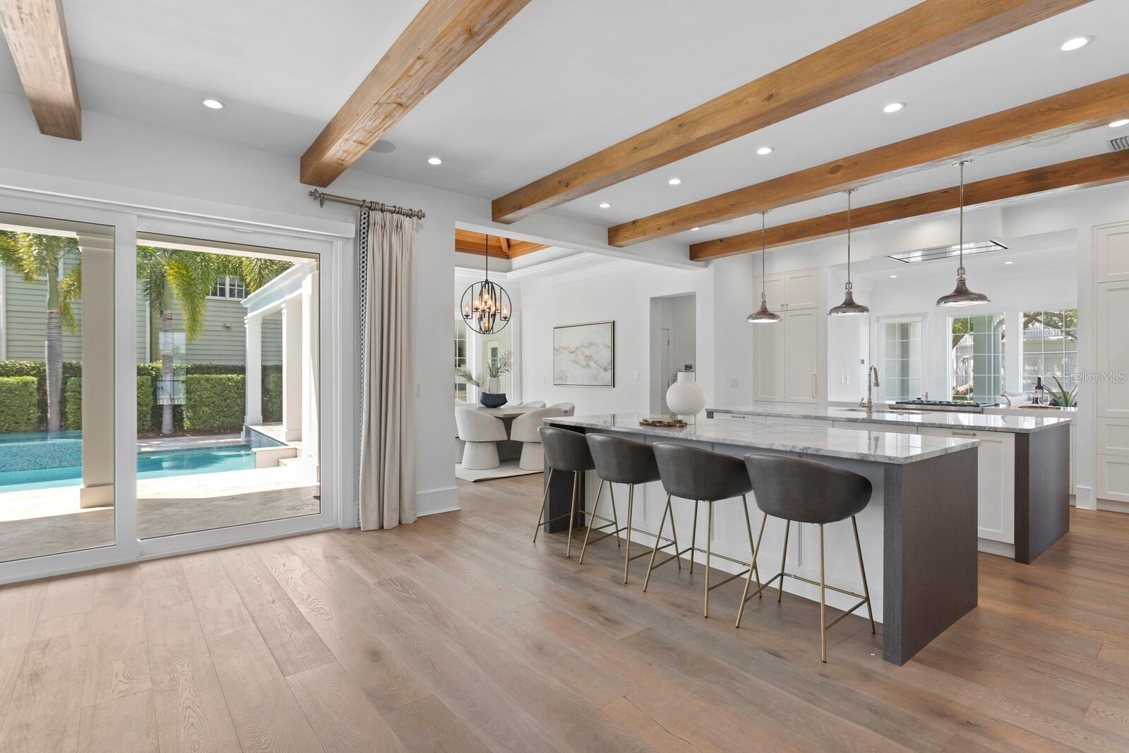 Casa absolutamente deslumbrante na pitoresca Bayshore Boulevard, situada em um enorme terreno de esquina de 105x120. Esta imponente casa foi magistralmente redesenhada por Thomas Everett Lamb - cada centímetro planejado com perfeição! As espaçosas varandas frontais expandem toda a extensão da casa com uma moderna varanda envolvente que inclui uma área de estar "gazebo" que captura todas as vistas deslumbrantes da água e do cartão postal do centro de Tampa. Não faltam detalhes requintados, notáveis na extensa marcenaria, nos tetos em caixotões, nas estantes de livros, nas vigas de madeira manchada, na lareira de pedra empilhada, nas luminárias exclusivas, nas cortinas personalizadas e assim por diante! Você terá dificuldade em escolher seu quarto favorito, pois cada um tem sua personalidade e charme. A serena e tranquila suíte master do primeiro andar tem vista para o mar e inclui um banheiro master que é um empecilho absoluto com piso de mármore polido, alcova com banheira de jardim e teto surpresa. A ampla sala de estar frontal tem lareira de pedra e estantes embutidas e do lado oposto fica a sala de jantar que tem uma garrafeira personalizada e vários conjuntos de portas francesas. A marquise iluminada e iluminada fica ao lado da cozinha, tem vista para o quintal lateral e dá acesso direto à varanda. A sala familiar se abre para a grande cozinha gourmet com ilhas duplas com tampo de mármore de grandes dimensões, armários personalizados e eletrodomésticos de última geração, incluindo fogão a gás Wolf com exaustor elegante, fornos duplos Wolf, geladeira Subzero e despensa. Subindo a escadaria principal há 3 quartos adicionais, uma área de estar, uma grande lavanderia, e você não vai querer perder a varanda na cobertura com vista direta para o horizonte do centro de Tampa, que é fabuloso à noite! Há uma escada traseira adicional que leva ao 5º quarto com banheiro privativo, que é extra privativo para os hóspedes, um quarto de babá ou uma sala de bônus/entretenimento. A deslumbrante área da piscina tem um paisagismo exuberante, deck de azulejos de travertino, banheira de piscina externa separada e foi projetada com vários locais para entreter enquanto janta, toma sol, grelha e relaxa junto à lareira externa da casa! Inundada de luz natural, acolhedora e convidativa, esta casa é uma combinação deslumbrante de texturas orgânicas e toques modernos únicos!