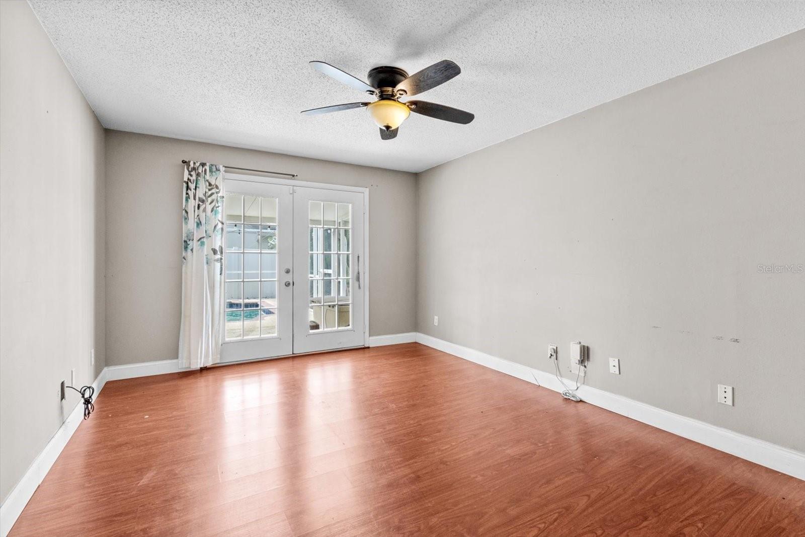 Pátio, portas francesas, iluminação