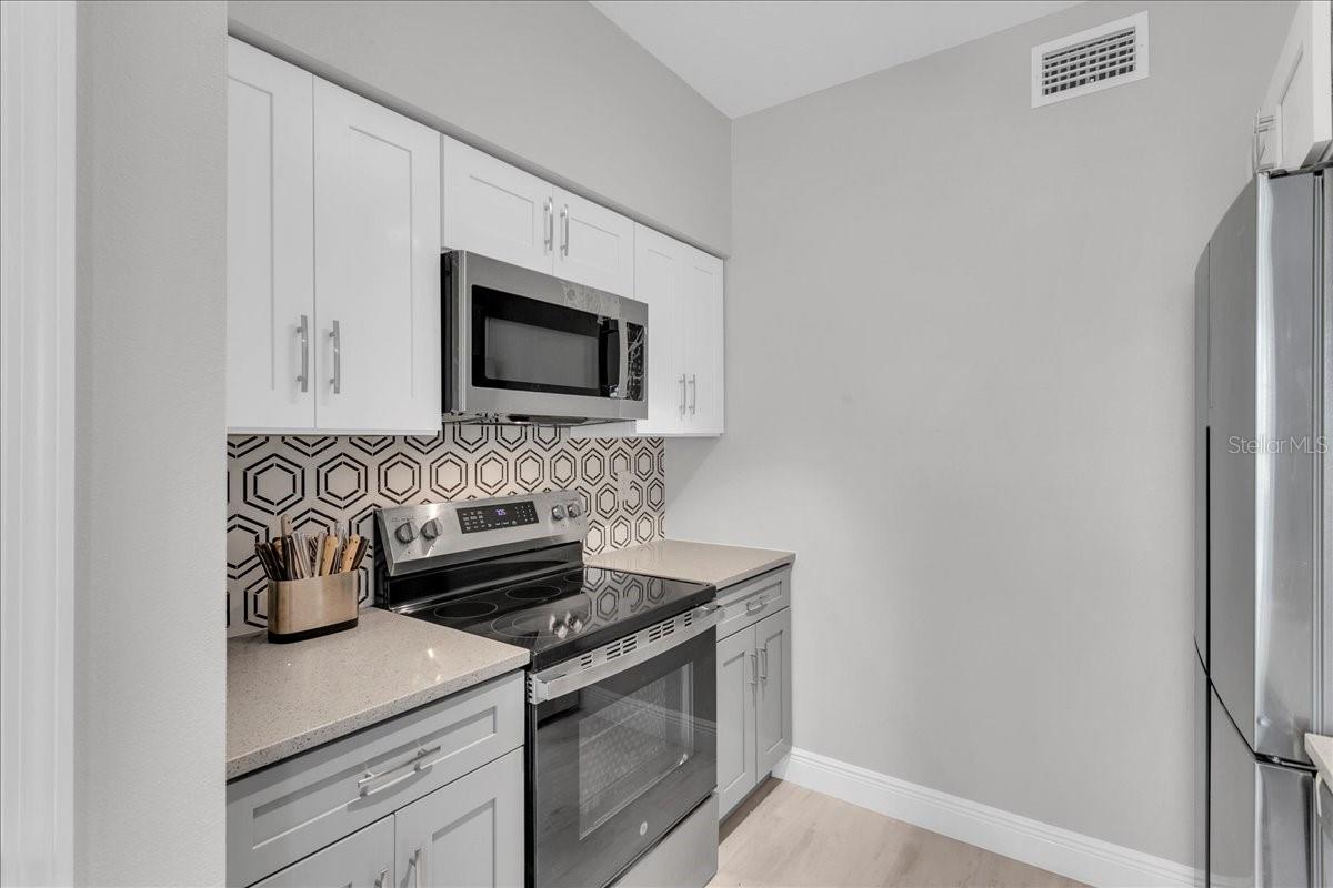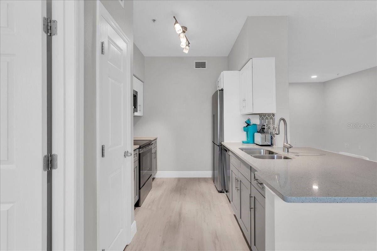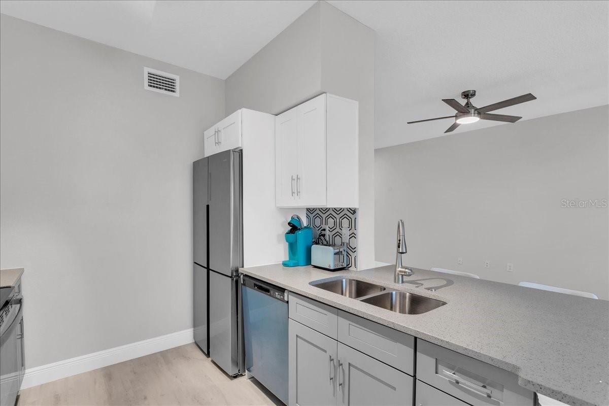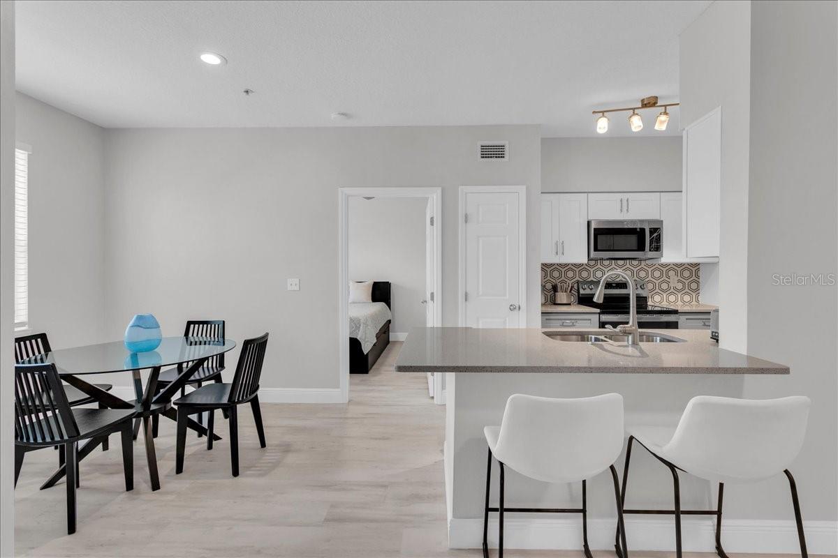 Este condomínio de 1 quarto no terceiro andar lindamente reformado no The Quarter at Ybor oferece uma vida moderna com atualizações elegantes. A espaçosa planta aberta apresenta novo piso laminado e pintura fresca por toda parte. A ampla sala de estar (13' x 21'9") inclui grandes janelas com vista para a varanda, uma estante embutida e uma barra de café da manhã que se conecta à cozinha totalmente nova. A cozinha apresenta armários cinza pomba, bancadas de quartzo , backsplash em mosaico de mármore e eletrodomésticos totalmente novos em aço inoxidável, incluindo fogão, micro-ondas, lava-louças e geladeira. Adjacente à cozinha, a sala de jantar possui uma grande janela e acesso direto à varanda, tornando-a perfeita para entretenimento. A suíte principal possui um quarto bem iluminado com piso laminado e um enorme closet. O banheiro privativo recém-renovado inclui um box amplo, pia dupla com espelhos de LED e um conveniente armário de lavanderia grande. O Quarter at Ybor oferece uma série de comodidades, incluindo um estacionamento fechado e seguro, escritório de gerenciamento no local, sala de leitura, academia e uma sala de clube com cozinha de catering. Os moradores podem relaxar na piscina e na banheira de hidromassagem, desfrutando de uma atmosfera comunitária vibrante. Localizado na histórica cidade de Ybor, você encontrará uma variedade de restaurantes, bares, casas noturnas e opções de compras a uma curta caminhada. O condomínio também está centralmente situado, adjacente ao centro de Tampa e ao Channel District, tornando-o um local perfeito para quem procura entretenimento e conveniência. Aproveite o melhor da vida urbana num cenário histórico encantador!
