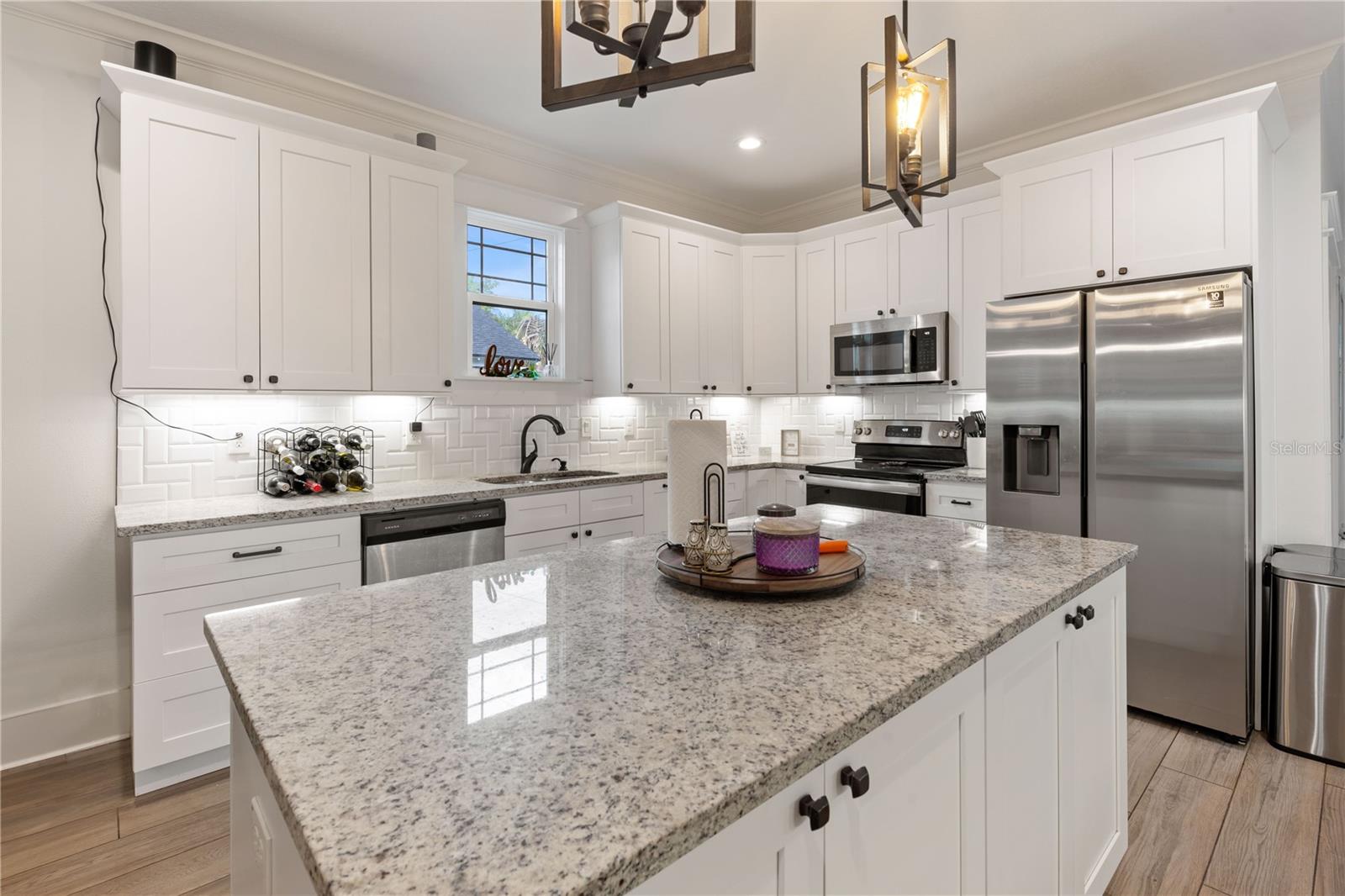 Fabulosa casa estilo bangalô unifamiliar na altamente desejável área de Seminole Heights, em Tampa! Esta casa foi construída em 2021 e tem 3 quartos, 2 casas de banho completas e garagem! Detalhes personalizados e artesanato de alta qualidade são abundantes em toda esta propriedade construída pela Vikin. Esta casa nostálgica oferece o calor e o conforto de uma época passada, mas construída com tecnologia e construção modernas. Aproveite a convidativa varanda frontal que foi aprimorada com um lindo teto de madeira Tongue and Groove. Uma vez lá dentro, você será recebido com uma planta aberta e arejada, com muita luz natural e cores neutras. Detalhes personalizados em toda parte, incluindo sancas, janelas/portas com acabamento em madeira de 5 peças e ladrilhos cerâmicos de tábuas de madeira. Janelas isoladas contra impacto de furacão foram adicionadas para sua segurança e proteção. As janelas qualificadas pela Energy Star economizarão dinheiro no seguro residencial. A grande sala combina a sala de estar/jantar e a cozinha. A ampla cozinha é o coração da casa e possui armários de madeira, bancadas de granito, eletrodomésticos de aço inoxidável, backsplash de azulejos de designer, iluminação suspensa e uma enorme ilha central. Perfeita para entretenimento, a ilha de cozinha é espaçosa o suficiente para que os hóspedes possam conviver sem atrapalhar o chef. O quarto principal tem uma grande casa de banho privativa e 2 closets e bancadas em granito. Acessórios atualizados e azulejos de design nostálgico adornam o banheiro. Nos fundos da casa, atrás da cozinha fica a lavanderia, com bastante espaço para guardar qualquer item. O Lania traseiro é coberto e apresenta o mesmo teto com painéis de madeira para coincidir com o alpendre frontal e o teto da garagem. Com vista para o quintal que foi completamente vedado para sua privacidade e para seus amigos e familiares de 2 ou 4 patas. O revestimento exterior de cimento garante um interior tranquilo e tranquilo. Convenientemente localizado perto de restaurantes e empresas de Seminole Heights e perto de Armature Works, centro de Tampa, Hillsborough River, Ybor City, hospitais e muito mais! Esta casa foi bem cuidada e mostra orgulho pela propriedade. Este imóvel está pronto para Move In e esperando por você. Tudo que você precisa fazer é desempacotar e aproveitar! Bem-vindo ao lar!