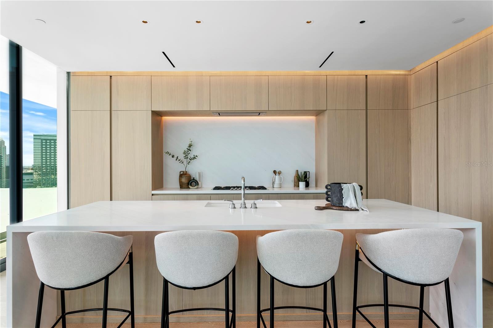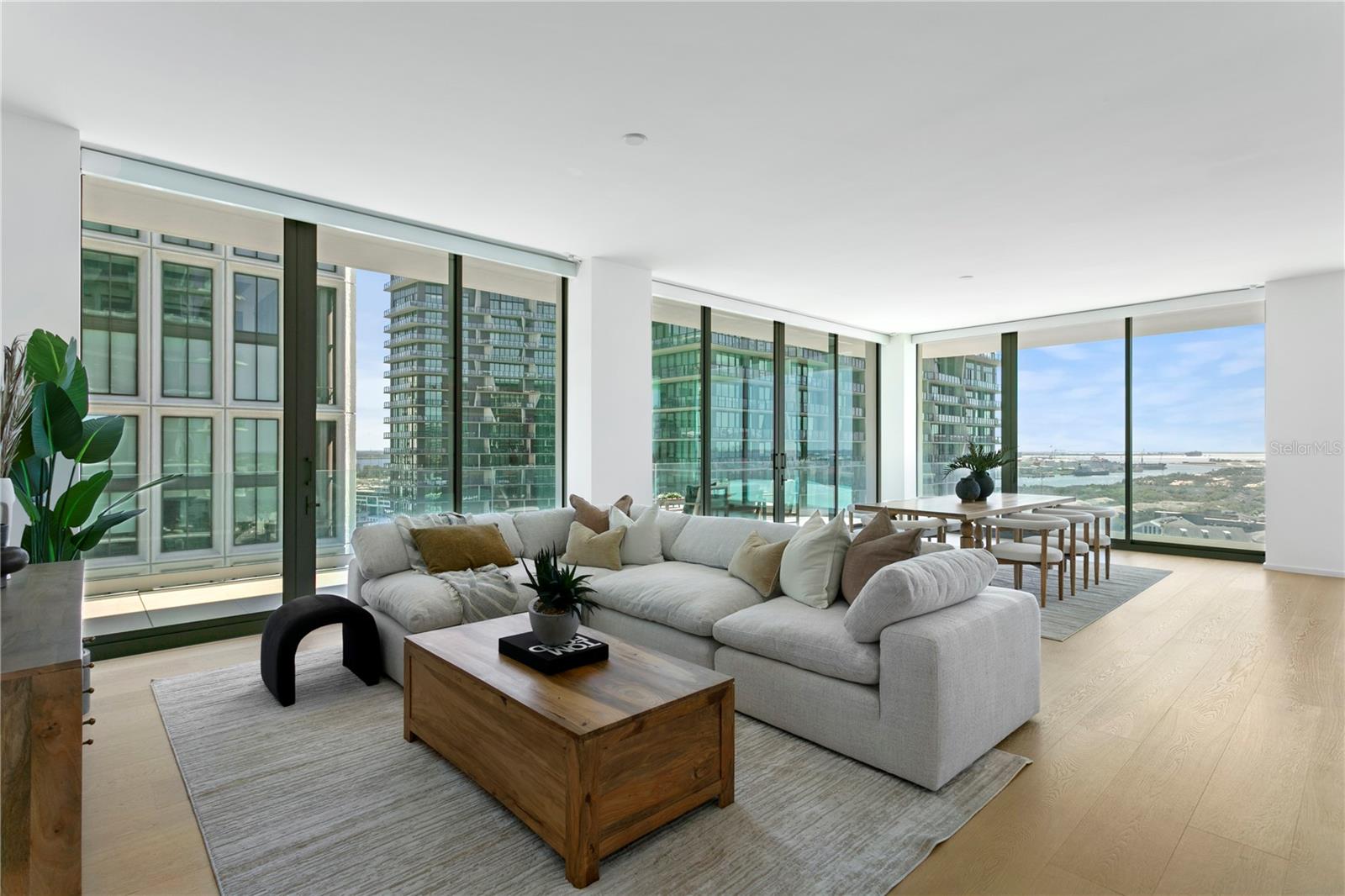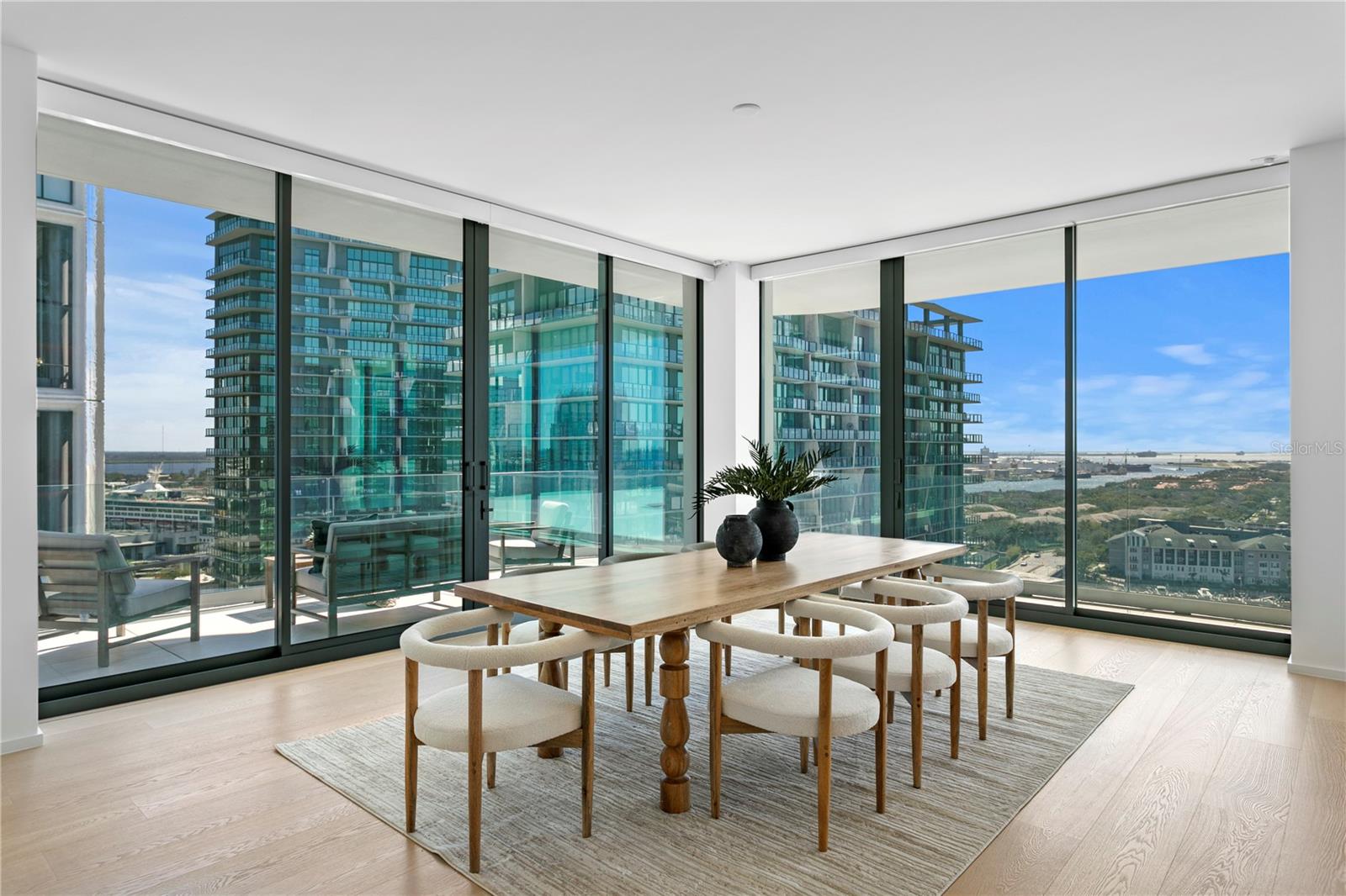 Um estilo de vida exclusivo, feito sob medida com elegância e sofisticação. Bem-vindo à sua nova e luxuosa casa, localizada no prestigiado Residences at The Tampa EDITION e perfeitamente situada no coração do renomado bairro Waterstreet, no centro de Tampa. Aproveite a conveniência e os prazeres da vida na cidade cercado por restaurantes e bares com estrelas Michelin, cafeterias, lojas e supermercados de luxo, Sparkman Wharf, parques para cães e a Amelia Arena, sede do Tampa Bay Lighting, Stanley Cup Champions. Ao entrar nesta casa meticulosamente projetada por Roman e Williams, com 3 quartos, quarto executivo e 3,5 banheiros, você será recebido por vistas panorâmicas de tirar o fôlego da cidade e do mar emolduradas por janelas do chão ao teto. Apresentando elegantes tábuas de 10" de largura, pisos de madeira de carvalho branco da Grato Portugal e acabamentos de alta qualidade perfeitos para entreter e relaxar com estilo. A cozinha oferece bancadas de mármore Polaris White, Molteni Italian Millwork e armários superiores elétricos com iluminação ambiente, eletrodomésticos de cozinha em aço inoxidável Gaggenau, incluindo um refrigerador de vinho de 52 garrafas, refrigerador de vinho, fogão a gás de 5 bocas com exaustor Miele e uma grande ilha em cascata de mármore Polaris White, tornando-o um espaço perfeito para culinária entusiastas. Relaxe com uma xícara de café ou uma taça de vinho em sua varanda envolvente de 66 pés com grades de vidro. A suíte do proprietário, com vista serena para o horizonte, oferece um guarda-roupa com armários personalizados projetados pela California Closets, banheiro privativo com pia dupla em mármore branco Polaris, chuveiro de mármore em mosaico e banheira de imersão Kaldewei independente. cada quarto possui armários personalizados da California Closets e um banheiro privativo com penteadeira de mármore Polaris White, banheira e chuveiro. Os residentes do Tampa EDITION desfrutam de serviços dedicados e personalizados, incluindo uma entrada exclusiva para residentes com serviços de manobrista, garagem residencial dedicada com vagas de estacionamento designadas, cozinha social e lounge, um gerente de estilo de vida no local, uma academia exclusiva para residentes e serviços de segurança e concierge 24 horas. restaurantes, supervisionados pelo chef com estrela Michelin, John Fraser, bares com design deslumbrante, piscina em estilo resort com serviços completos de comida e bebida, um spa tranquilo de serviço completo, áreas de estar pitorescas com folhagem exuberante e muito mais.