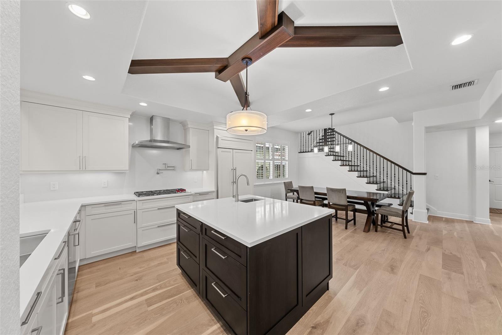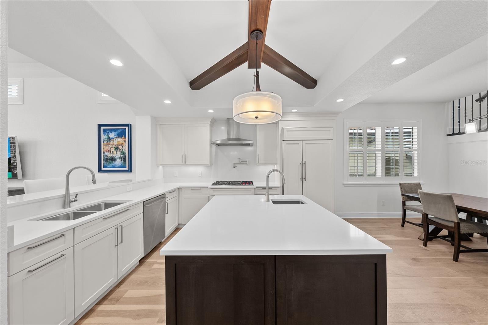 Esta bela casa unifamiliar em estilo toscano renovou recentemente cozinhas, banheiros e pisos e fica em uma excelente localização nas Ilhas Davis. Com 5 quartos, 3,5 banheiros, garagem para 3 carros e estacionamento para carrinho de golfe, esta casa possui suíte master no primeiro andar, telhado de telha, entrada pavimentada, entrada frontal com uma linda porta de mogno de 8', filtragem de água em toda a casa e amaciante de água. Ao entrar, há um hall de entrada dramático com tetos de dois andares e uma escada de carvalho maciço manchado com corrimão de ferro. No primeiro andar, encontra-se uma enorme sala de jantar com lareira a gás em pedra fundida, ampla lareira e passagem para a cozinha completa com armários e garrafeira. A área de estar/recepção funcional está localizada ao lado da sala de jantar. A cozinha totalmente remodelada conta com armários brancos, bancada de quartzo, ilha central com pia de vegetais, enchedor de panelas no cooktop, eletrodomésticos em inox incluindo geladeira embutida, cooktop a gás, gaveta de aquecimento e iluminação sob os armários; uma escada secundária com grade de ferro dá acesso à área de café da manhã e à cozinha. A espaçosa sala familiar com teto de dois andares e muita luz fica ao lado da cozinha e é ótima para receber a família e amigos. Tanto a sala de família quanto a sala de jantar têm vista para a varanda com teto de madeira e bela piscina/spa. A suíte master do primeiro andar tem portas francesas para varanda com tela; O novo banheiro master tem banheira independente, bancadas de quartzo, pias divididas, penteadeiras e um enorme closet com prateleiras em estilo californiano. Um segundo quarto de hóspedes ou sala termina no primeiro andar. No andar de cima há uma sala de bônus ou loft de grandes dimensões com varanda com vista para o gramado da frente e bar completo, incluindo máquina de gelo e lava-louças. Três quartos espaçosos, um com banheiro privativo e piso de madeira estão localizados no andar de cima. Uma casa maravilhosa a uma curta distância da vila das Ilhas Davis, com muitos restaurantes, lojas e bares. Traga seu carrinho de golfe e aproveite o estilo de vida da ilha com trilhas para caminhada/ciclismo, campos de beisebol, quadras de tênis públicas, piscina histórica pública, dois parques para cães, uma praia, marina pública e um aeroporto. Além disso, estar localizado a poucos minutos do centro de Tampa, do Sparkman Wharf da Water Street e do Tampa Riverwalk torna este bairro o mais desejado do sul de Tampa.