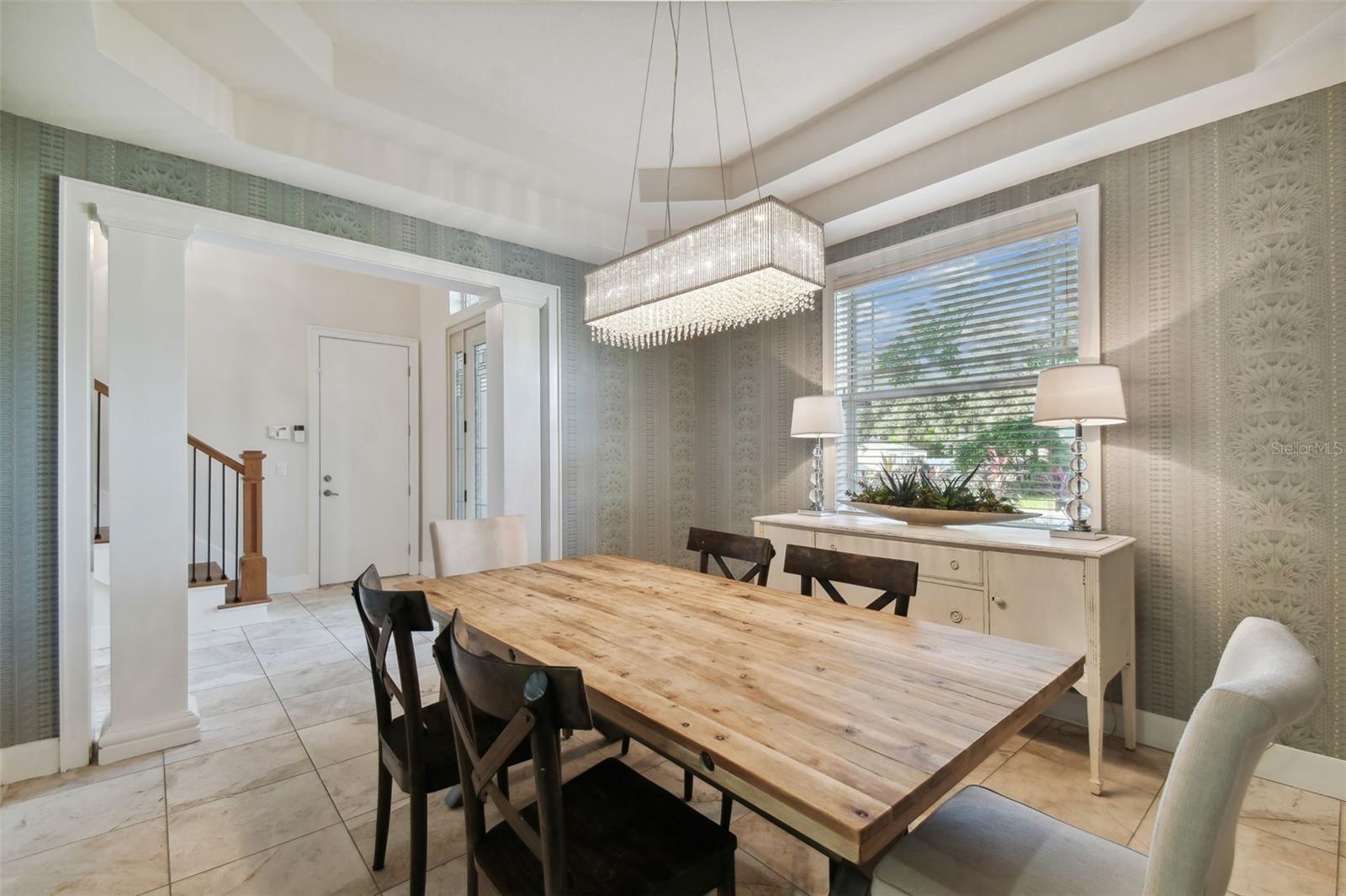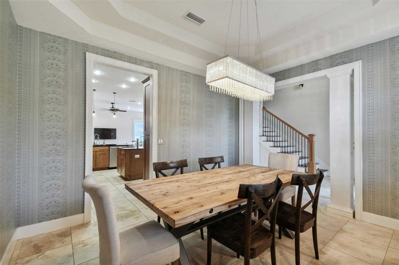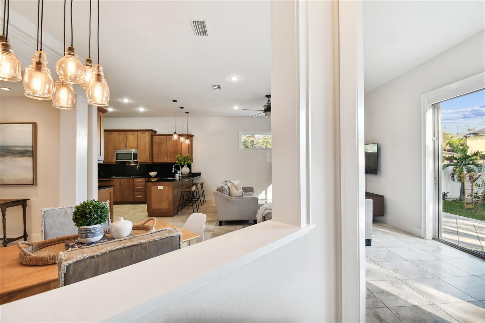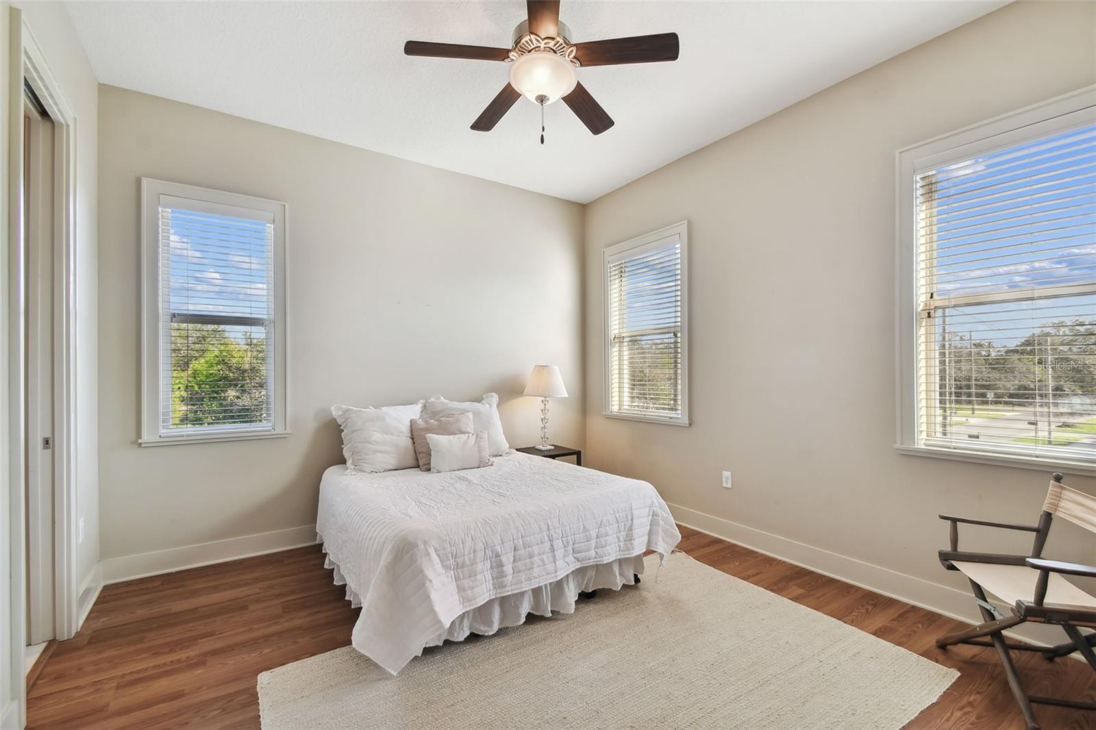 Situada em um terreno de esquina, esta bela casa personalizada apresenta construção toda em blocos, tetos de três metros e uma planta baixa incrível. O primeiro andar inclui um hall de entrada de dois andares, sala de jantar formal, sala de estar espaçosa, espaço para refeições casuais, lavabo e quarto no andar de baixo (também pode ser escritório ou sala de jogos). A cozinha possui eletrodomésticos JennAire de aço inoxidável, adega refrigerada, fornos duplos, fogão a gás, ilha, torneiras Grohe, bancadas em granito e despensa. No andar de cima, você encontrará quatro quartos adicionais, três banheiros, lavanderia e um loft. A suíte do proprietário tem dois closets e um impressionante banheiro privativo com banheira de hidromassagem e box amplo. Dois quartos compartilham um banheiro Jack-and-Jill. A área do loft inclui uma área de mesa embutida para home office ou estação de dever de casa. É hora de sair para apreciar o quintal totalmente cercado e com varanda. Relaxe com seu café da manhã ou coquetel à noite e aproveite o estilo de vida da Flórida! A casa está localizada na zona de inundação X (a casa nunca perdeu energia ou foi inundada durante as tempestades recentes). As melhorias recentes incluem telhado, calhas, ar condicionado, piso novo em todos os quartos (sem carpete em nenhum lugar), cercas externas, paisagismo e pintura interna .