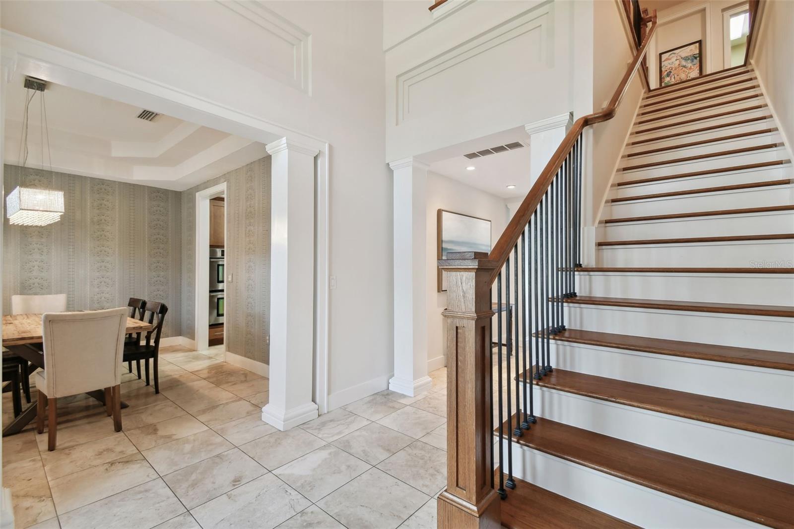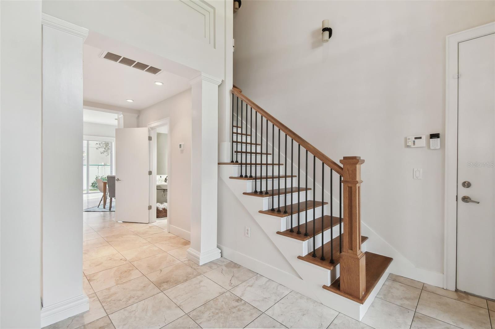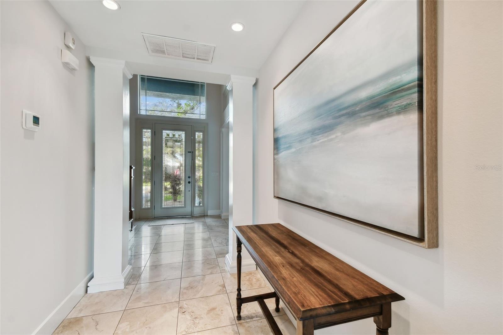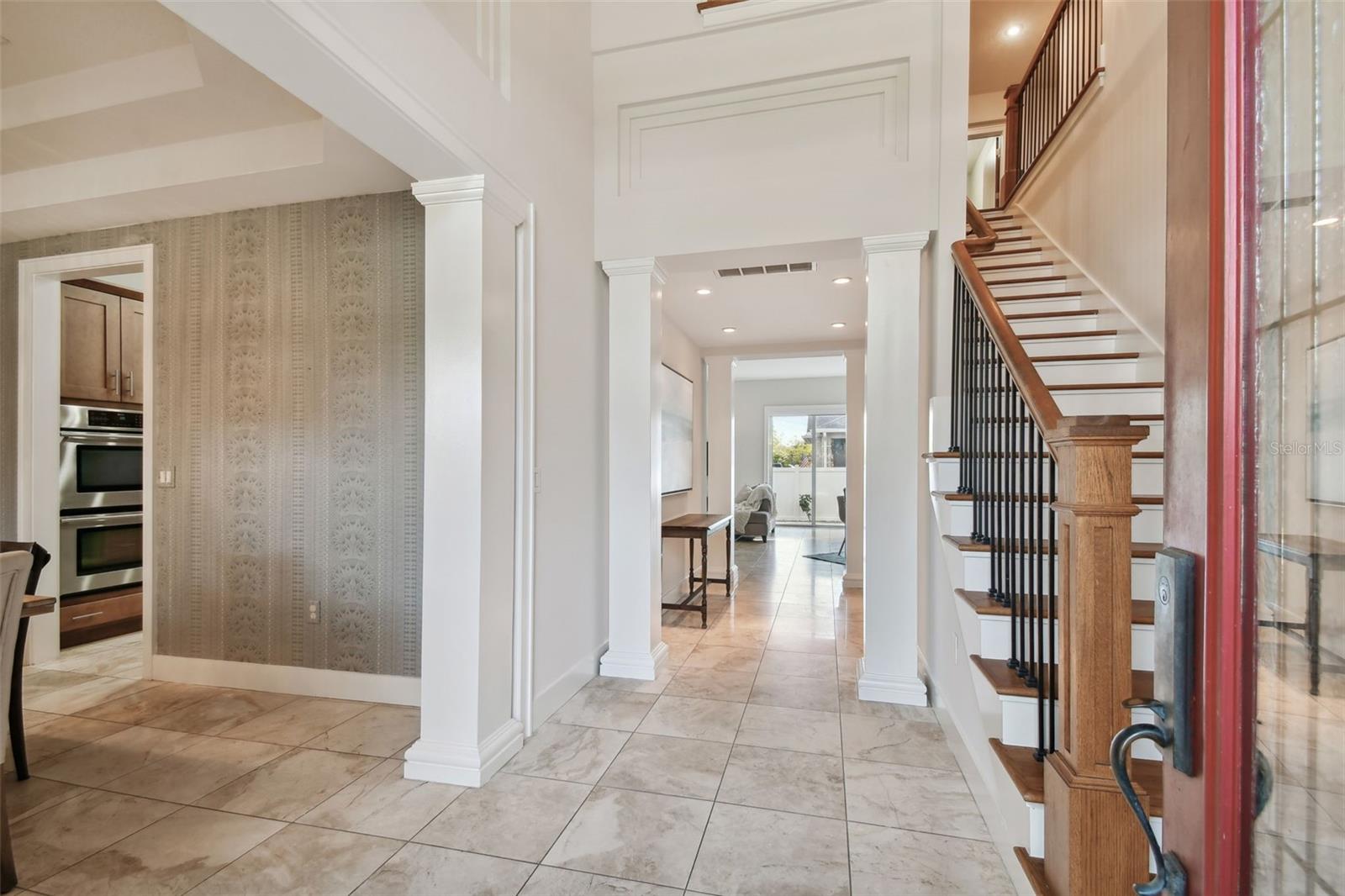 Situada em um terreno de esquina, esta bela casa personalizada apresenta construção toda em blocos, tetos de três metros e uma planta baixa incrível. O primeiro andar inclui um hall de entrada de dois andares, sala de jantar formal, sala de estar espaçosa, espaço para refeições casuais, lavabo e quarto no andar de baixo (também pode ser escritório ou sala de jogos). A cozinha possui eletrodomésticos JennAire de aço inoxidável, adega refrigerada, fornos duplos, fogão a gás, ilha, torneiras Grohe, bancadas em granito e despensa. No andar de cima, você encontrará quatro quartos adicionais, três banheiros, lavanderia e um loft. A suíte do proprietário tem dois closets e um impressionante banheiro privativo com banheira de hidromassagem e box amplo. Dois quartos compartilham um banheiro Jack-and-Jill. A área do loft inclui uma área de mesa embutida para home office ou estação de dever de casa. É hora de sair para apreciar o quintal totalmente cercado e com varanda. Relaxe com seu café da manhã ou coquetel à noite e aproveite o estilo de vida da Flórida! A casa está localizada na zona de inundação X (a casa nunca perdeu energia ou foi inundada durante as tempestades recentes). As melhorias recentes incluem telhado, calhas, ar condicionado, piso novo em todos os quartos (sem carpete em nenhum lugar), cercas externas, paisagismo e pintura interna .