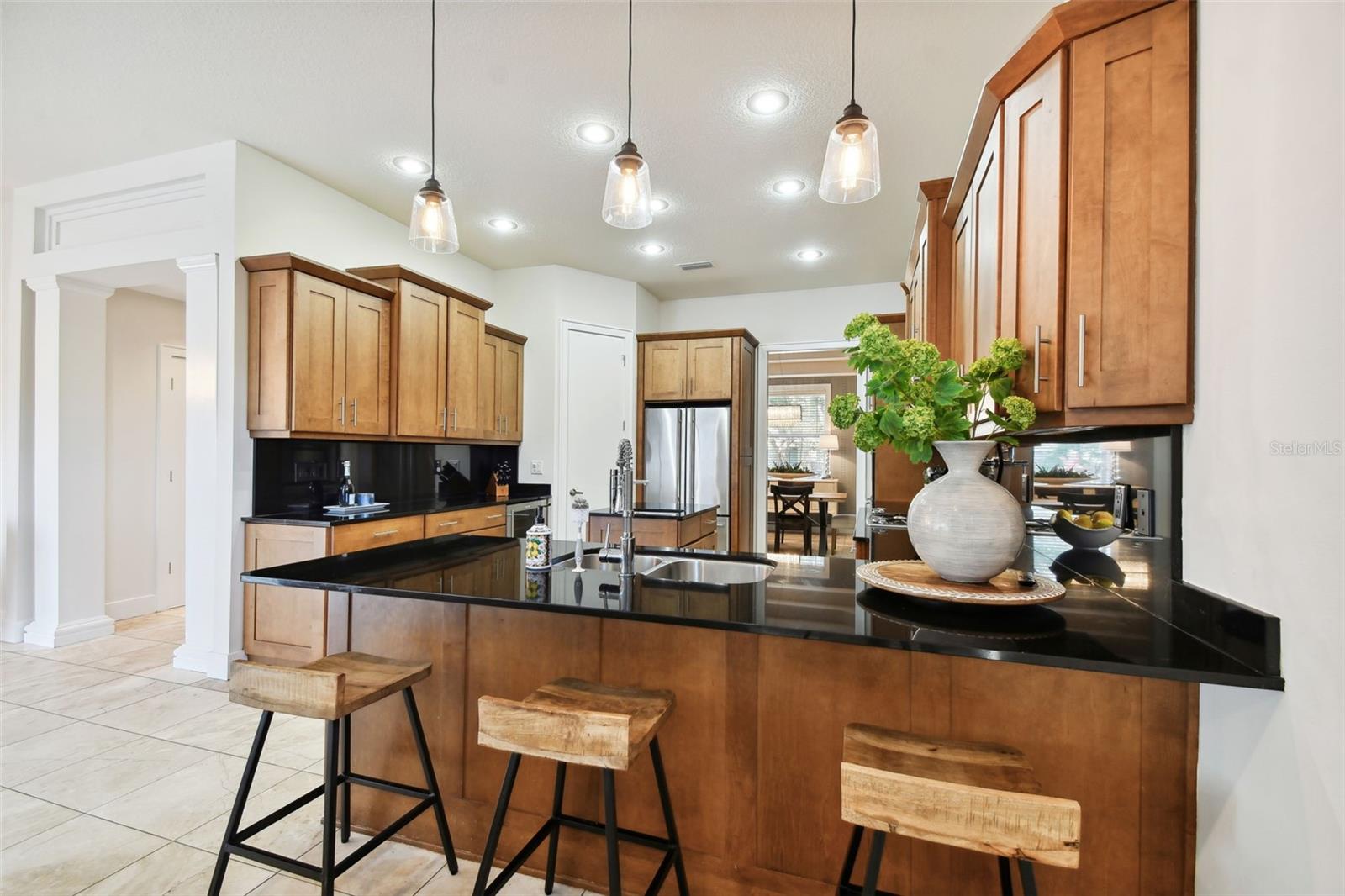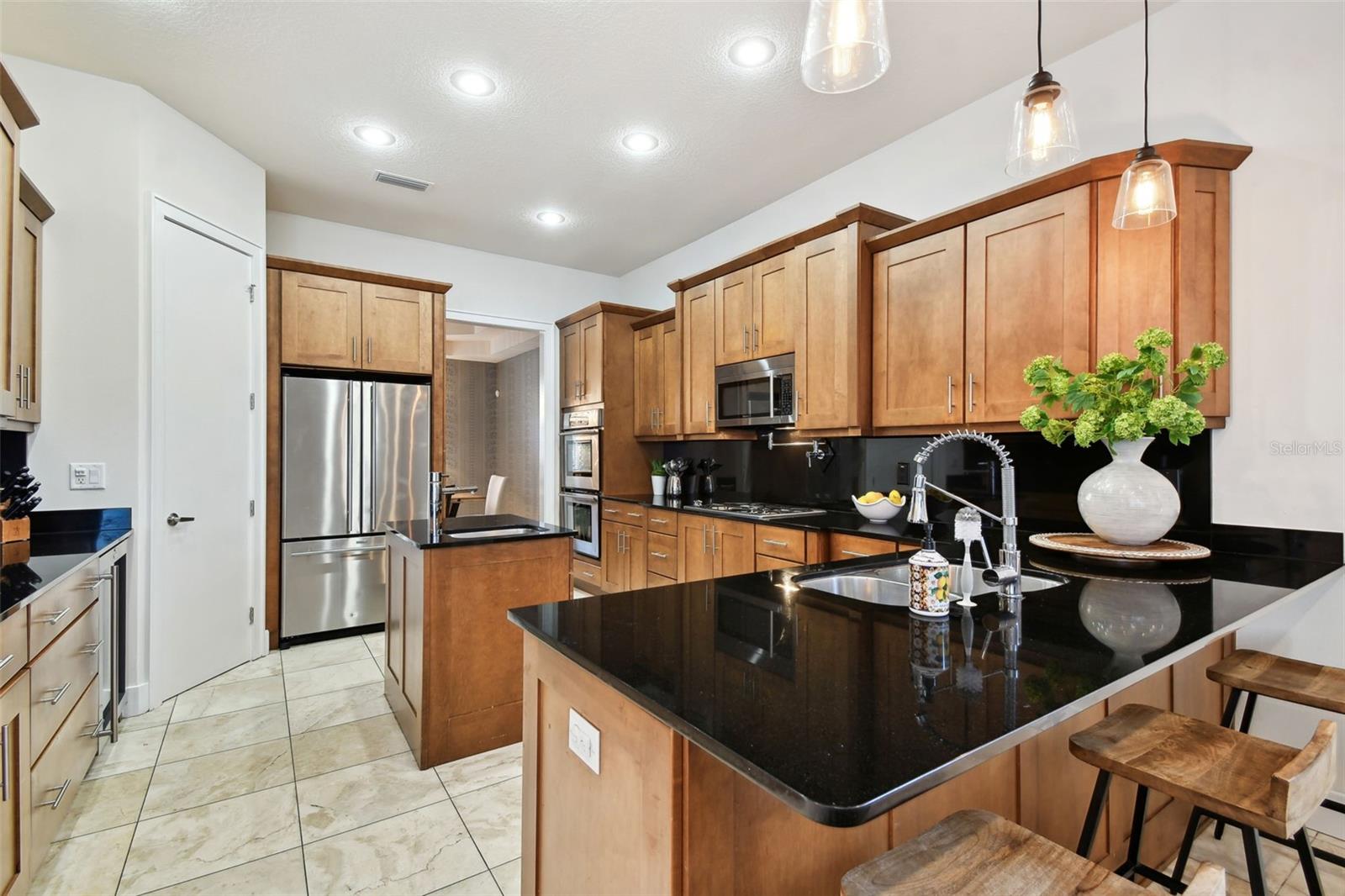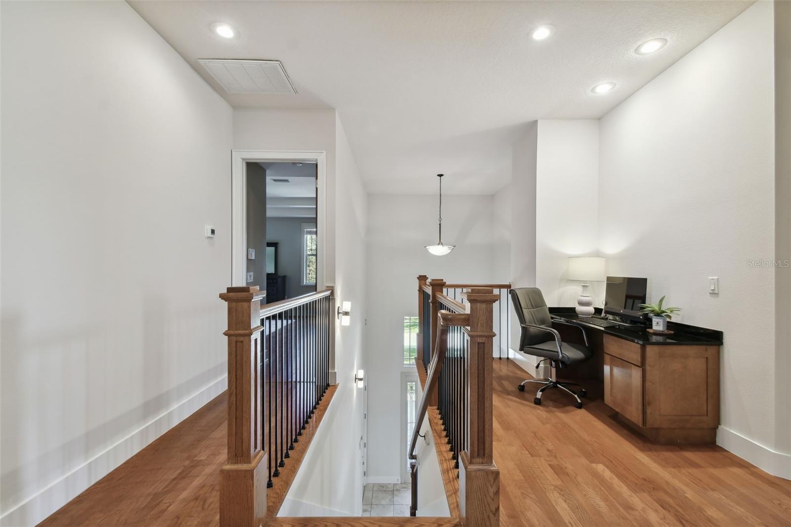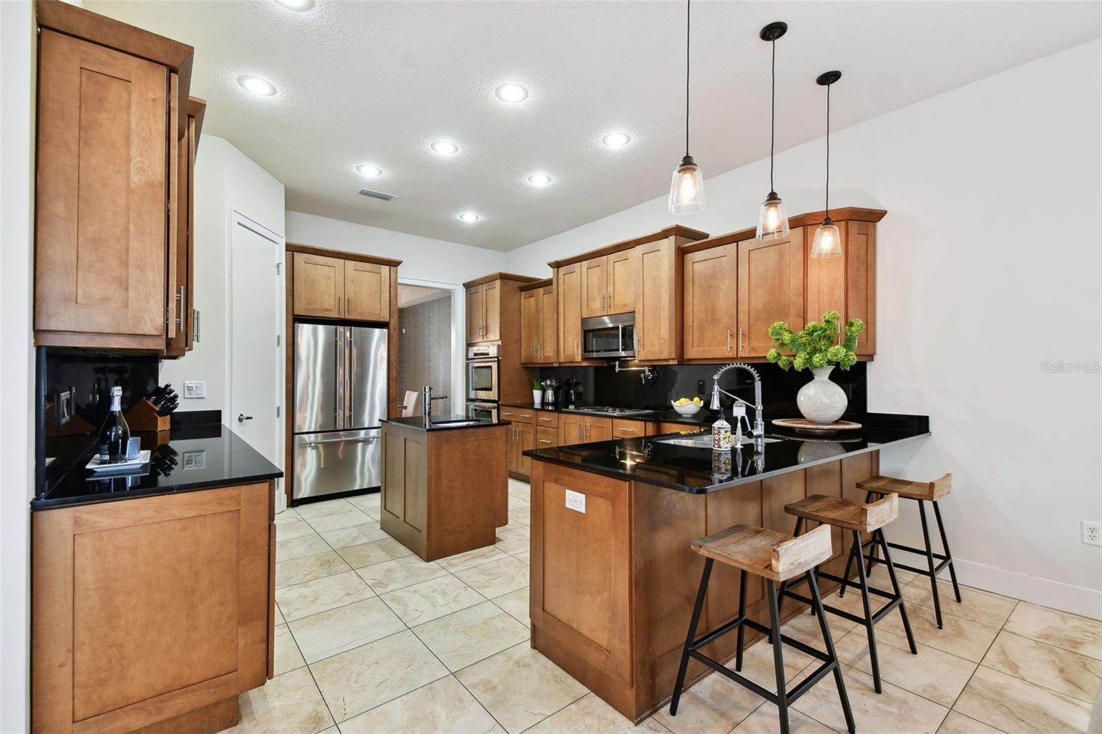 Situada em um terreno de esquina, esta bela casa personalizada apresenta construção toda em blocos, tetos de três metros e uma planta baixa incrível. O primeiro andar inclui um hall de entrada de dois andares, sala de jantar formal, sala de estar espaçosa, espaço para refeições casuais, lavabo e quarto no andar de baixo (também pode ser escritório ou sala de jogos). A cozinha possui eletrodomésticos JennAire de aço inoxidável, adega refrigerada, fornos duplos, fogão a gás, ilha, torneiras Grohe, bancadas em granito e despensa. No andar de cima, você encontrará quatro quartos adicionais, três banheiros, lavanderia e um loft. A suíte do proprietário tem dois closets e um impressionante banheiro privativo com banheira de hidromassagem e box amplo. Dois quartos compartilham um banheiro Jack-and-Jill. A área do loft inclui uma área de mesa embutida para home office ou estação de dever de casa. É hora de sair para apreciar o quintal totalmente cercado e com varanda. Relaxe com seu café da manhã ou coquetel à noite e aproveite o estilo de vida da Flórida! A casa está localizada na zona de inundação X (a casa nunca perdeu energia ou foi inundada durante as tempestades recentes). As melhorias recentes incluem telhado, calhas, ar condicionado, piso novo em todos os quartos (sem carpete em nenhum lugar), cercas externas, paisagismo e pintura interna .