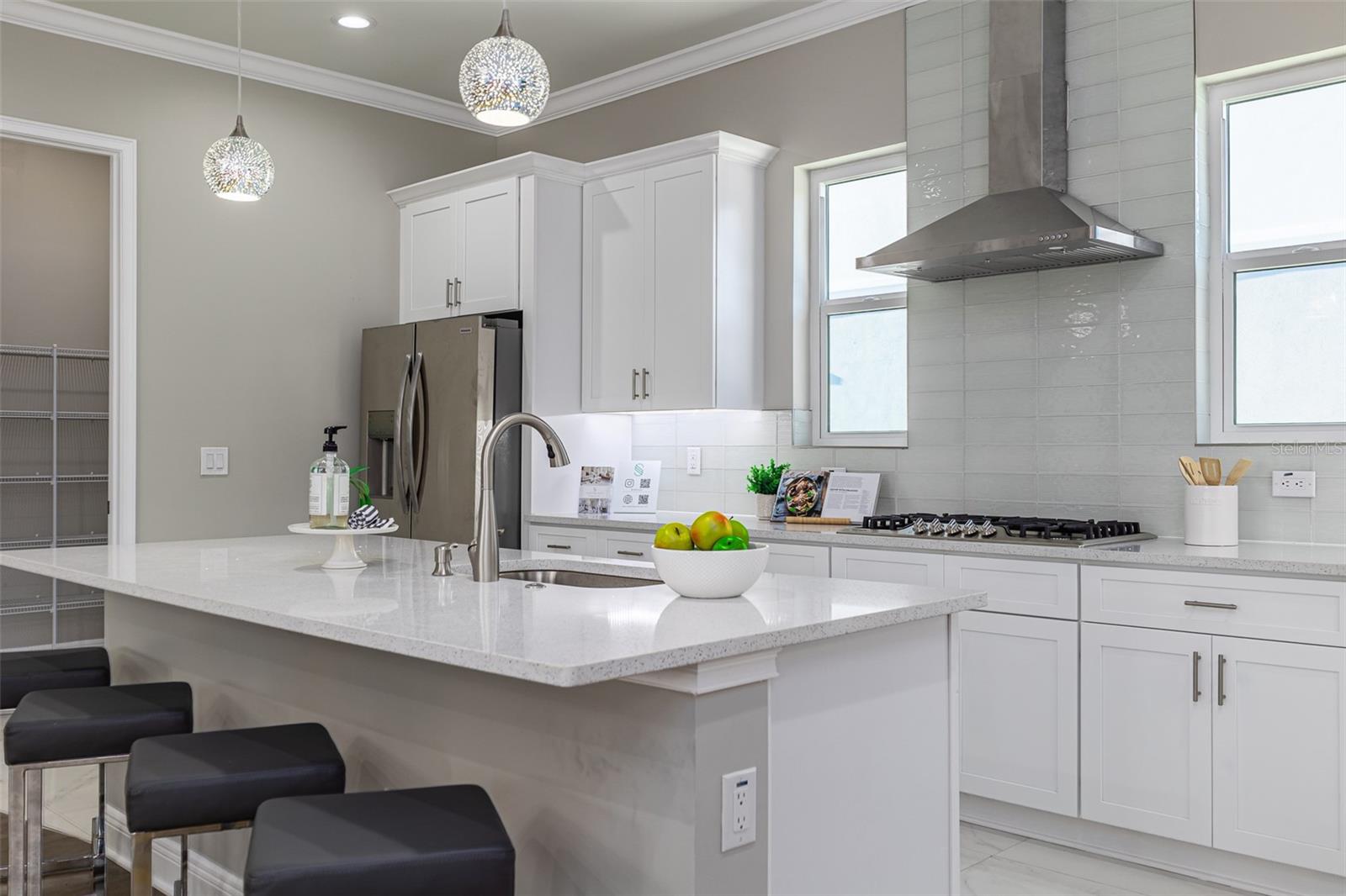NOVA RESIDÊNCIA DE LUXO 2024 com ELEVADOR e muitas melhorias em uma excelente localização. Esta casa de design contemporâneo apresenta muita luz natural e armazenar. O primeiro andar inclui uma garagem de grandes dimensões para dois carros, quarto no primeiro andar ou escritório. A suíte do primeiro andar é ótima para sogros ou pode ser usada como escritório completo com seu próprio banheiro e closet. Esta planta baixa aberta e espaçosa com 4 quartos (plano dividido) apresenta conceito aberto de jantar/estar/cozinha, tetos de bandeja, sancas, pisos de madeira de carvalho de engenharia de luxo, porcelanato azulejos grandes, carpete atualizado, ventiladores de teto modernos, encanamento e instalações elétricas atualizados, tomadas de TV e cabo conexões em todos os quartos, tetos altos e portas de 2,5 metros de altura. As atualizações da cozinha gourmet incluem fogão a gás, parede combinação de forno e micro-ondas, iluminação sob o armário, elegantes bancadas de quartzo, grande ilha de cozinha com área para refeições na cozinha espaço, garrafeira com adega refrigerada e despensa. O espaçoso quarto da suíte principal inclui closet, armário adicional, banheiro espaçoso com pia dupla, luxuoso chuveiro com efeito de chuva e banheira vitoriana com torneira de água da chuva. Piso interior projetado com piso de madeira de engenharia atualizado na área de estar principal, azulejos luxuosos em todas as áreas molhadas e carpete macio nos quartos do andar de cima. A casa está completa com muitos armários de armazenamento, esquentador a gás sem tanque e garagem para dois carros. Os recursos adicionais incluem banheiros grandes e azulejos completos nos chuveiros dos banheiros e áreas de banheira, encanamento de níquel escovado e luminárias elétricas, penteadeira grande e gaveta lateral em todos os banheiros, ventiladores de quarto modernos com função dupla verão/inverno, e valor K de luz ajustável e muito mais. Desfrute de uma vista maravilhosa da natureza a partir da sua varanda sofisticada ou desfrute relaxando ao ar livre em seu pátio coberto e grande vinil privado cercado no quintal com vista para a natureza. A comunidade Townhome apresenta um total de oito unidades. Os acabamentos e layout são semelhantes em cada unidade. As fotos encenadas são da unidade modelo. Estas taxas BAIXAS de HOA e Não é necessário seguro contra inundações. O condomínio está convenientemente localizado perto de shoppings, restaurantes sofisticados, instalações esportivas, entretenimento, base MacDill AF, aeroportos e muito mais. Bairro em crescimento com muitas construções novas.