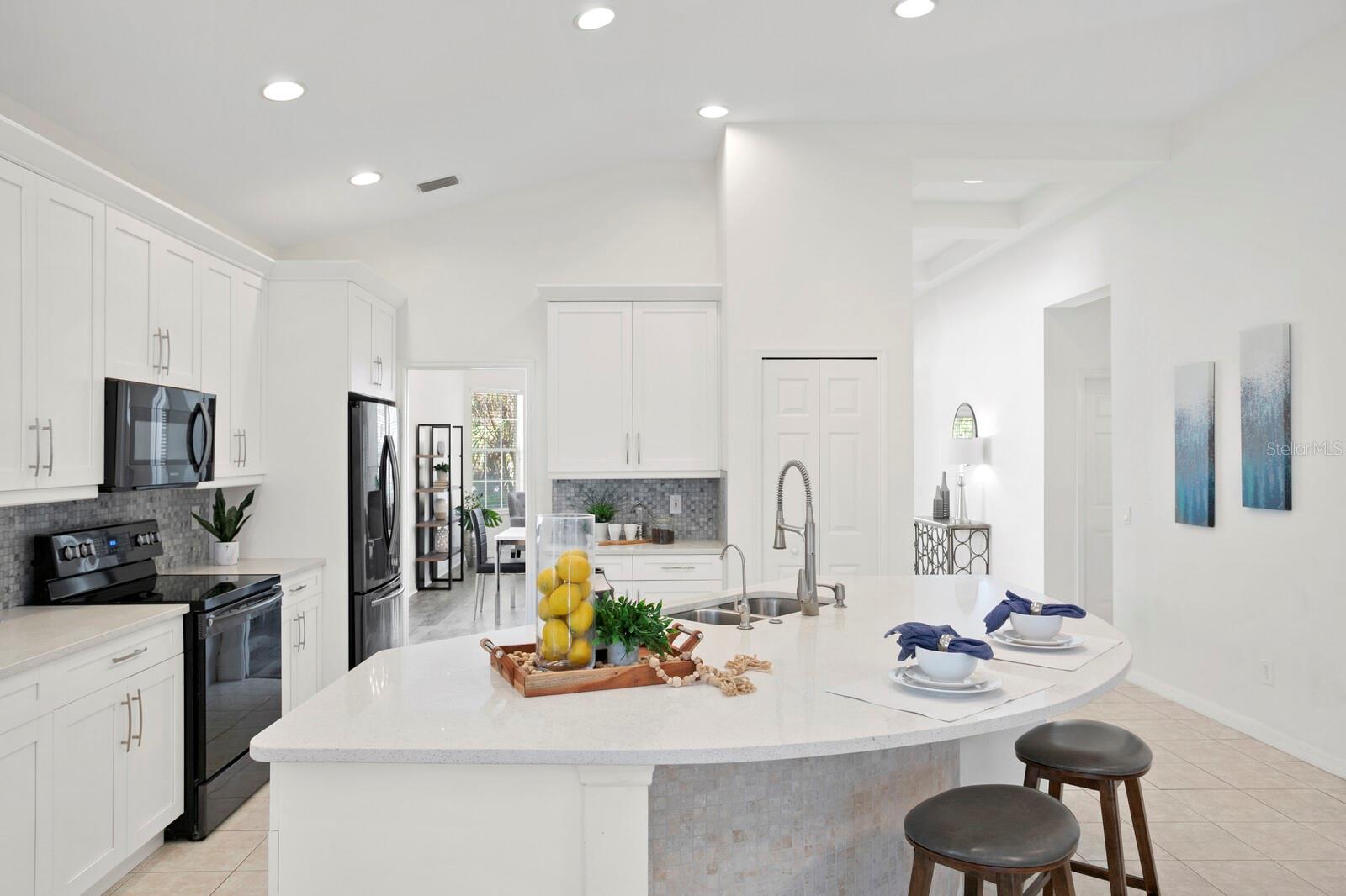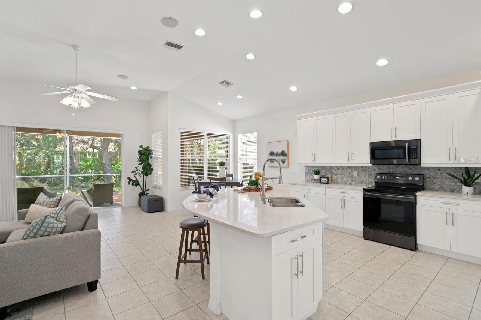 Não em uma zona de inundação!! Linda casa de 3 quartos, 2 banheiros e garagem para 2 carros no cobiçado condomínio fechado de The Greens em Westchase. Esta espaçosa planta aberta oferece uma combinação formal de sala de estar/jantar adornada com NOVOS pisos de pranchas de vinil de luxo e encantadora janela saliente. Cozinha bem decorada com teto abobadado foi remodelada em 2020 e apresenta armários brancos estilo Shaker, bancadas de quartzo, backsplash de mármore, elegantes eletrodomésticos de aço inoxidável preto (adicionados em 2019), enorme ilha de contra-altura com fundo de azulejos decorativos e pia dupla com osmose reversa . A cozinha é aberta para a iluminada e iluminada Sala Familiar que possui um nicho para um centro de entretenimento e portas de vidro deslizantes que levam à varanda coberta. Desfrute de grelhados e refeições ao ar livre durante todo o ano nesta varanda privativa de grandes dimensões com tela. O Master Retreat está localizado na parte de trás da casa. Possui controles deslizantes próprios que levam à varanda coberta, piso laminado de madeira, 2 armários (1 é um enorme walk-in) e um banheiro Master reformado em 2020 para incluir balcões de quartzo, pias duplas e azulejos novos no chão, banheira e box amplo. 2 quartos adicionais, uma lavandaria e outro banheiro completo, também reformado em 2020, completam esta casa. Outras atualizações importantes incluem: NOVO TELHADO em novembro de 2022 e NOVO AC em 2018. A Comunidade Westchase tem 2 centros de natação e tênis, um campo de golfe de 18 buracos, clubhouse, playgrounds, quadras de basquete e muito mais. Westchase está convenientemente localizado perto de EXCELENTES ESCOLAS, lojas, restaurantes, principais rodovias e as melhores praias do país