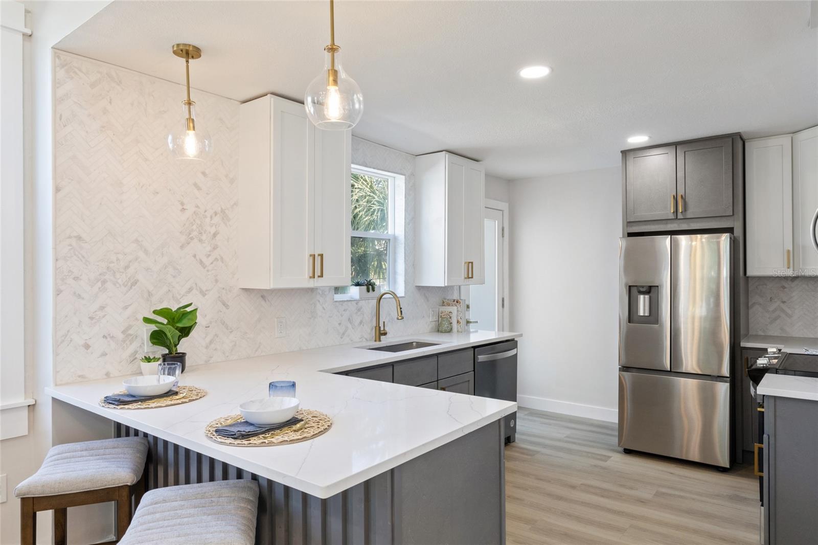 Uma ou mais fotos foram praticamente encenadas. Nesta semana, os vendedores estão oferecendo US $ 10, ooo para os custos de fechamento !! Traga todas as ofertas !! Reduções de preços de US $ 100 mil para US $ 595.000 !! Este é o bangalô de Tampa Heights que você estava esperando! A poucos minutos para o Riverwalk! Zona de inundação !! Se você ama o charme e o caráter de um bangalô do artesão, mas se preocupe com os problemas do Velho Mundo, não procure mais, não procure mais! Renovado e atualizado com bom gosto esta chave de volta 4/2 casa única, está situada em um lote de canto cercado. Uma varanda da frente clássica de bangalôs com pilares originais recebe você neste interior de casas, com quase 11 'tetos altos na maravilhosa conceito aberto de vida e salas de jantar. As you walk through the new front door you notice the BRAND NEW luxury vinyl plank floors that are hugged with brand new 5" baseboards throughout the home. The caliber of QUALITY CRAFTSMANSHIP that has gone into this renovation will take your BREATH AWAY! From top to bottom every space has been freshly painted, subfloor replaced, all new GFCI outlets, new light fixtures, fans with lights, bathroom Vanities, mirrors, new back deck, new doors, windows, the A lista continua e continua! À direita da entrada, há uma marquise/ quarto/ escritório de tamanho generoso, com tanta luz natural que leva a um novo deck e quintal. A grama de Santo Agostinho e um novo sistema de aspersão de pássaros de chuva foram instalados no espaçoso quintal. Do outro lado da casa está a nova cozinha com bancadas de quartzo de Calcutá, geladeira de aço inoxidável, máquina de lavar louça, microondas, fogão e descarte de lixo com lindos backsplash de espinha de peixe e hardware de ouro para terminar esta cozinha graciosamente. Apenas à direita da cozinha, há um quarto de hóspedes com armário. No corredor, à direita, está a lavanderia com espaço para uma lavadora e secadora lado a lado. Além disso, o banheiro de hóspedes com todos os novos ladrilhos, vaidade, banheira com chuveiro de chuva, chuveiro e banheiro de mão, oh meu !! O primário está situado na parte de trás da casa, com lindas luzes de pingentes, ventilador de teto e janela. O que leva à sua própria caminhada grande no armário e no seu banheiro na suíte, com todas as novas pias duplas, uma nova e linda vaidade com amplo armazenamento, um novo chuveiro grande com um chuveiro de chuva, nicho cortes para seus produtos de higiene pessoal, todos com bom gosto com hardware dourado. Também para sua privacidade, um banheiro separado. Do outro lado está outro quarto com uma boa caminhada no armário, o que é uma raridade nas alturas. Nos dias de cães do verão, você ficará satisfeito em saber que o manipulador e o condensador do AC foram substituídos em 2016, o teto foi substituído em 2021, o aquecedor de água substituído em 2019. Painel elétrico atualizado em 2024. Possuir uma história no distrito histórico mais procurado de Tampa. Este bangalô do artesão de 1918, localizado em Historic Tampa Heights, foi totalmente modernizado e fica situado entre as ruas alinhadas de carvalhos deste bairro muito acessível. Situado a uma caminhada de 1,7 quilômetros até obras de armadura, Riverwalk de Tampa e na rua da Historic Seminole Heights e de todos os seus adoráveis restaurantes e cervejarias, você está literalmente no coração do centro de Tampa. E apenas 5 a 10 minutos de carro do centro de Tampa, Ybor City e Amalie Arena. Este é um lar que não vai durar muito com todas as atualizações!