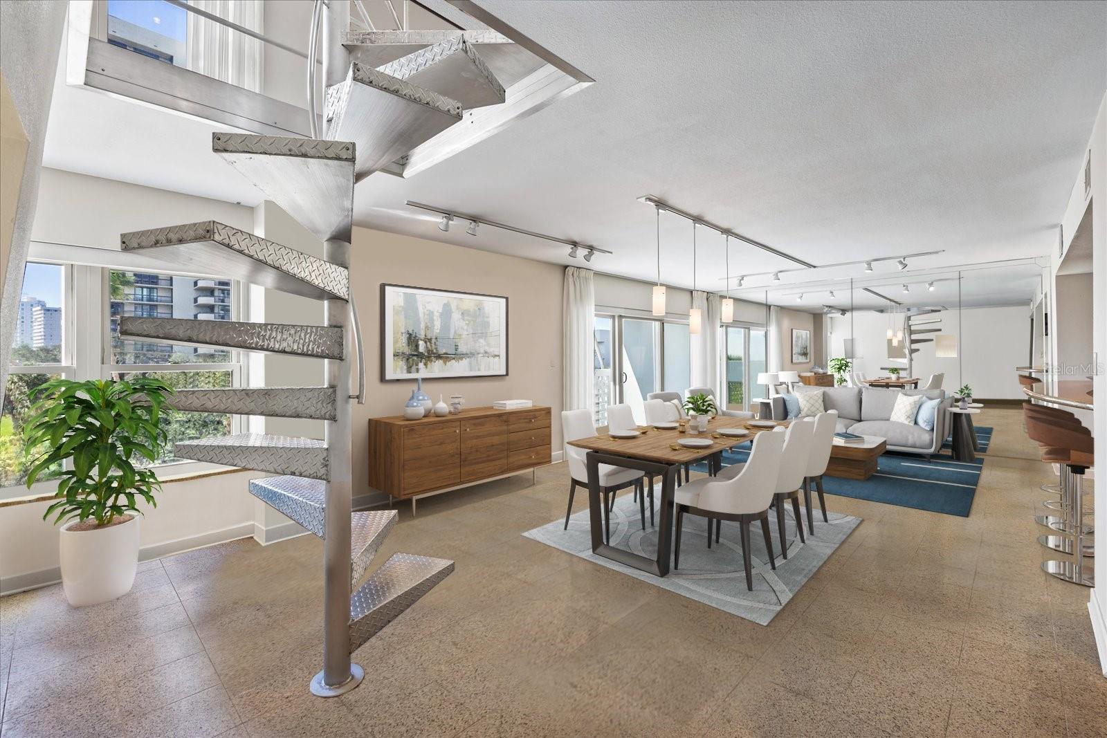 Bem-vindo a uma residência excepcional em Bayshore Boulevard, onde o brilho arquitetônico encontra a elegância moderna de meados do século. Esta casa única, projetada por um arquiteto visionário, combina perfeitamente duas unidades conectadas por uma impressionante escada em espiral, criando um ambiente espaçoso e sofisticado. O condomínio foi recentemente atualizado com novas janelas e portas de impacto, unidades HVAC, a maioria dos eletrodomésticos e lavadora e secadora na unidade. Abrangendo 2.208 pés quadrados, esta residência oferece dois espaços de tamanho generoso, 2 quartos e dois banheiros e meio, proporcionando amplo espaço para relaxamento e privacidade. O interior é adornado com nichos embutidos distintos e cuidadosamente projetados para exibir sua coleção de arte, realçando o toque artístico da casa. O nível principal abriga uma cozinha ampla aberta para as áreas de estar e jantar, um amplo quarto com vistas deslumbrantes da baía e um banheiro completo. O condomínio é pré-cabeado com alto-falantes estéreo em cada cômodo para um entretenimento perfeito. O segundo nível possui um bar em forma de bumerangue de metal e granito, perfeito para entreter os hóspedes enquanto apreciam as amplas vistas da baía. Além do retiro dos proprietários com banheiro completo, há uma ampla sala de entretenimento e banho de pó. Saia para uma das quatro varandas privadas e desfrute das vistas deslumbrantes da beira-mar pelas quais Bayshore Boulevard é conhecido. Assentos na primeira fila para o desfile Gasparilla de Tampa!! O edifício oferece uma variedade de comodidades, incluindo um amplo deck de piscina, salão de festas com cozinha completa, recepção pessoal/concierge dentro do lobby e amplo estacionamento para hóspedes. Esta unidade dispõe de dois lugares de estacionamento cobertos e duas arrecadações. Experimente a combinação perfeita de estilo, espaço e vistas deslumbrantes nesta obra-prima com design arquitetônico. Agende hoje mesmo seu tour privado e descubra o estilo de vida incomparável que espera por você nesta joia do Bayshore Boulevard.