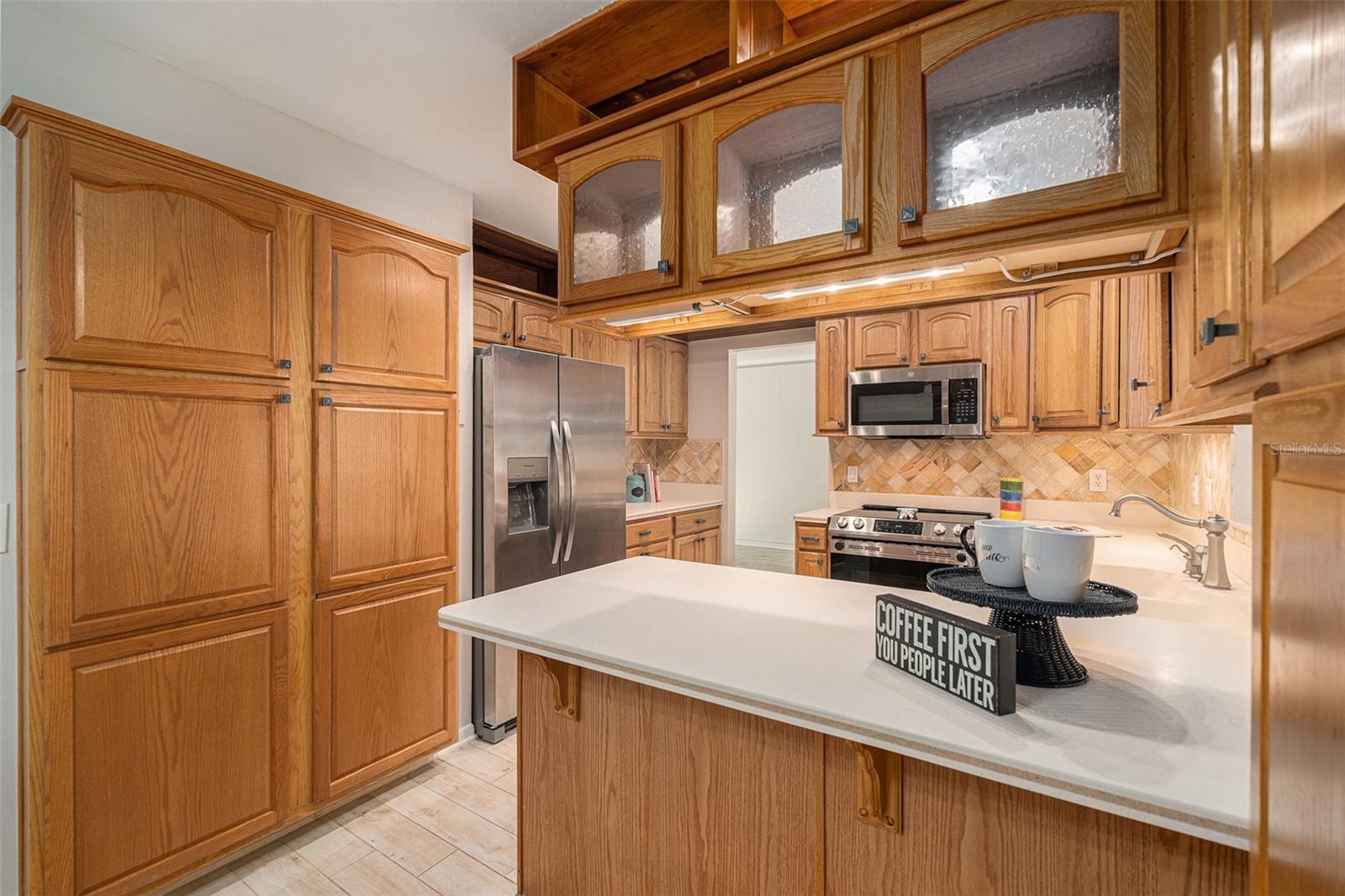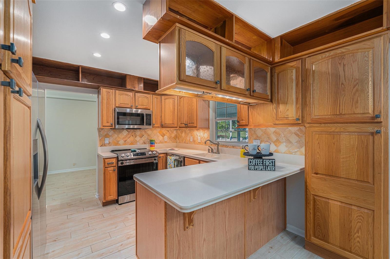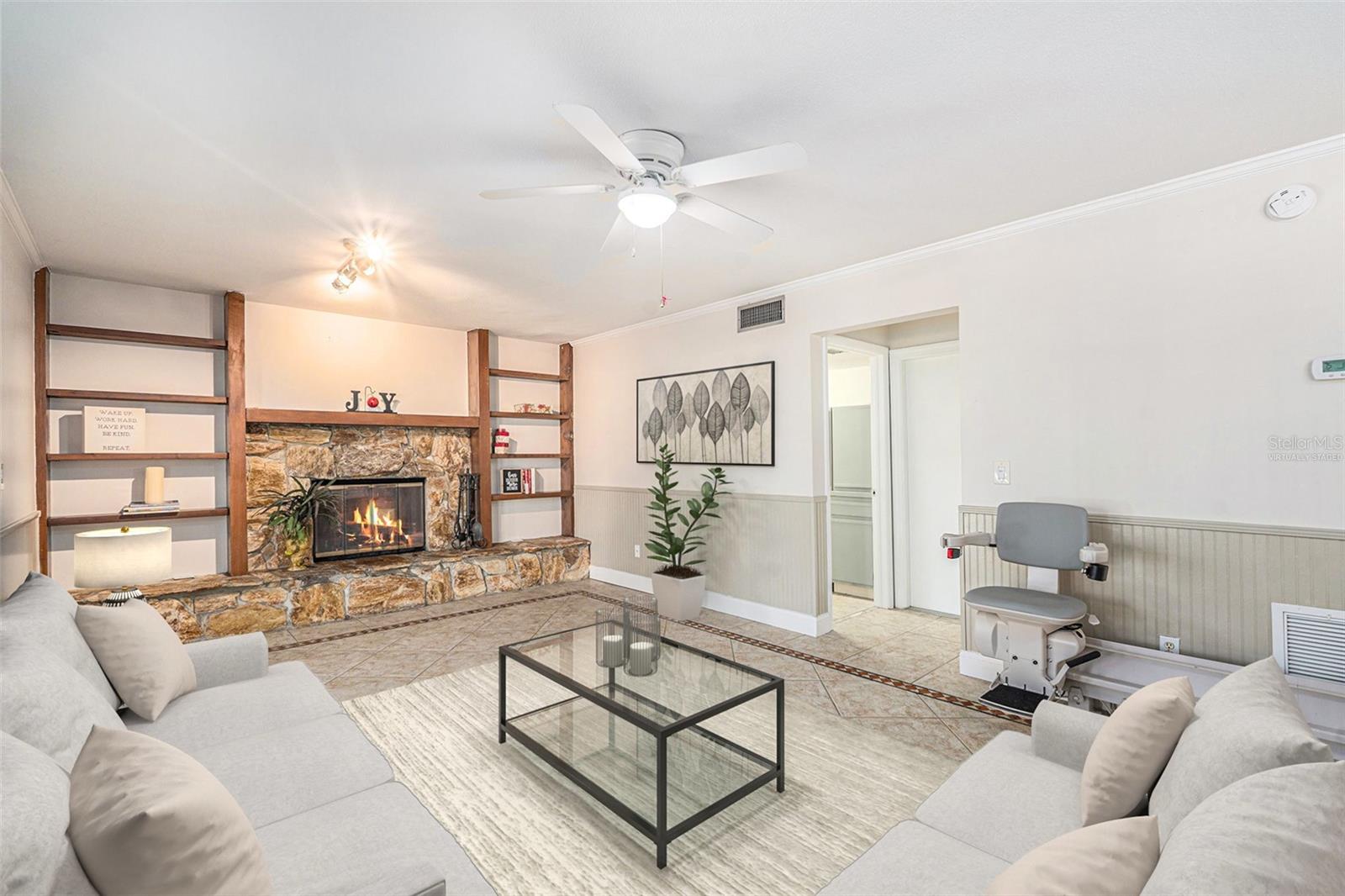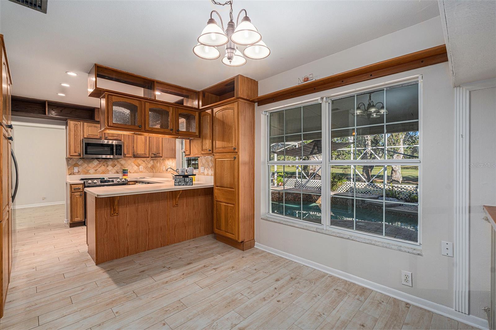 Uma ou mais fotos foram praticamente encenadas. Novo preço! Descubra a mistura perfeita de conforto, estilo e conveniência nesta impressionante casa de 3 quartos e 2,5 banheiros com uma garagem de 2 carros de grandes dimensões, aninhada em uma rua tranquila em Northdale. Oferecendo vistas deslumbrantes dos 10º e 18º Fairways no Northdale Golf & Tennis Club, esta casa é um retiro sereno com atualizações excepcionais e design atencioso. O piso principal possui elegante piso de ladrilhos de madeira de porcelana que conecta perfeitamente os espaços de estar, cozinha e jantar. A espaçosa sala da família, com sua lareira de pedra queima de madeira, prateleiras embutidas e armários personalizados, é uma peça central aconchegante para reuniões. A cozinha bem equipada inclui armários de madeira personalizados, bancadas elegantes de Corian e um backsplash de travertino que exala charme moderno. Uma metade de banho conveniente e uma sala de serviços públicos com amplo armazenamento, conexões de lavadora/secadora e uma pia de utilidade completa o primeiro andar. No andar de cima, a suíte primária é um verdadeiro santuário, oferecendo piso de madeira projetada, uma unidade privada de A/C e um closet de cedro com uma cômoda de ilha com tampa de granito. O banheiro privativo inspirado no spa possui um chuveiro de travertino com vários jatos, um banco e armários personalizados com tampa de granito. Desfrute de manhãs tranquilas ou relaxe ao pôr do sol na varanda coberta privada com vista para o campo de golfe, com acesso de escadas ao quintal. Dois quartos adicionais e um banheiro completo oferecem acomodações confortáveis para a família ou os hóspedes. O espaço ao ar livre foi projetado para relaxamento e entretenimento, com uma piscina exibida com um deck de pavimentação, um baralho de madeira e um lanchone coberto com ventiladores de teto. O pátio lateral totalmente cercado, completo com portas de cachorro, é perfeito para animais de estimação. Atualizações adicionais incluem um sistema de irrigação e um telhado de 2014 e substituições de A/C. Para maior conveniência, a casa inclui uma longa rampa na porta da frente para acessibilidade. Um elevador de cadeira Bruno na escada garante acesso fácil entre os pisos, tornando essa casa completamente acessível. O vendedor pode remover a rampa e o elevador da cadeira, se desejar. Localizado no coração de Northdale, esta casa fica perto de fazer compras, restaurantes e recreação. Mudar -se e comece a desfrutar do estilo de vida que você merece!