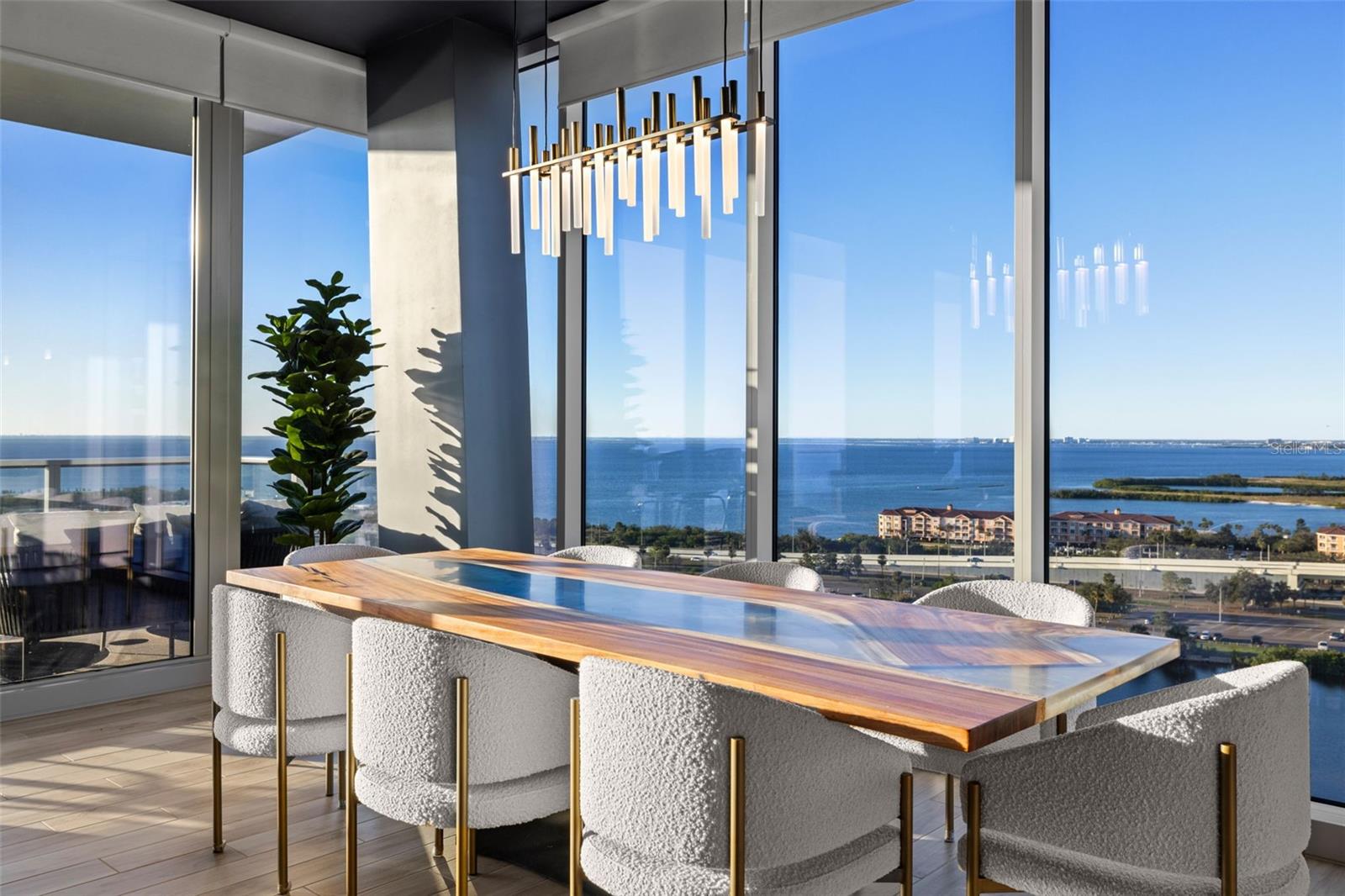 Bem-vindo ao 5120 Marina Way #16002, uma cobertura extraordinária na exclusiva comunidade de Marina Point, que oferece uma vida à beira-mar incomparável com vistas deslumbrantes e desobstruídas da Baía de Tampa. Ao entrar pelo elevador privativo, você notará imediatamente a abundância de luz natural entrando pelas janelas do chão ao teto, protegidas contra furacões, criando um ambiente arejado e sofisticado em toda a casa. Esta residência de 3 quartos e 3 banheiros apresenta acabamentos personalizados em todos os cômodos, projetados para estilo e conforto, enquanto a cozinha gourmet se destaca com eletrodomésticos Wolf e Sub-Zero, bancadas de quartzo com borda em cascata e armários em estilo europeu. A espaçosa área de estar de conceito aberto flui facilmente para uma varanda ampla e ampla, proporcionando o espaço perfeito para relaxar e desfrutar do pôr do sol deslumbrante sobre a água. A casa também inclui uma sala bônus atualmente usada como sala de cinema, tornando-a ideal para entreter ou relaxar com estilo. Além disso, o condomínio oferece suítes noturnas privativas para os hóspedes visitantes, garantindo que sua estadia seja tão luxuosa e privada quanto a sua. Para os entusiastas da náutica, a oportunidade de adquirir um ancoradouro (vendido separadamente) é um destaque, onde o atual proprietário mantém seu iate de 55 pés ancorado, proporcionando acesso direto à Baía de Tampa e ao Golfo. As comodidades em estilo resort do Marina Point incluem uma academia de ginástica de última geração, um simulador de golfe virtual e uma marina particular com potencial para comprar ou alugar barcos. Duas vagas de estacionamento dedicadas, um armário de armazenamento e a proximidade do Aeroporto Internacional de Tampa, do Westshore District e das principais lojas e restaurantes do International Plaza fazem desta a combinação perfeita de conveniência e luxo. Com vistas deslumbrantes, comodidades de classe mundial e uma localização privilegiada, esta cobertura oferece o melhor estilo de vida à beira-mar. Agende sua exibição privada hoje mesmo!