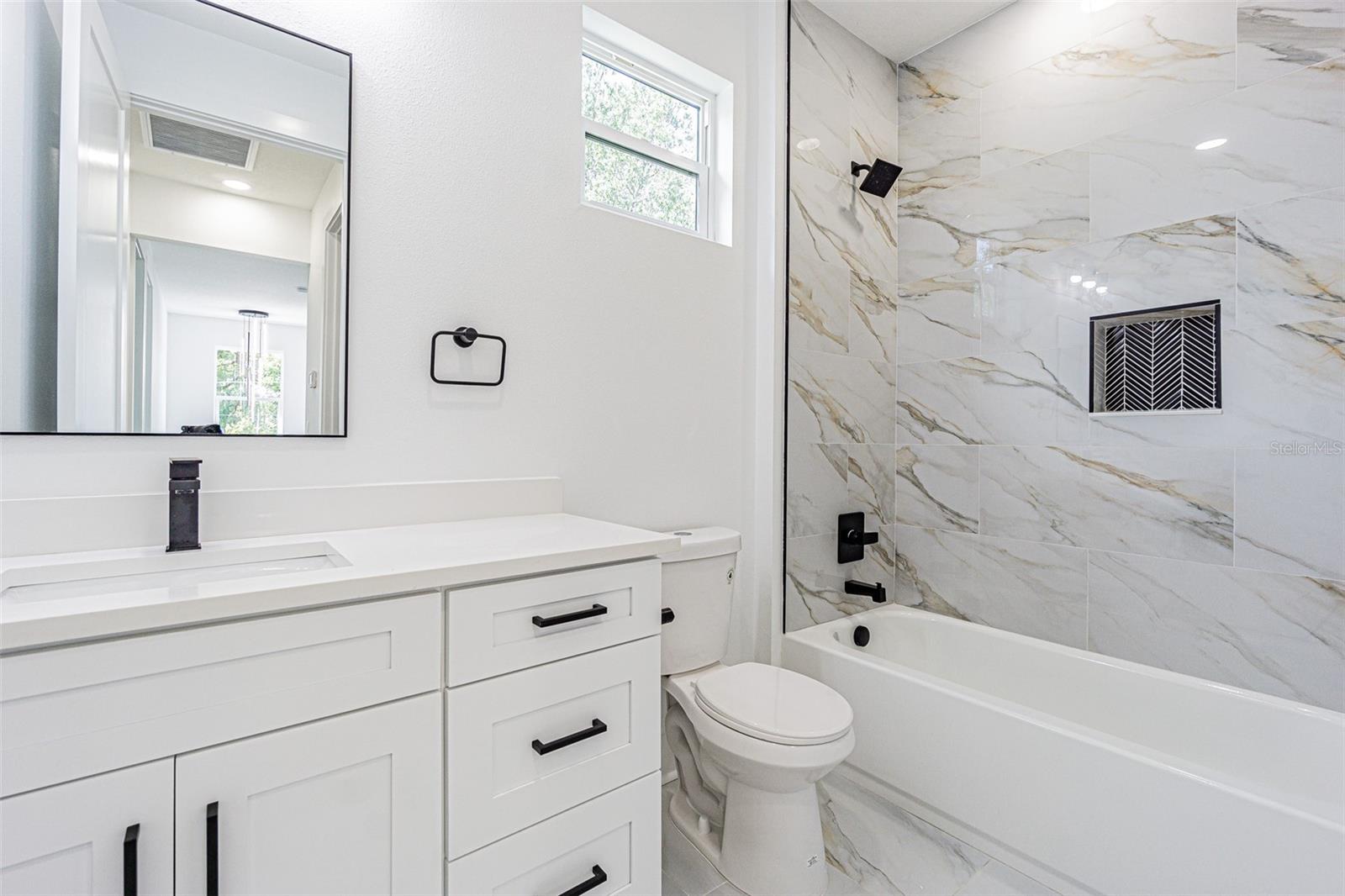 Uma ou mais fotos foram praticamente encenadas. Redução de preços !!!! Cansado de longas unidades e ficar preso no trânsito para aproveitar o melhor do que Tampa tem que desfrutar? Depois, seja bem -vindo aos bairros de Seminole Heights/ Park de Logans! Este total recém -construído de 2.150 pés quadrados, 2 andares, 3/3 de banho com utensílios de cozinha modernos, tem tudo o que você deseja ao escolher um lugar para "viver". A casa está idealmente localizada em uma rua tranquila, perto do corredor revitalizado da Nebraska Ave, com lojas pitorescas e uma cena de restaurante independente em rápido crescimento. Centralmente, localizado com acesso direto ao centro da cidade, Ybor City, The Channel Side District, Armature Works, Riverwalk, Raymond James Stadium, Yankee Stadium, International Mall e Aeroporto Internacional de Tampa. Tudo em uma casa que você estava procurando! O exterior tem uma bela combinação de estuque e tapume hardie. Ao entrar em casa, você entra na sala de estar de pisos de vinil estampados em madeira, iluminados com luz solar natural através de 3 grandes janelas classificadas por furacões. A acentuação da sala de estar é uma lareira elétrica e um ventilador de teto. Fora da sala é uma área de jantar adjacente à cozinha moderna, com uma bela combinação de armários de madeira natural branca e preta, mármore como bancadas de quartzo, fazendeiros de aço inoxidável afundam com um descarte de lixo anexado, fogão elétrico, microondas, geladeira e amplo espaço de armazenamento de alimentos. Por conveniência, há meio banho no térreo também. Fora da cozinha está a porta que leva à garagem para um único carro e a uma garagem que oferece estacionamento adicional. No topo da escada, há um espaçoso armário de lavanderia com conexões para a lavadora e a secadora. O corredor do andar de cima leva a todos os 3 quartos, todos com portas de entrada de 8 pés, ventiladores de teto e janela classificada por furacões de panela. O quarto principal possui um banheiro privativo, banheiro privativo com azulejos de cerâmica, chuveiro de caminhada e espelho iluminado acima das vaidades duplas. No corredor do andar de cima, é um banheiro completo secundário que possui uma combinação de banheira/chuveiro, banheiro e vaidade única. Ambos os quartos 2 e 3 têm armários personalizados e grandes janelas classificadas por furacões, permitindo muita luz natural. A casa fica no ápice do crescente sistema interestadual de Tampa e infraestrutura de transporte, com fácil acesso a todos os presentes de Tampa !!